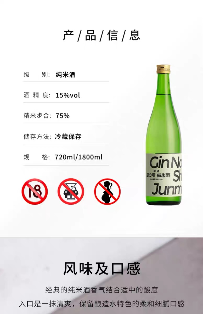 【礼想心动】银雫 清酒纯米酒 720ml 日本原装进口