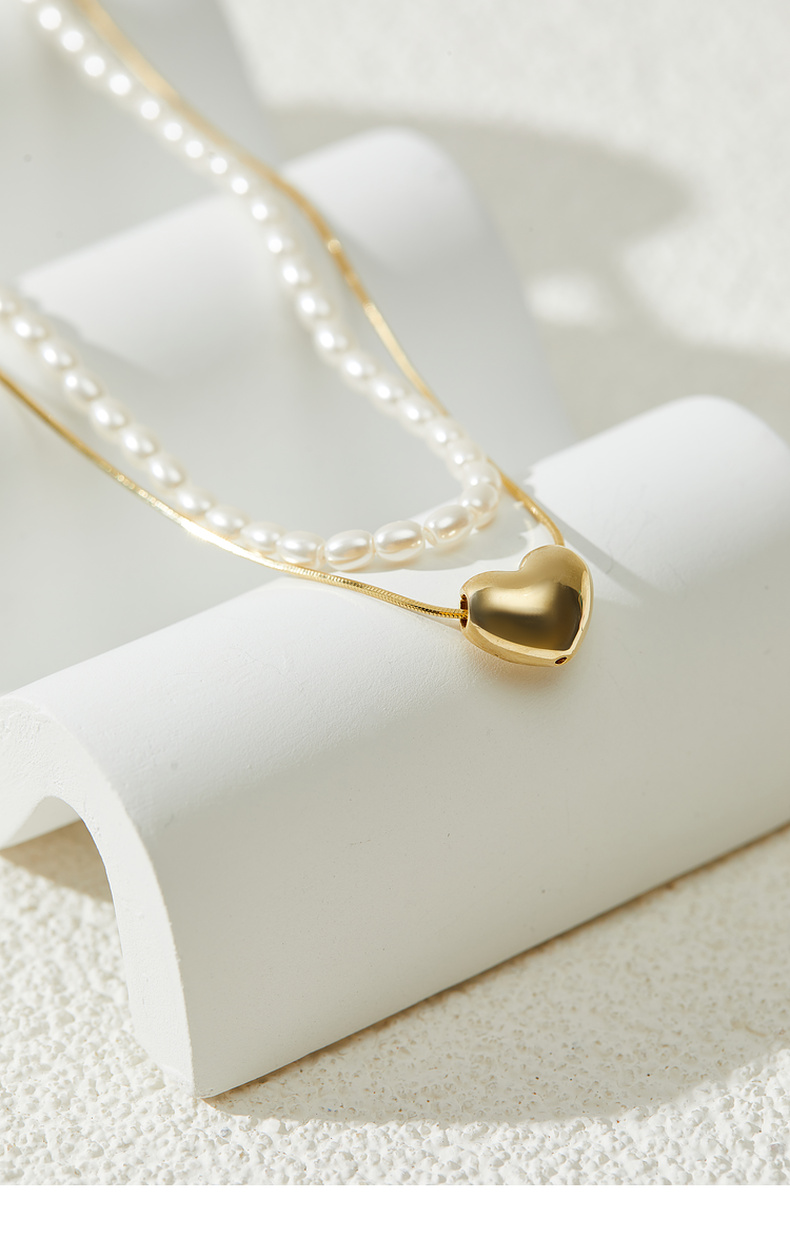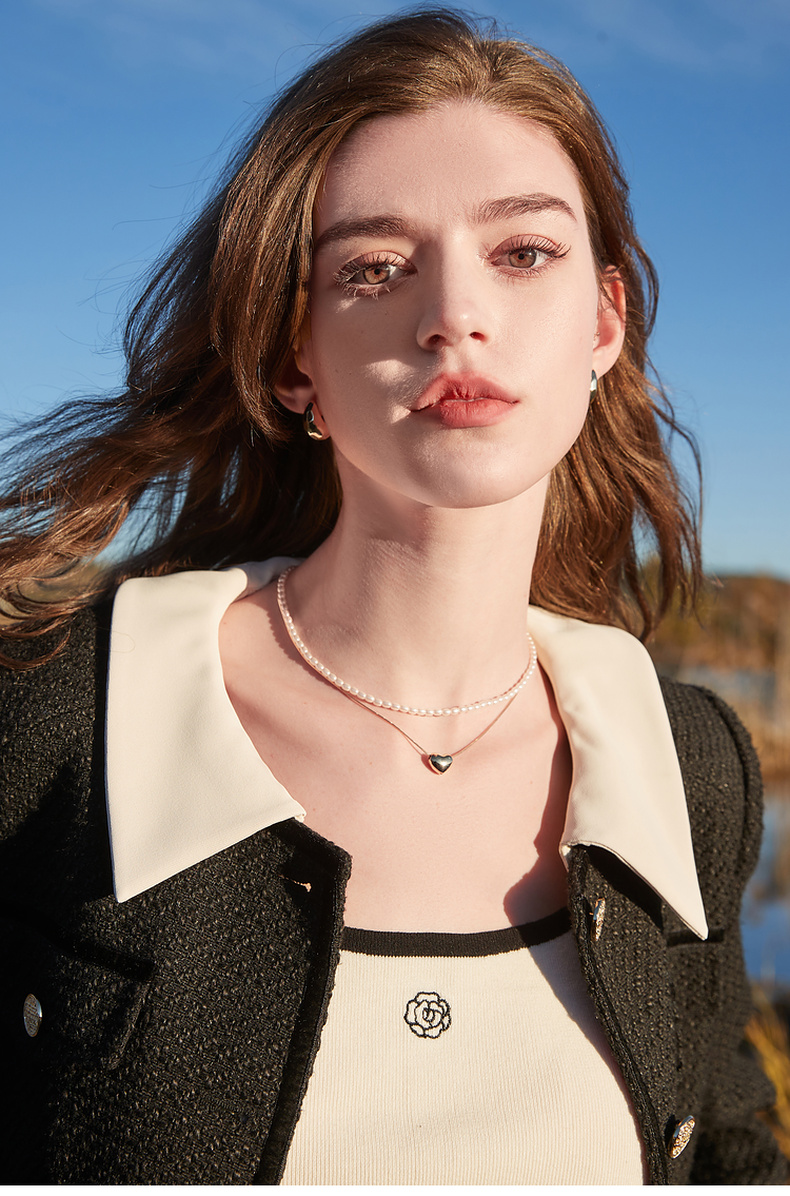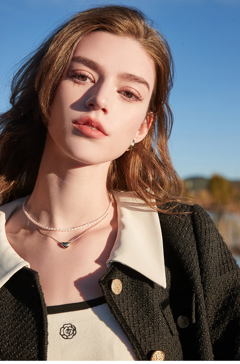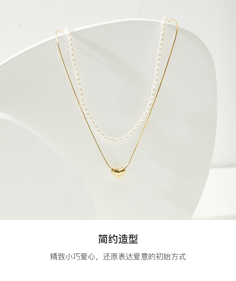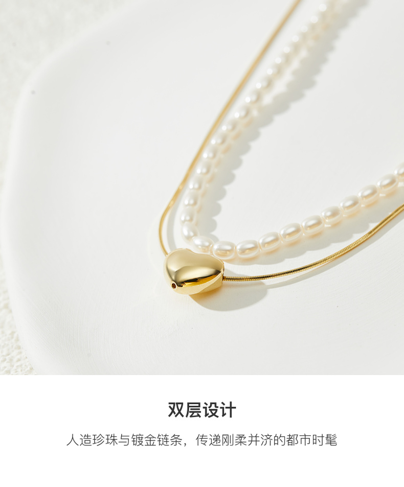 三彩2025新款爱心双层项链人造珍珠串链叠戴锁骨链毛衣链ins风女