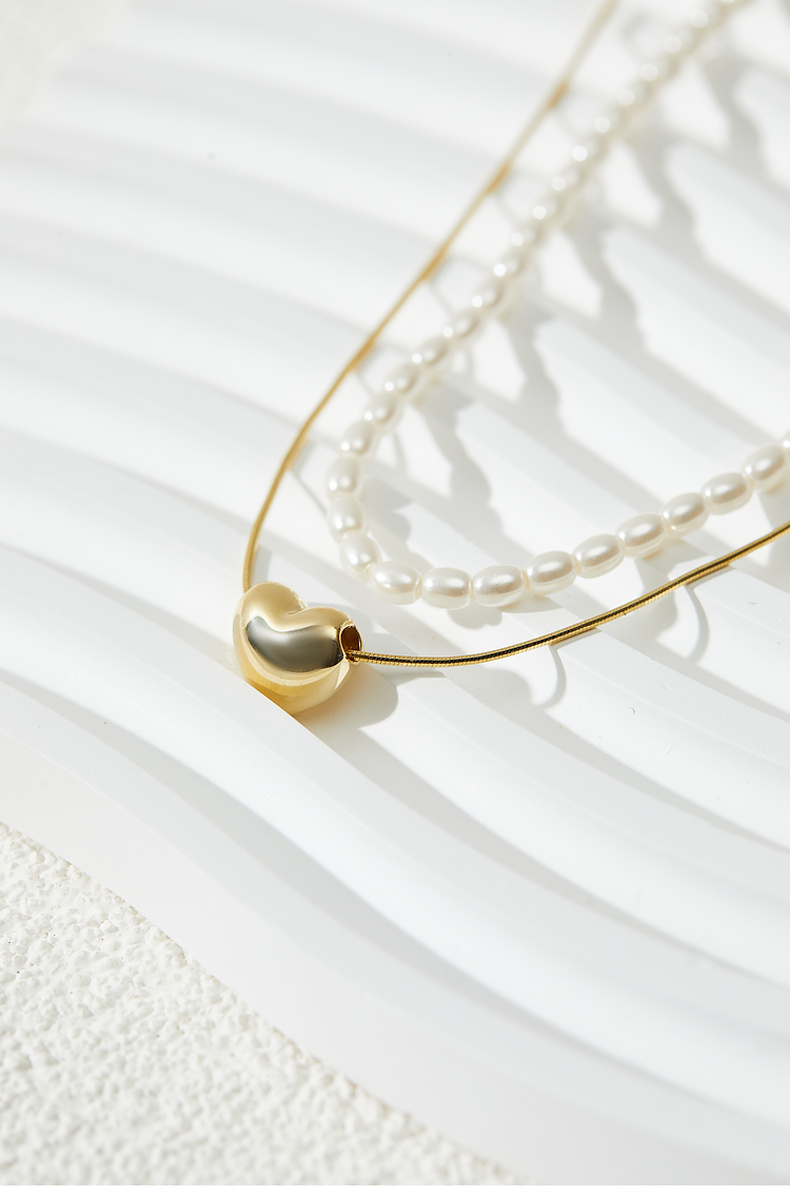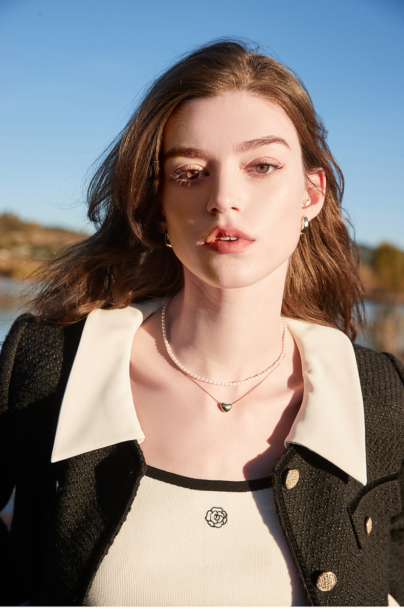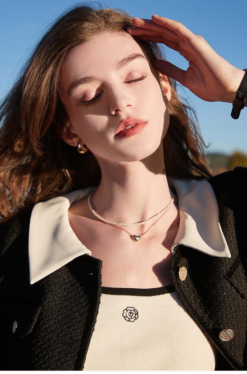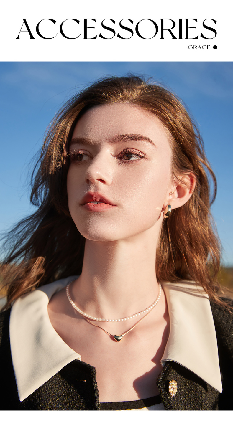 三彩2025新款爱心双层项链人造珍珠串链叠戴锁骨链毛衣链ins风女