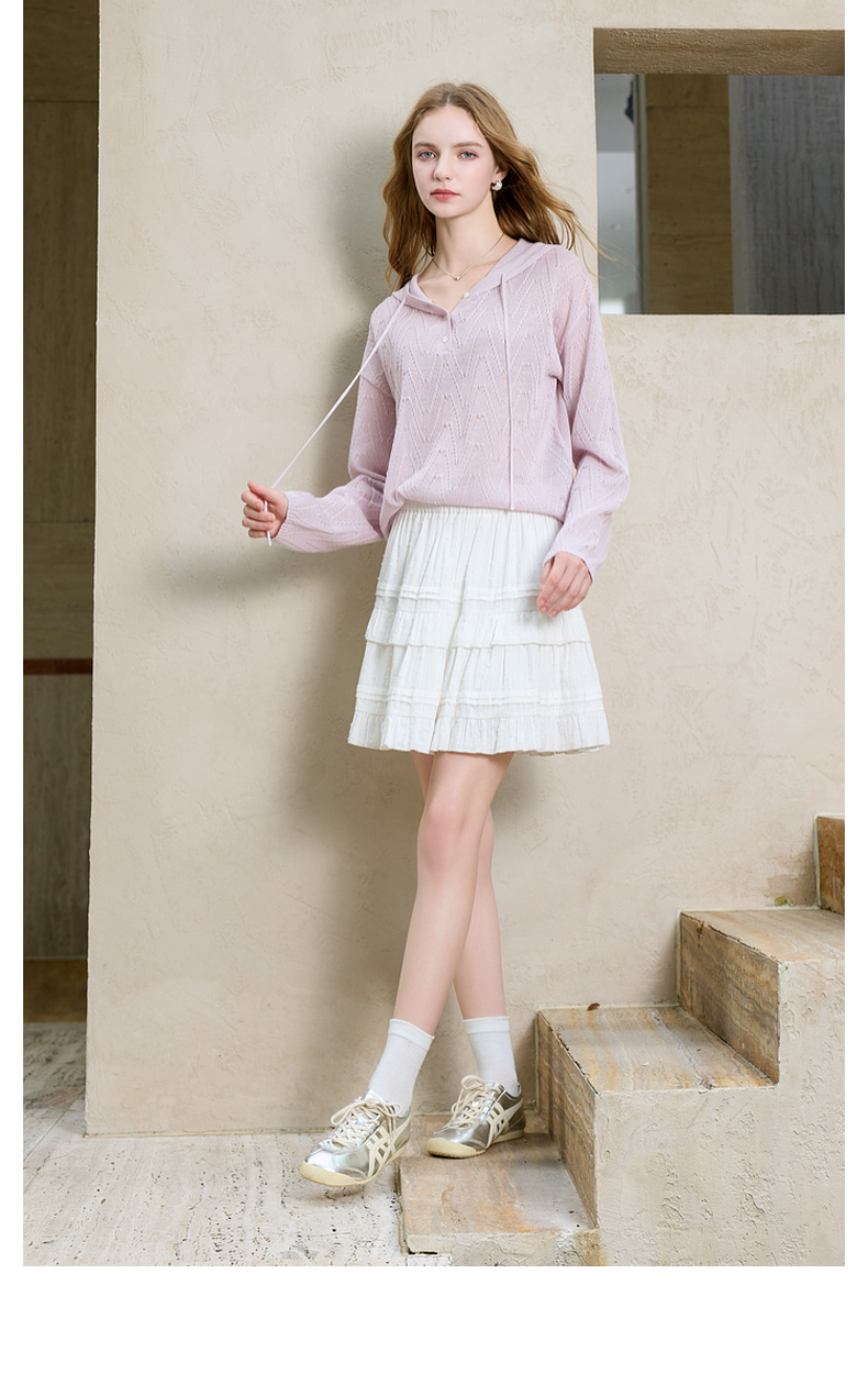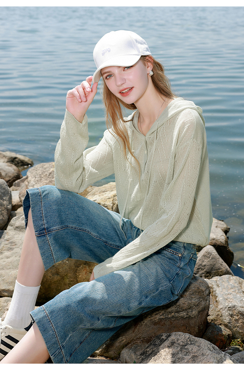三彩2025秋季新款慵懒简约宽松连帽休闲长袖针织衫套头毛衫M