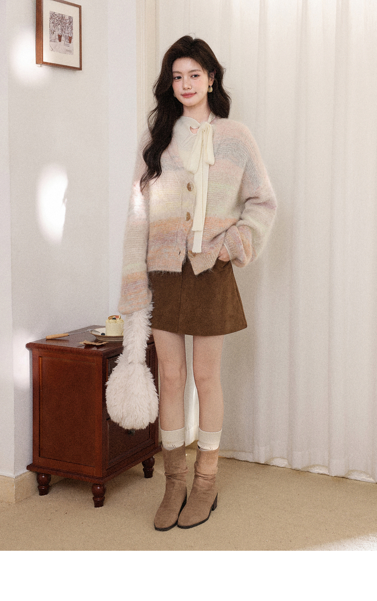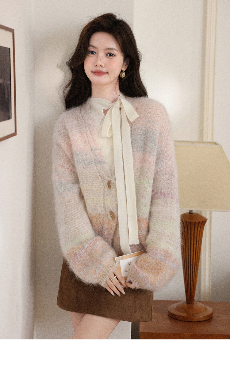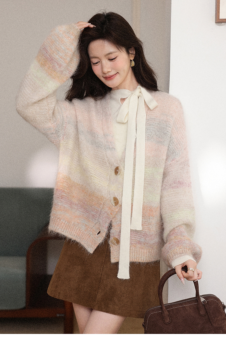 鹿向南「层澜叠彩」秘鲁羊驼毛开衫毛衣秋冬洋气设计感针织衫上衣