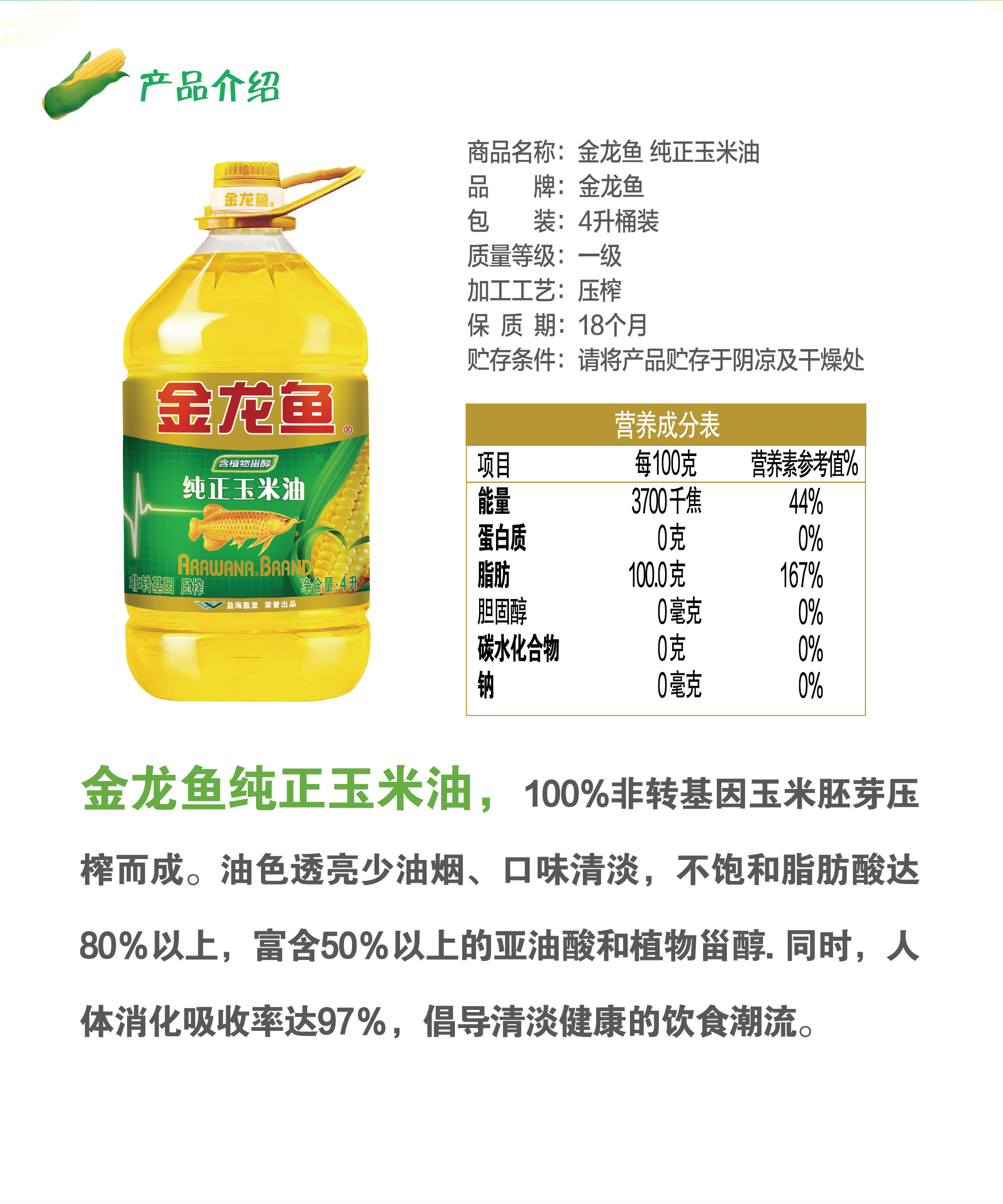 金龙鱼 纯正玉米油4L/桶 非转基因 物理压榨 家用桶装食用油色拉油 油色透亮 口味清淡