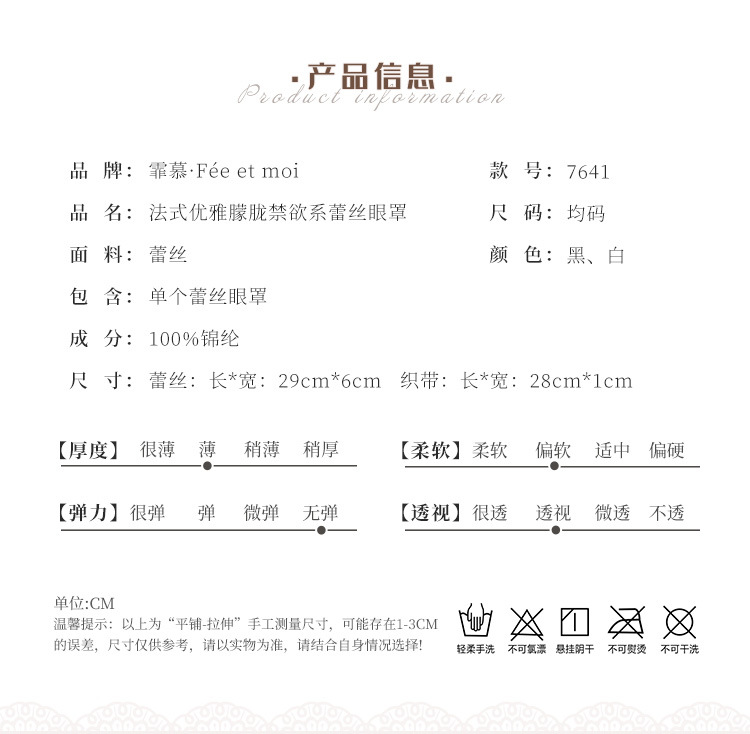 【霏慕】法式优雅朦胧禁欲系蕾丝眼罩7641情趣内衣性感套装配件
