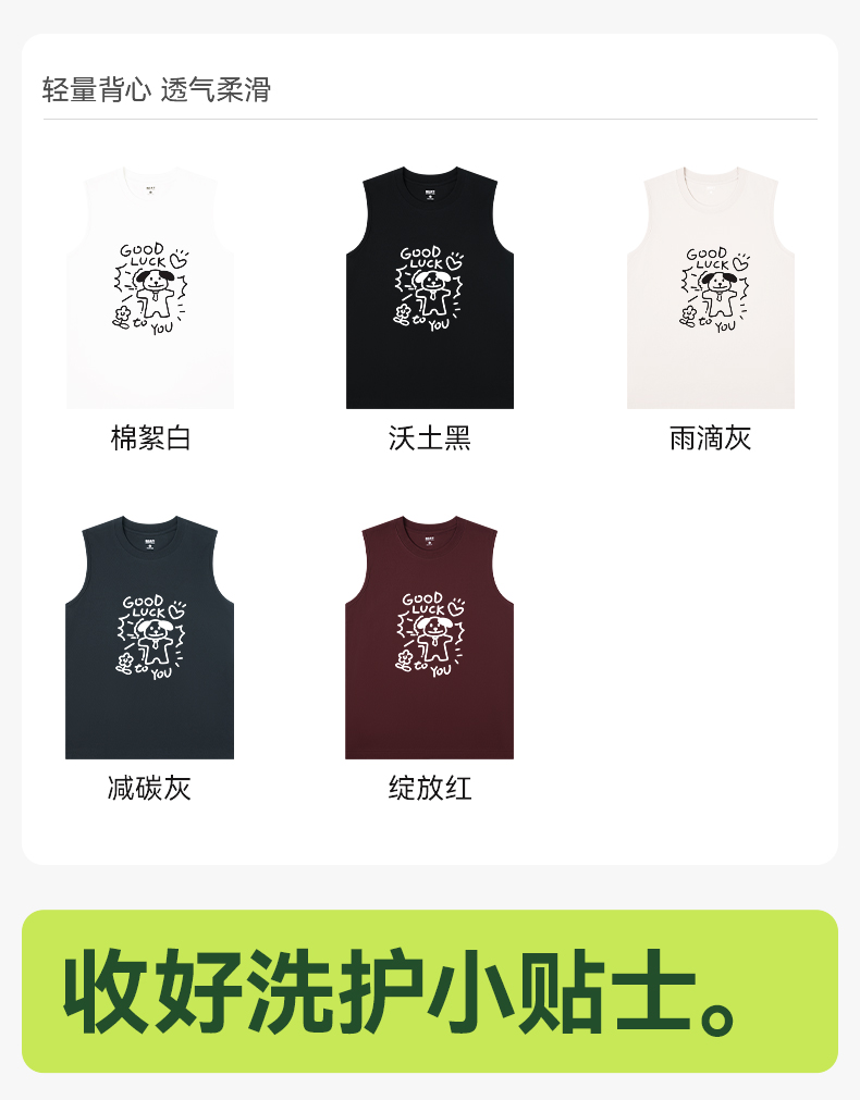 「棉的美学」纯棉凉感运动背心男款小狗印花夏季健身休闲无袖T恤