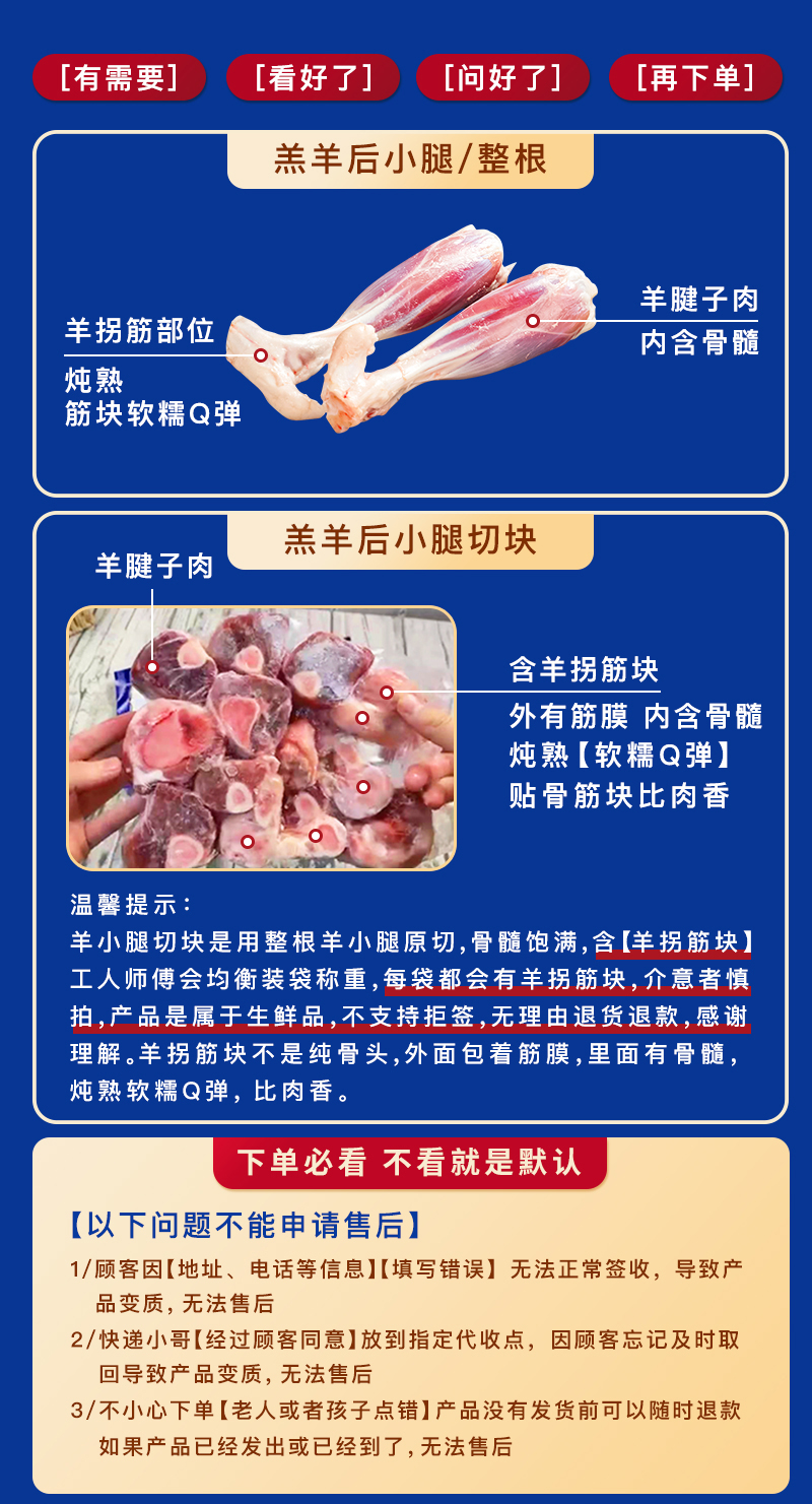 夏季牧场 内蒙古有机羔羊后小腿切块4斤【1000g×2袋】顺丰包邮