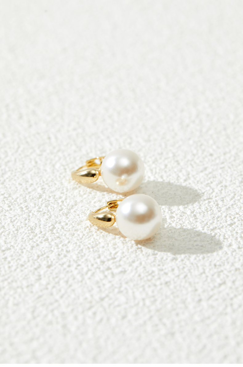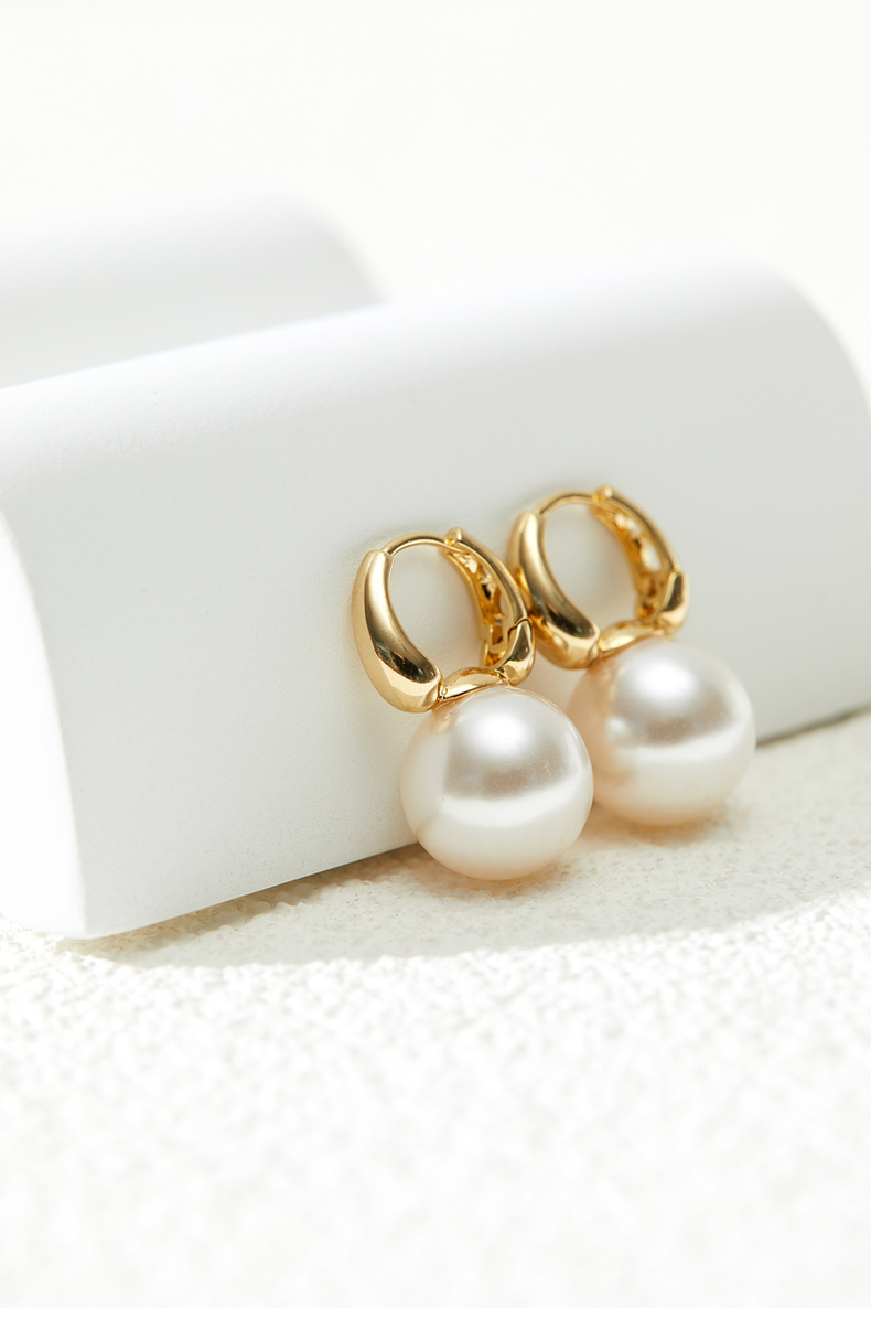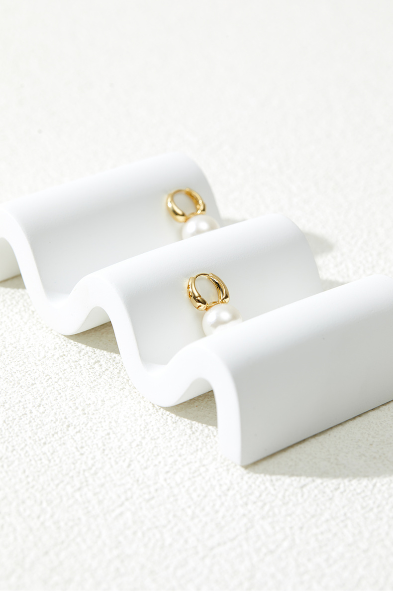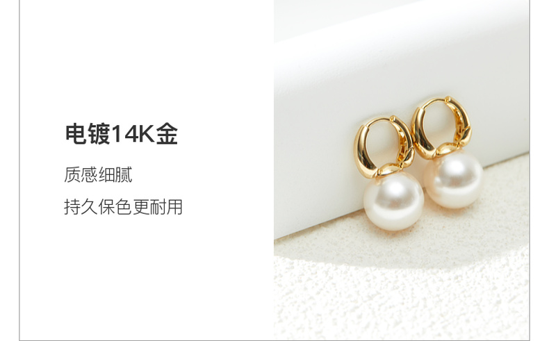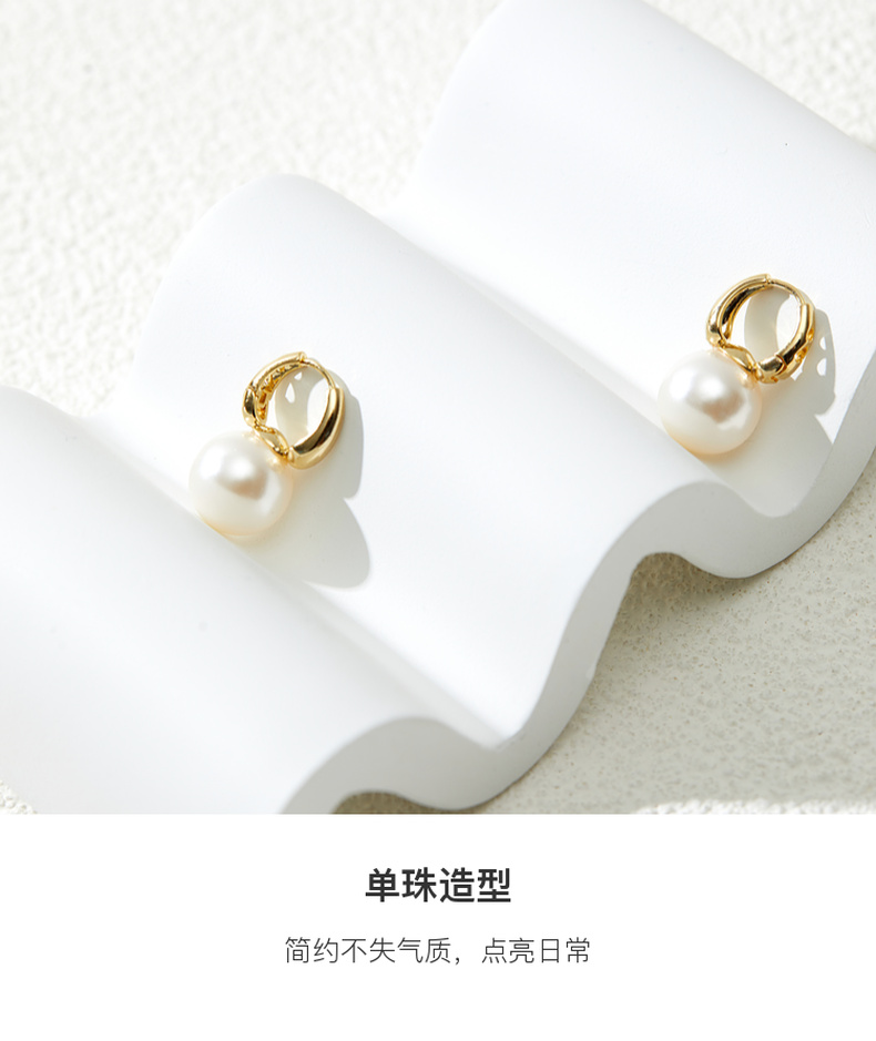 三彩2026新款简洁珍珠耳环金色耳圈简约圆形轻奢耳饰法式复古女
