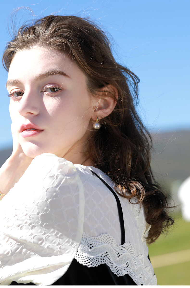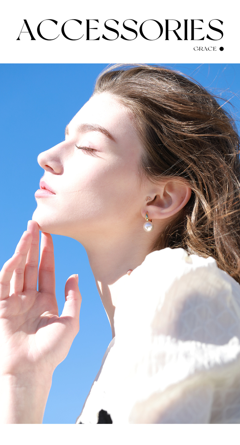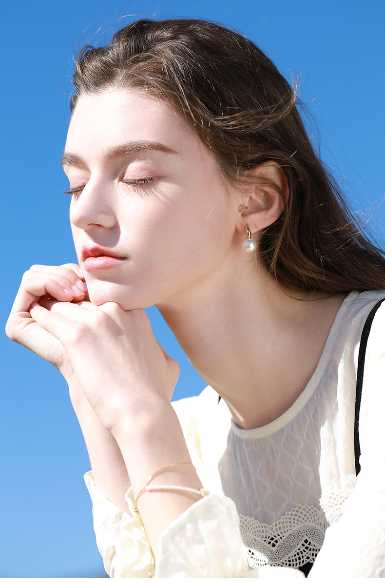 三彩2026新款简洁珍珠耳环金色耳圈简约圆形轻奢耳饰法式复古女