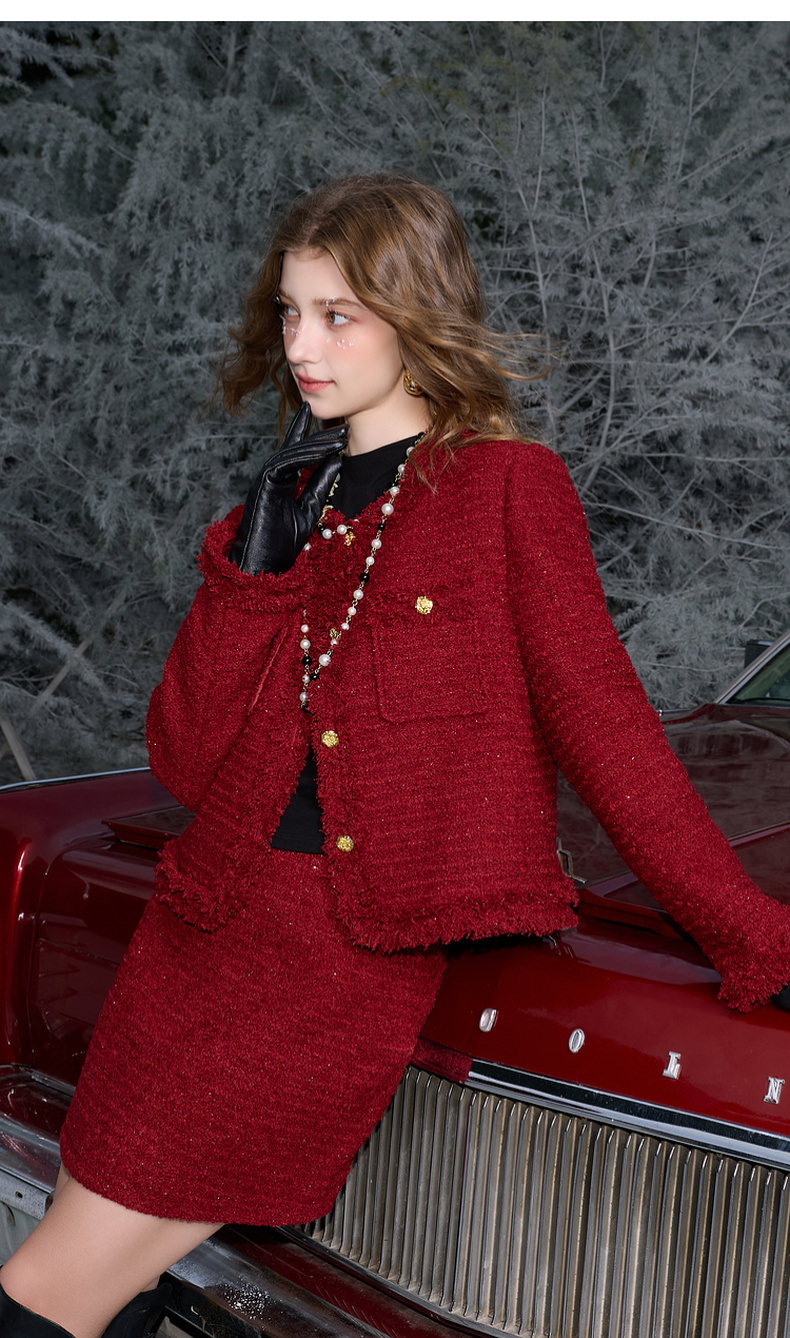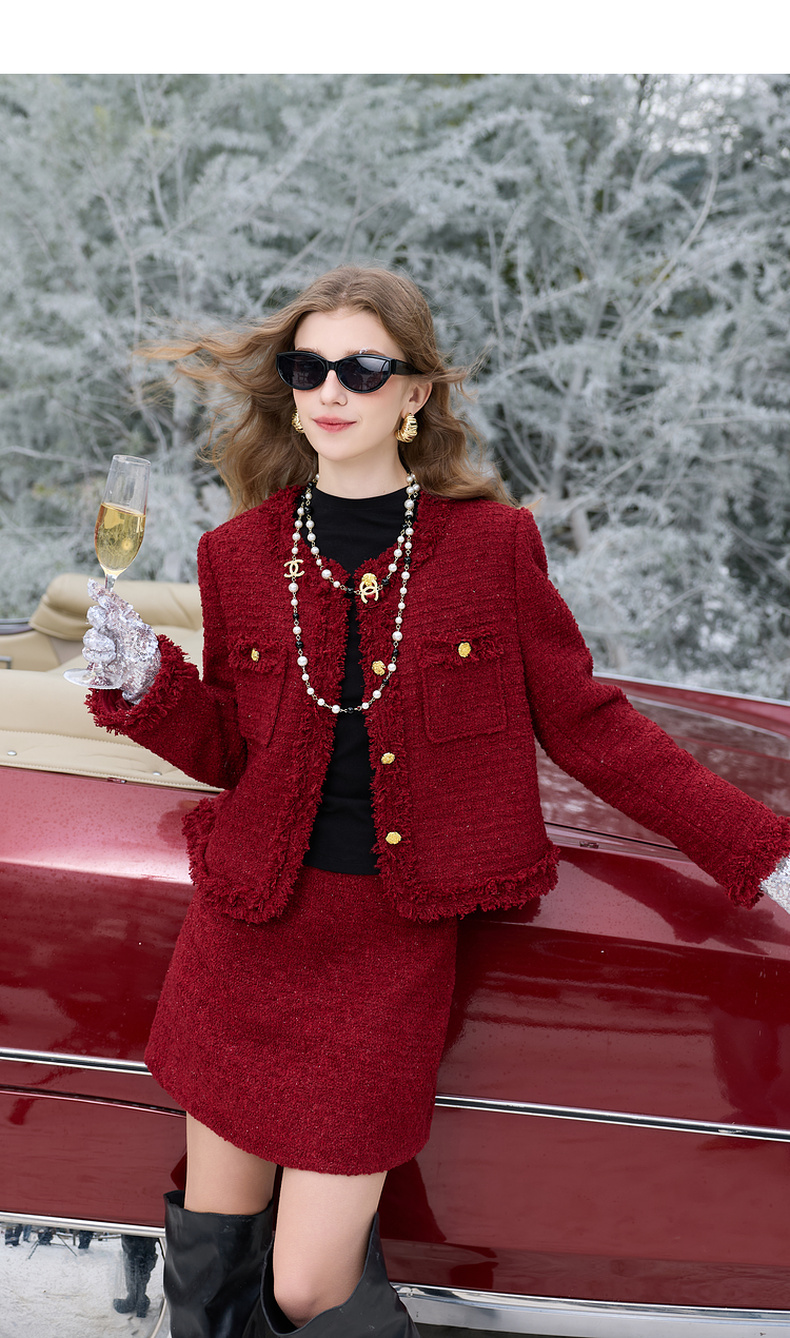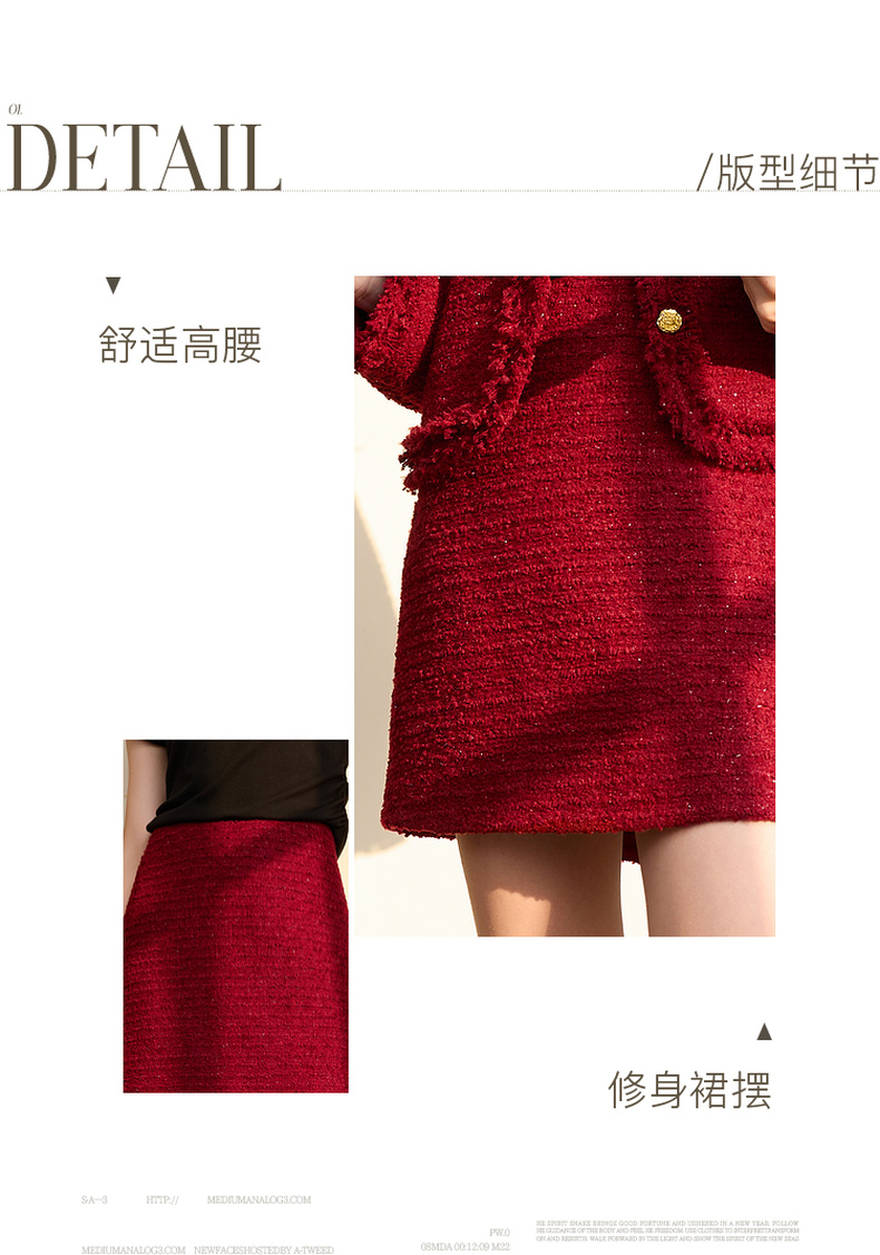 三彩2026春季新款粗花呢小A裙半身裙高腰短裙修身轻奢香风M