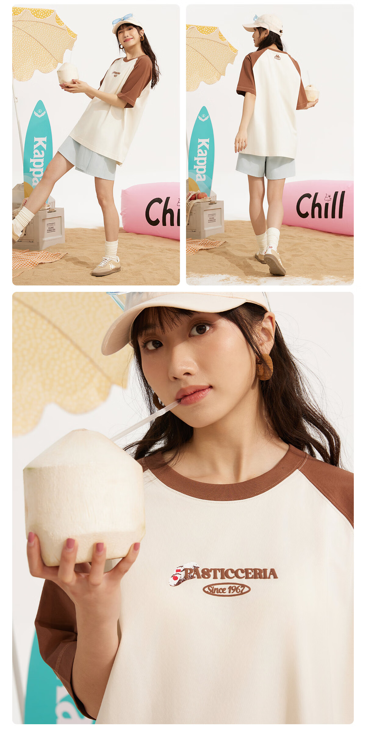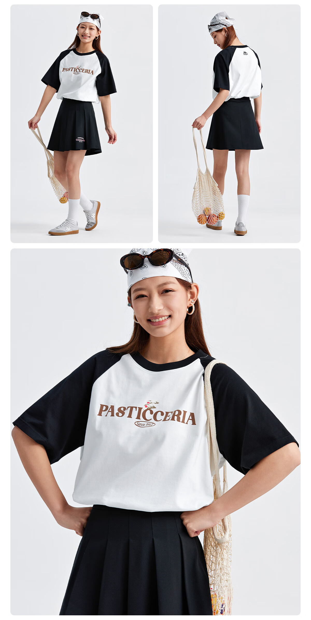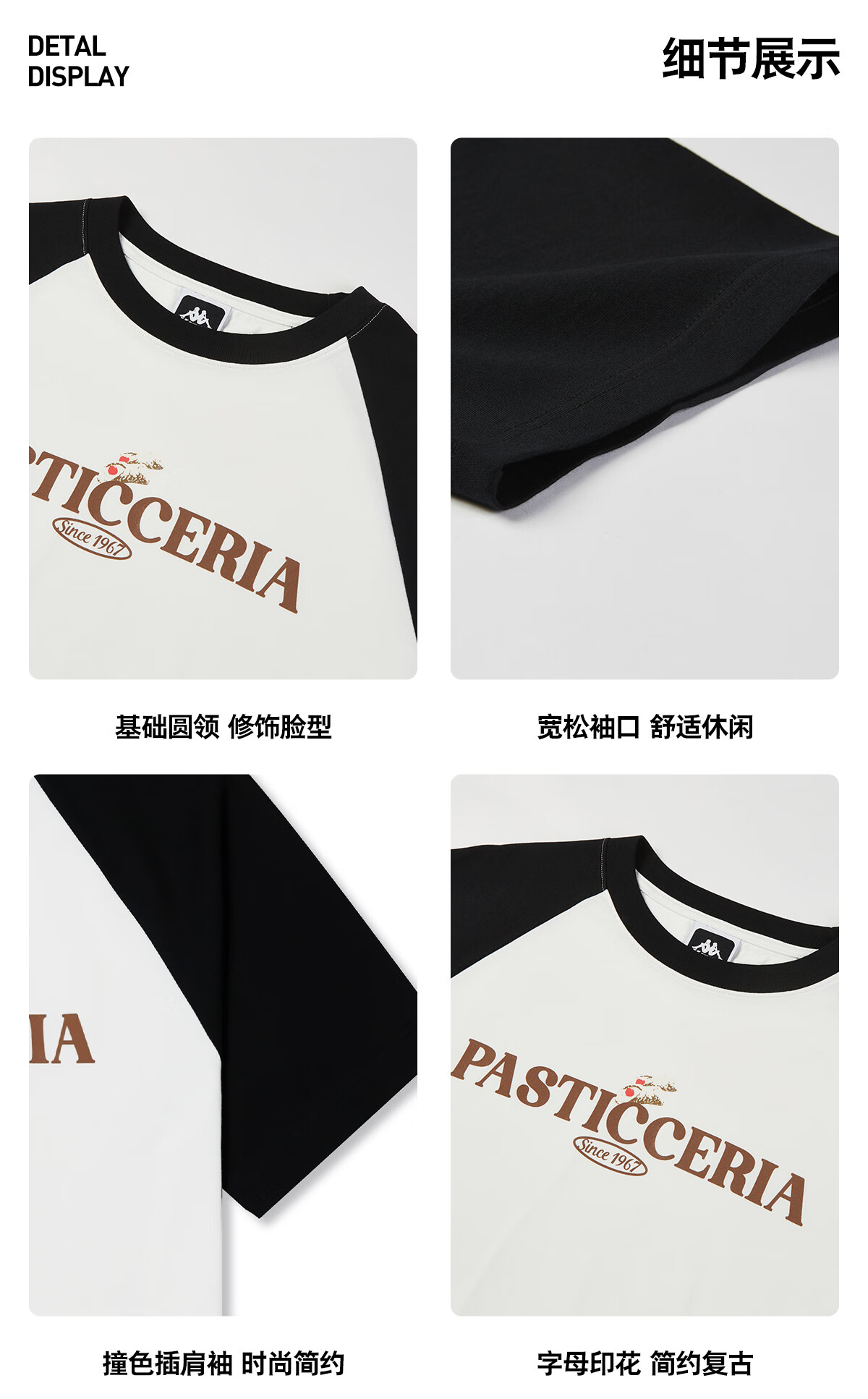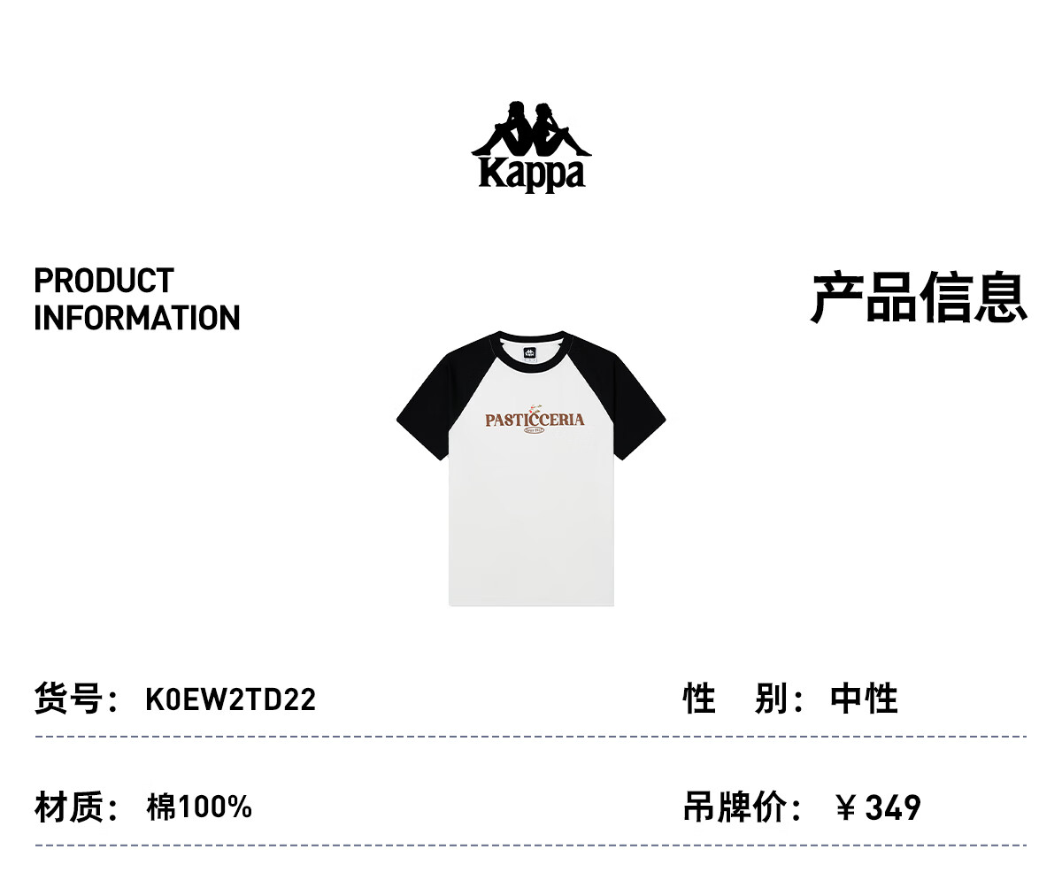 卡帕(Kappa)短袖2024新款男女夏撞色插肩T恤休闲字母半袖K0EW2TD22