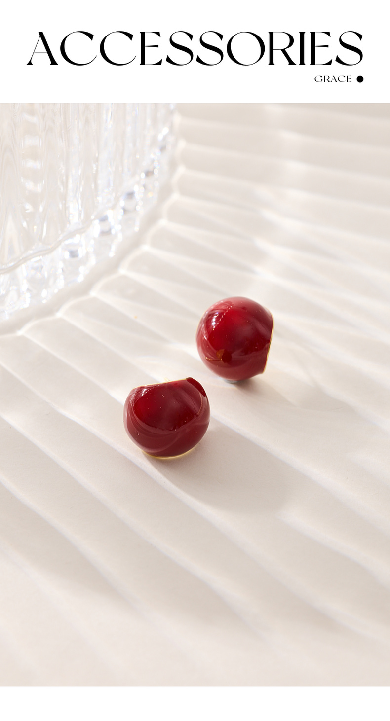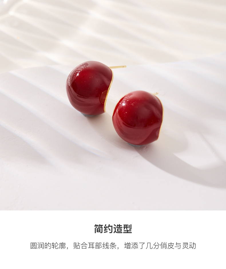 三彩2025新款复古安可拉红豆豆耳钉耳饰S925银针简约优雅通勤约会