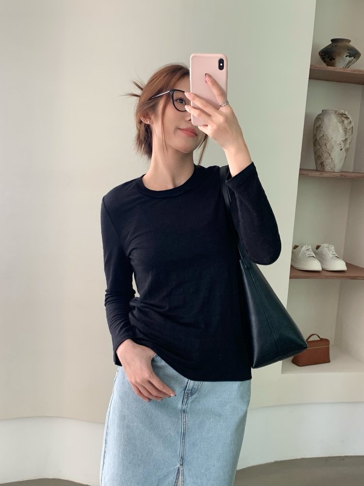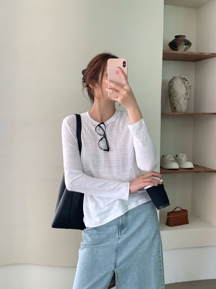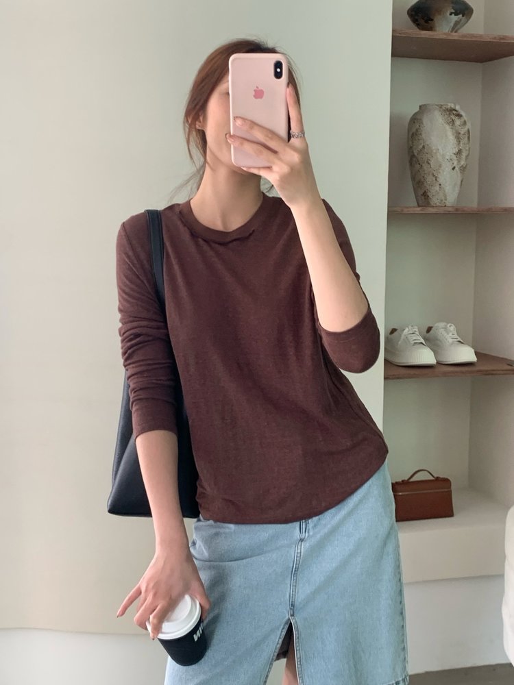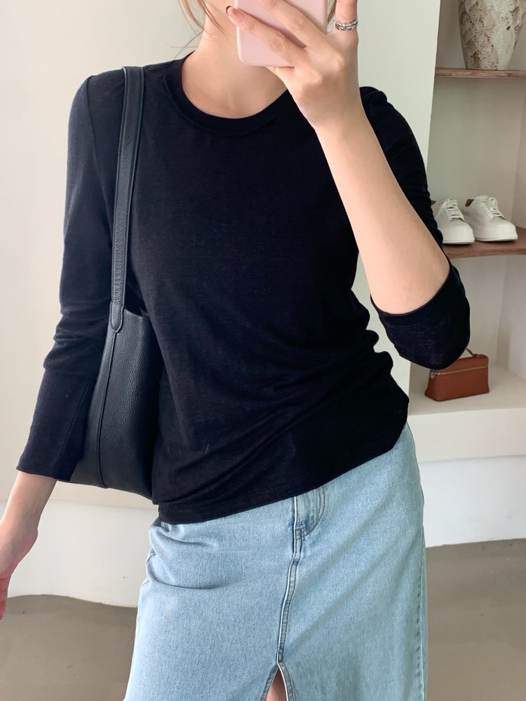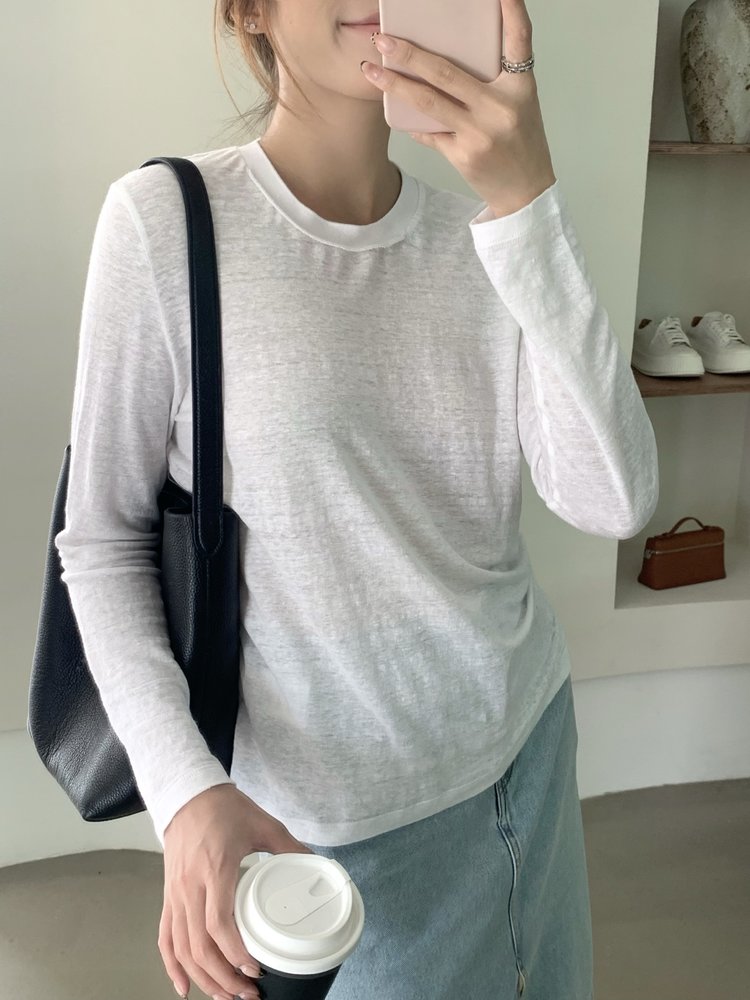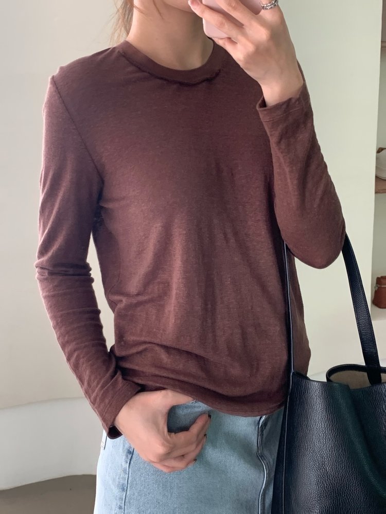 YS1814-亚麻圆领百搭修身打底T恤【Hera&Song】