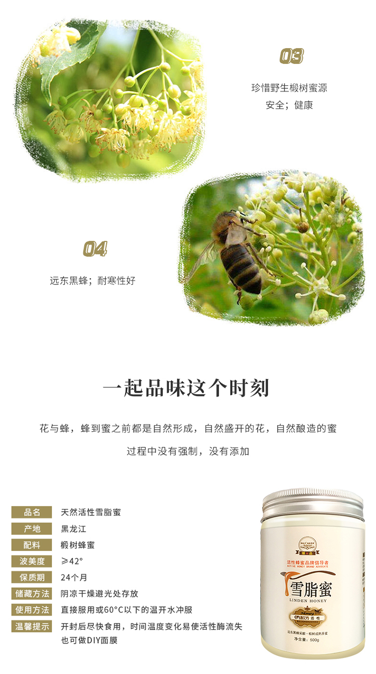 绿次方远东黑蜂天然活性雪脂蜜500g