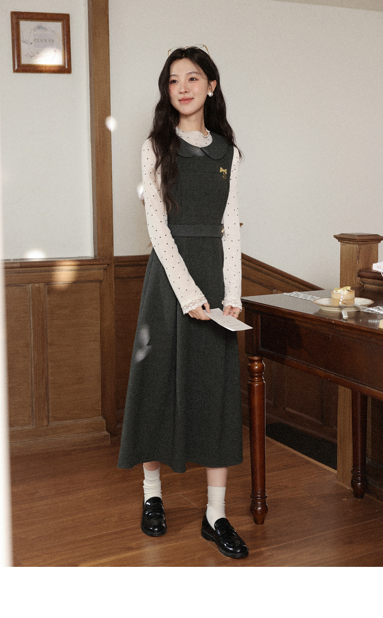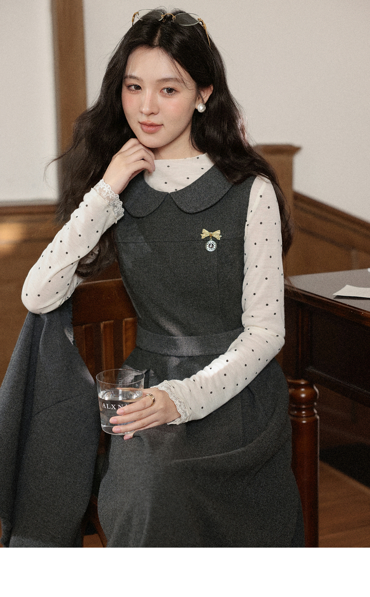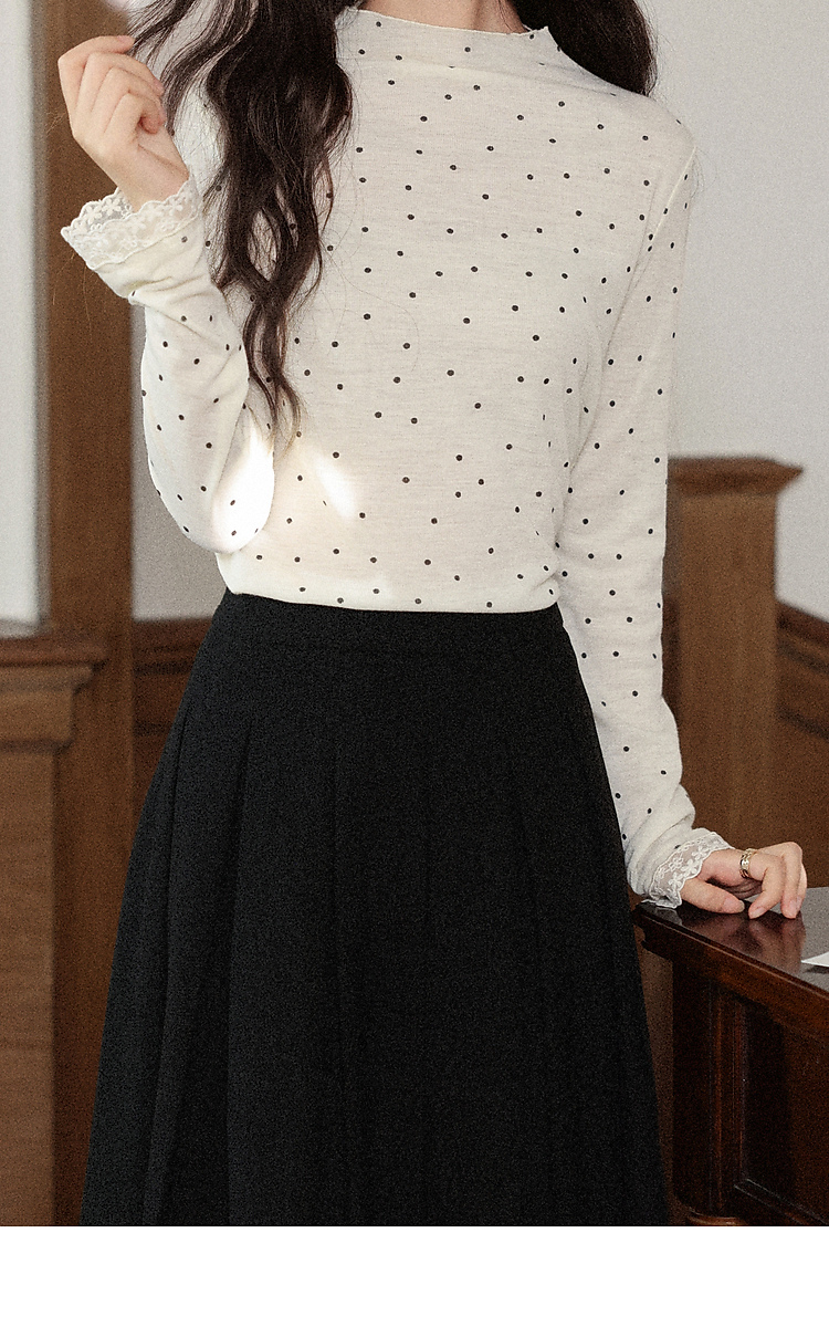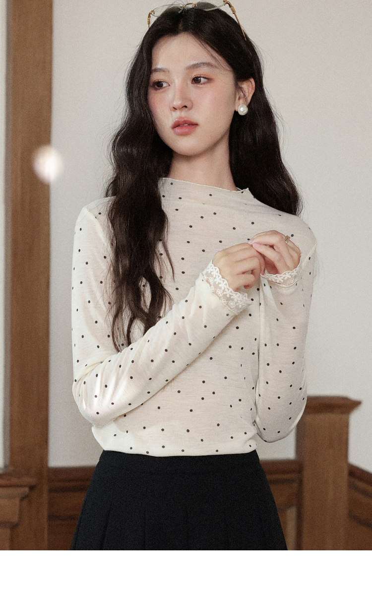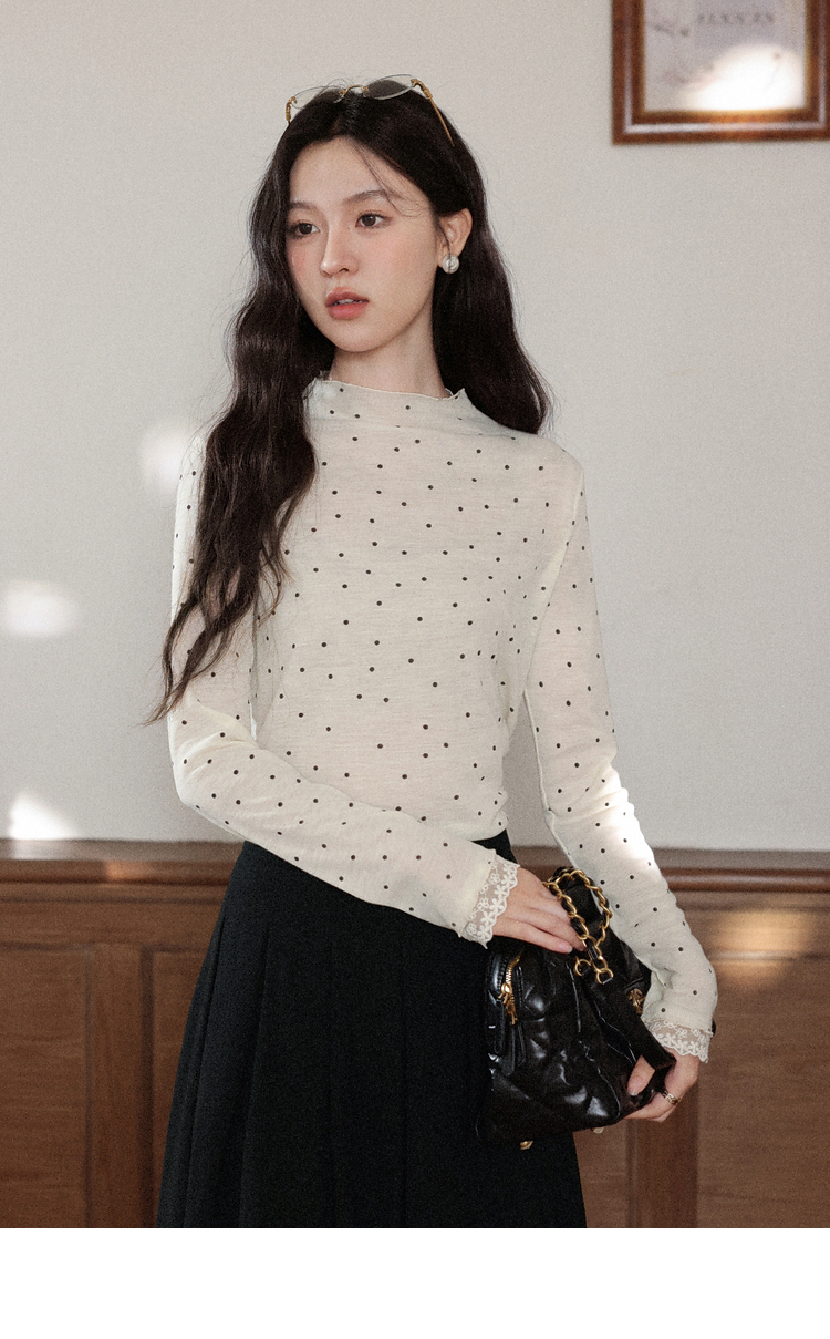 鹿向南「黑糖波波」米白色波点打底T恤秋季新款可爱修身女款上衣