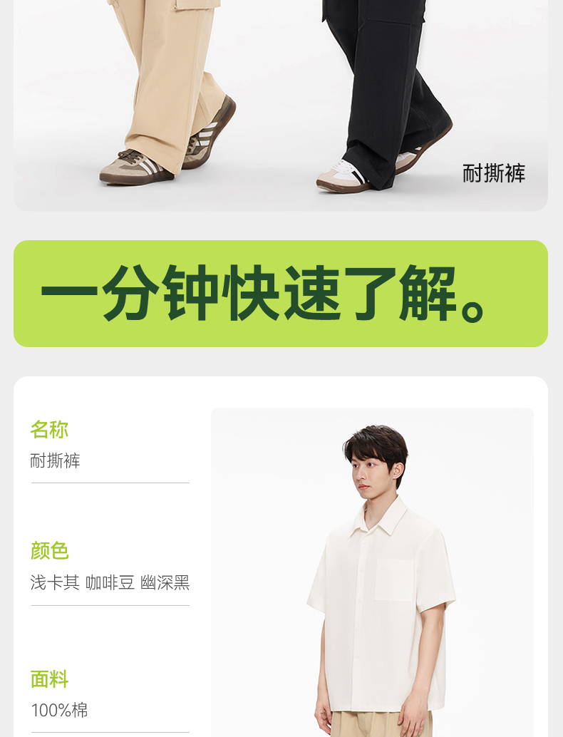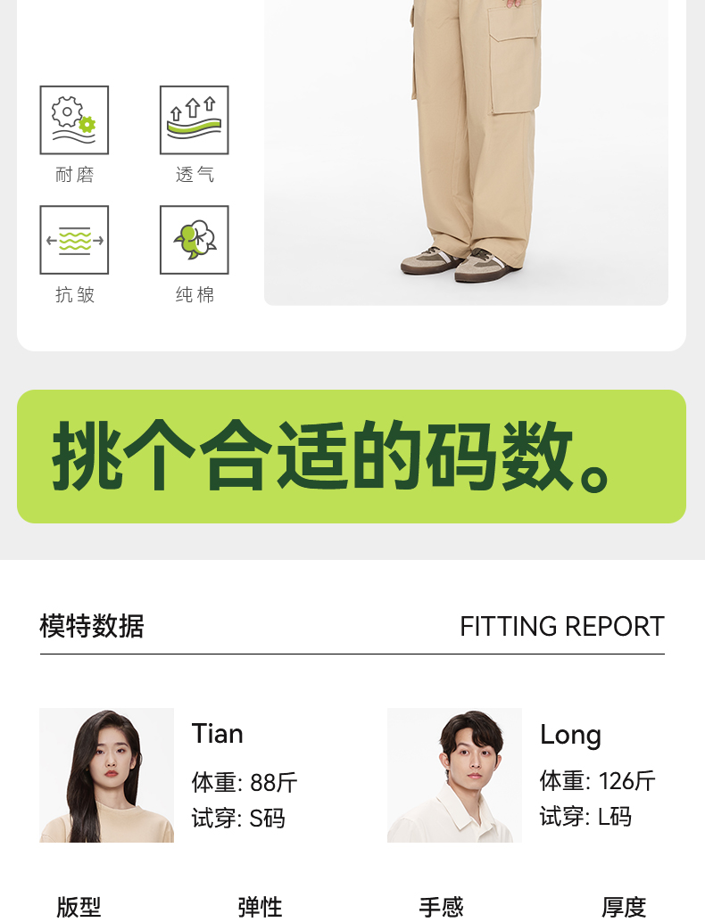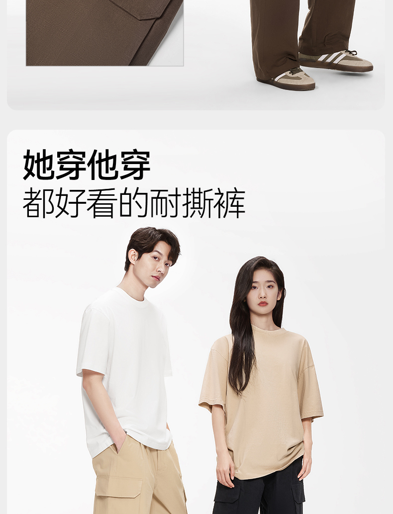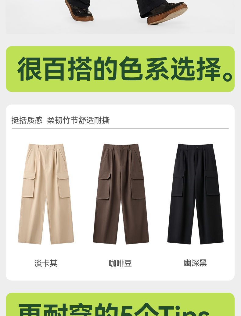 「棉的美学」美式大口袋工装裤男生春季新款直筒休闲宽松阔腿裤
