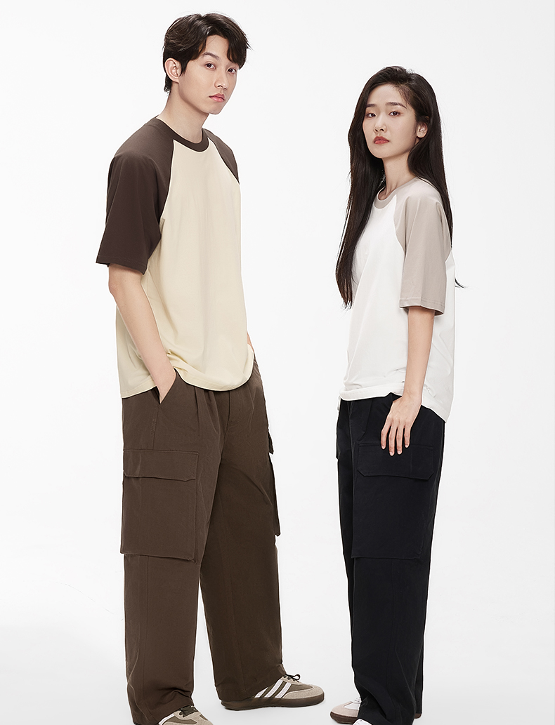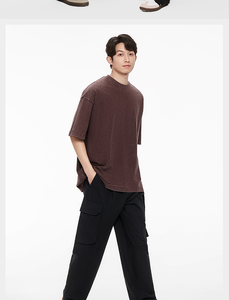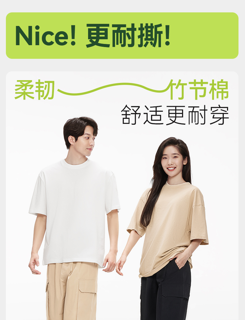 「棉的美学」320G重磅夏季透气宽松休闲简约纯色竹节棉插肩半袖