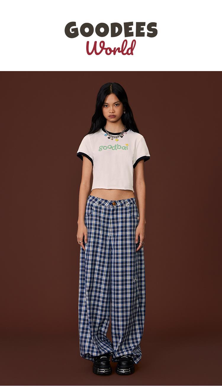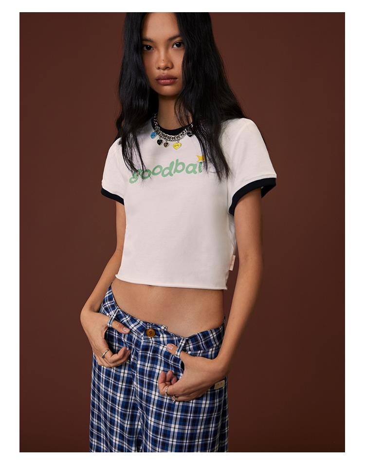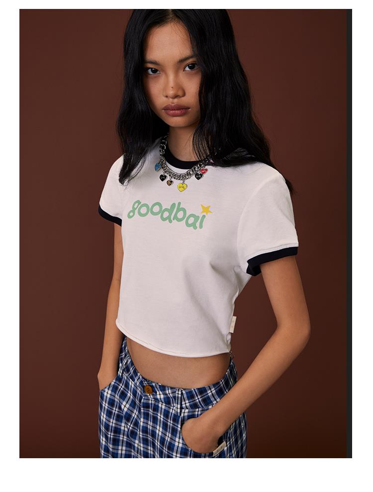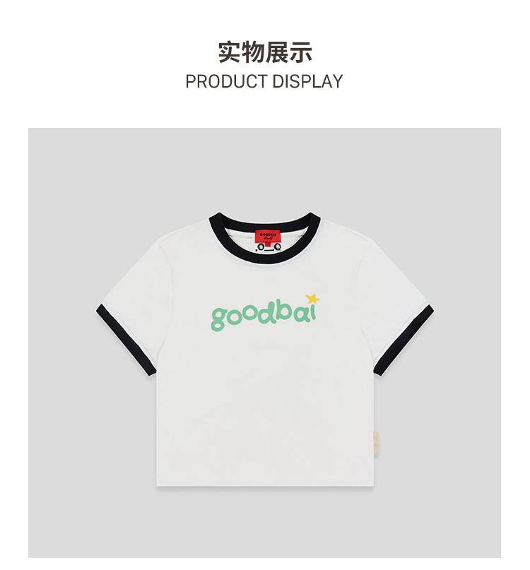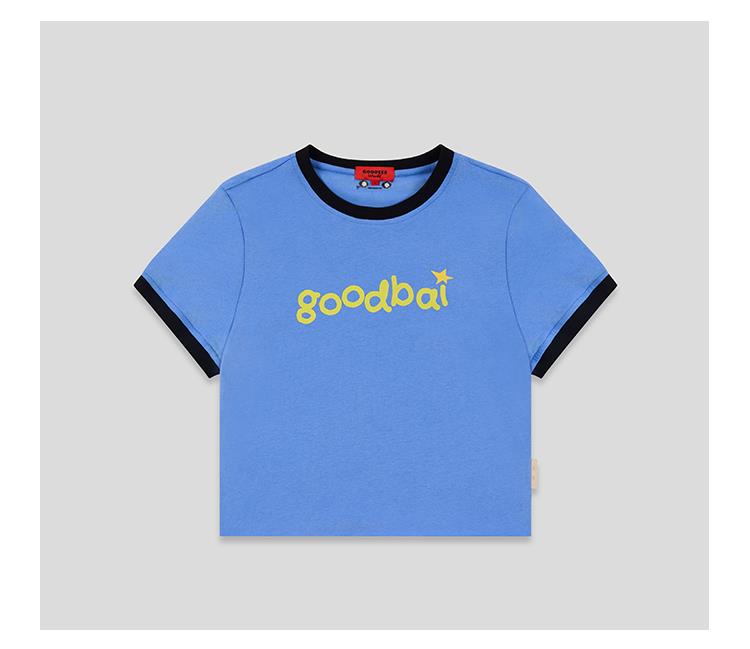 GOODBAI GOODEES印花logo撞色卷边正肩短袖T恤
