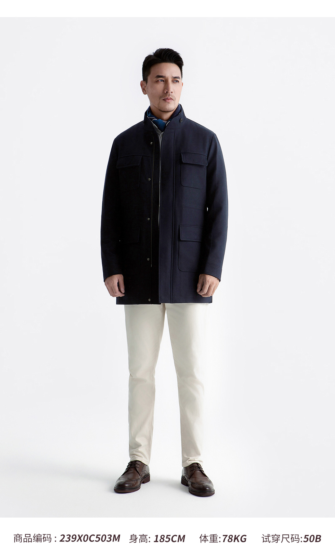 【星耀二号】绵羊毛保暖内胆立领中长款夹克外套239X0C503M
