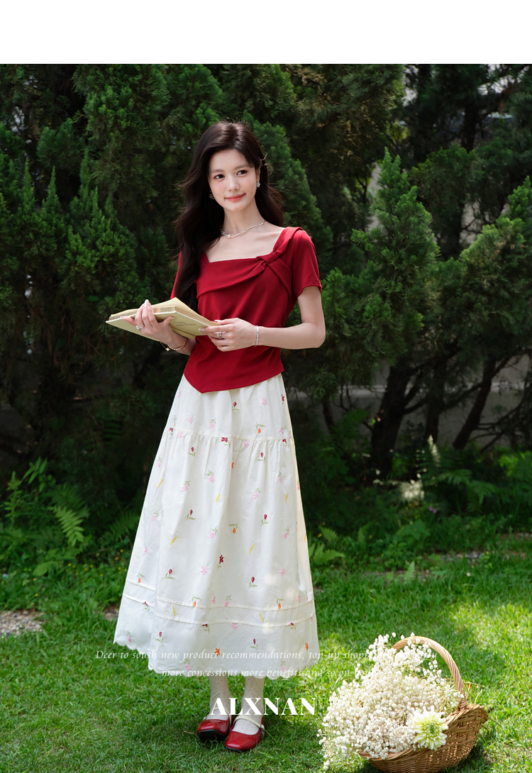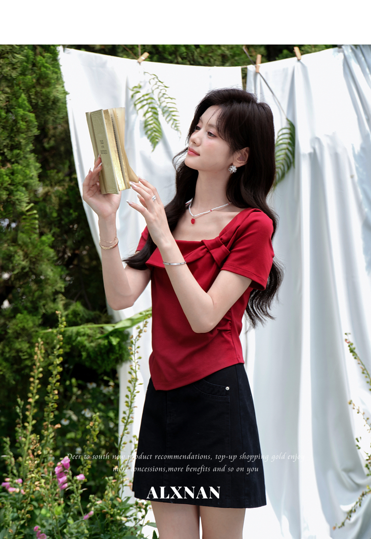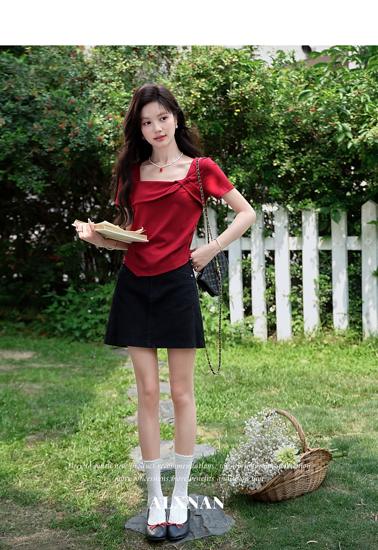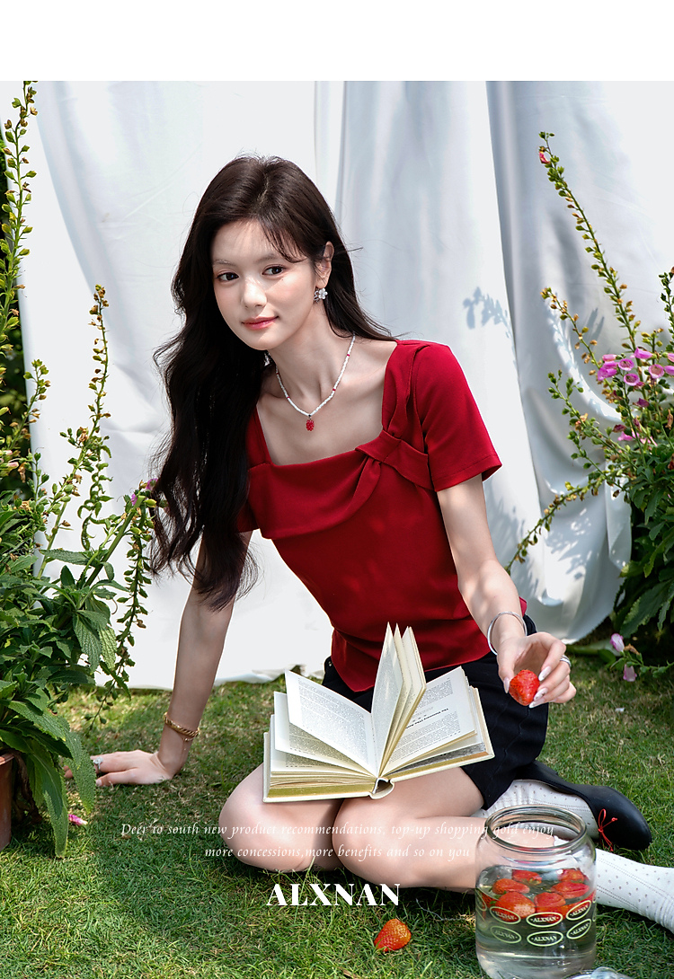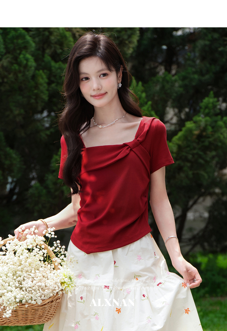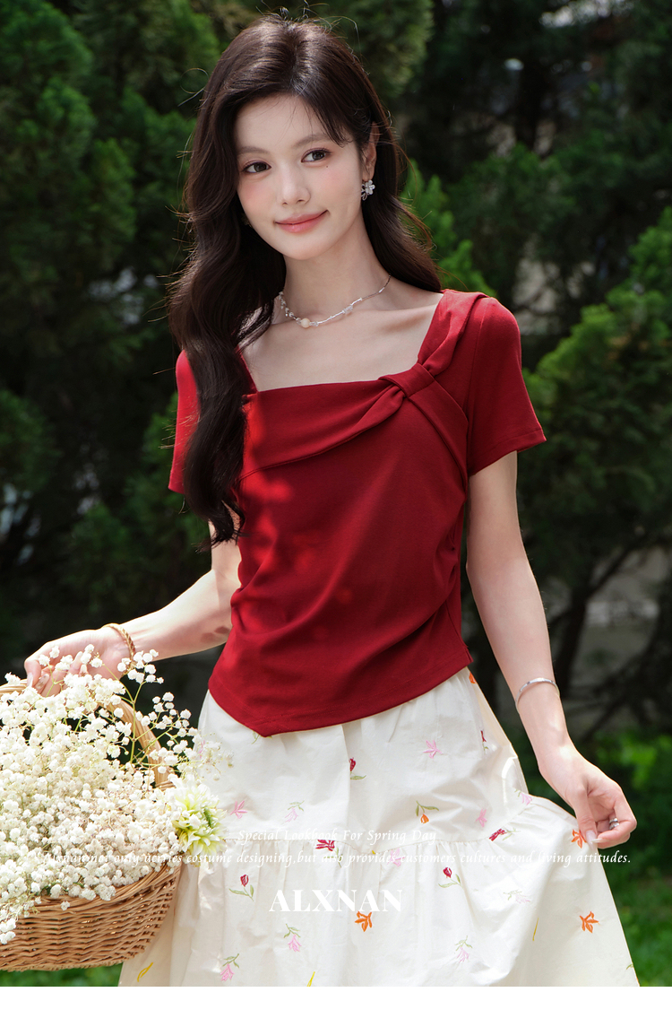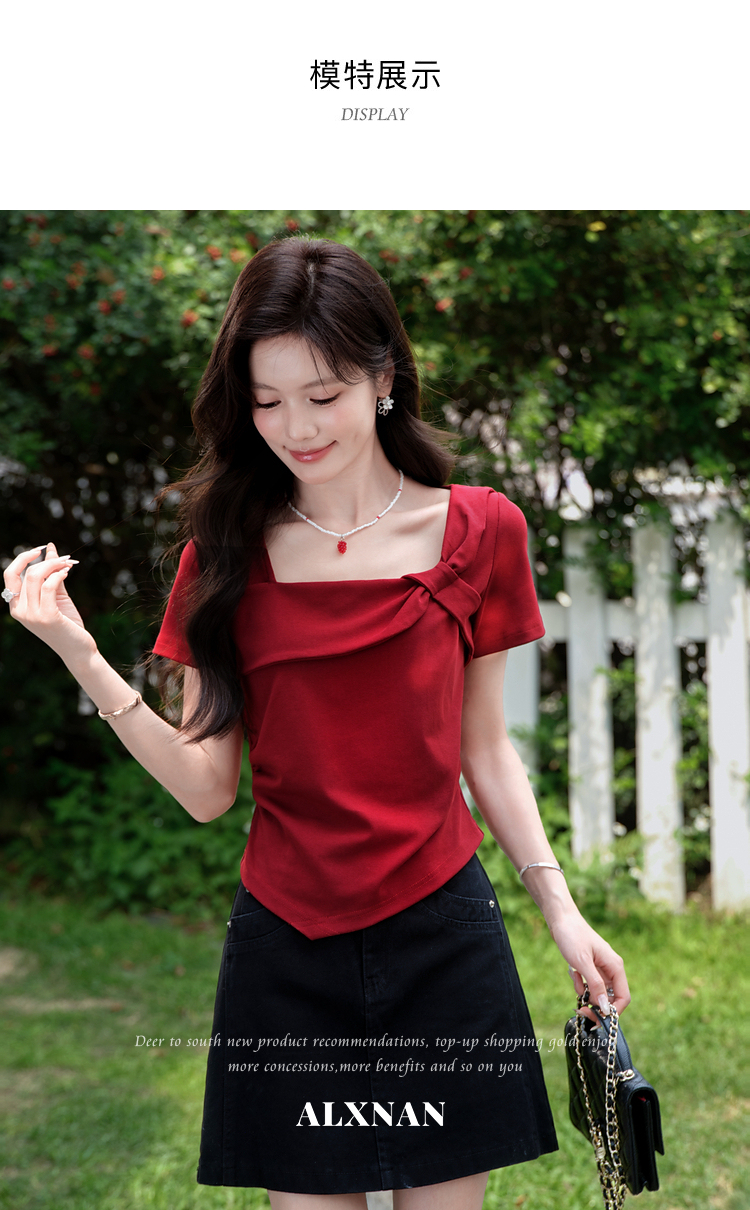 鹿向南【0417/20:00新品前1小时7折限量100件】设计感红色T恤女