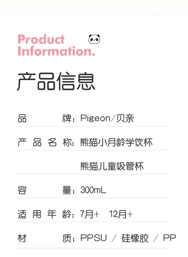 【官方自营】新品上市!贝亲熊猫学饮杯婴儿宝宝防呛喝奶喝水杯儿童吸管杯奶瓶饮水杯PPSU水杯防漏喷25年新款