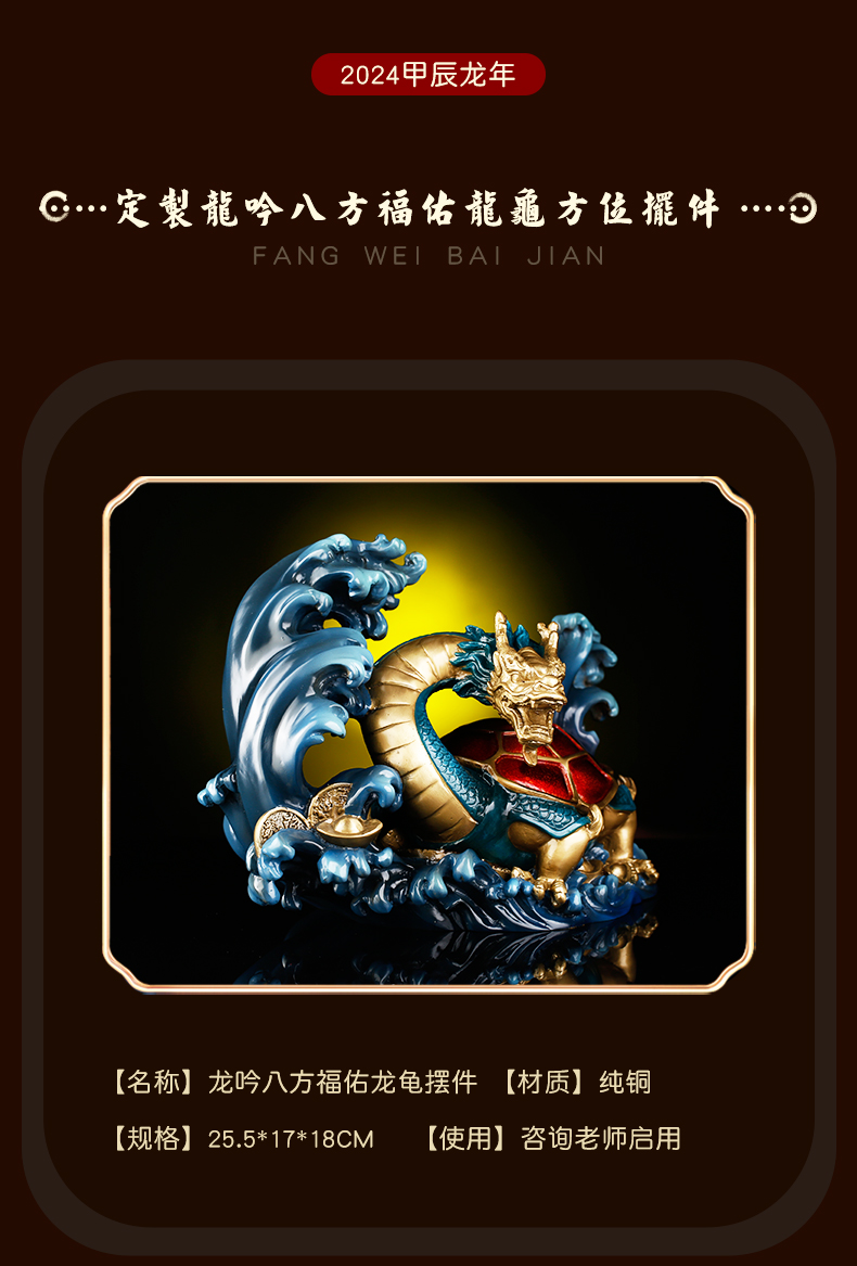 慈元阁2024年方位吉祥物八方福佑龙龟摆件玄空九宫飞星摆件家居玄关办公室摆设