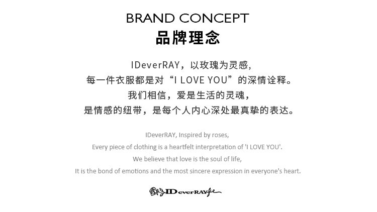 - ❣IDeverRAY简称“ID”,象征独一无二的个人标识,同时与"爱的"谐音,代表爱情的个性化表达 品牌slogan:玫瑰🌹配ID,更好的告白 品牌语言:I ID YOU