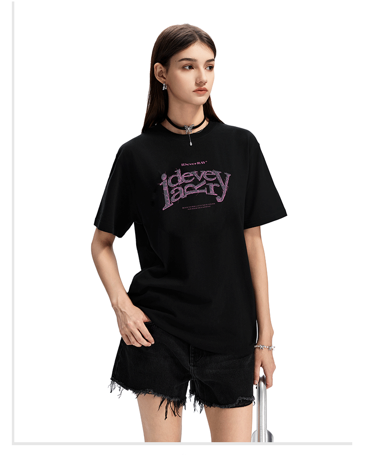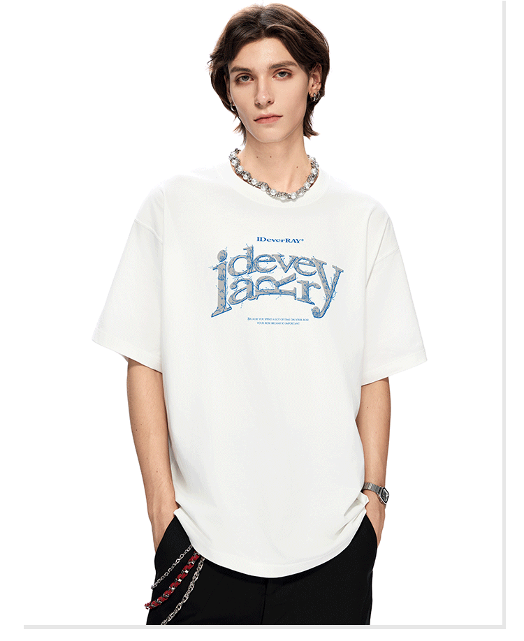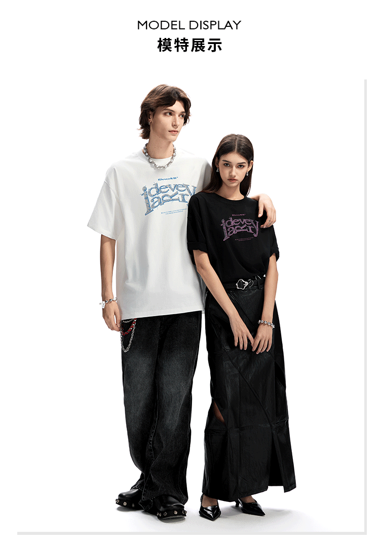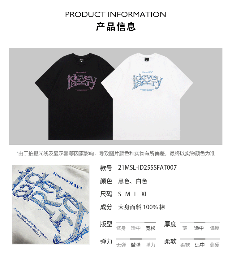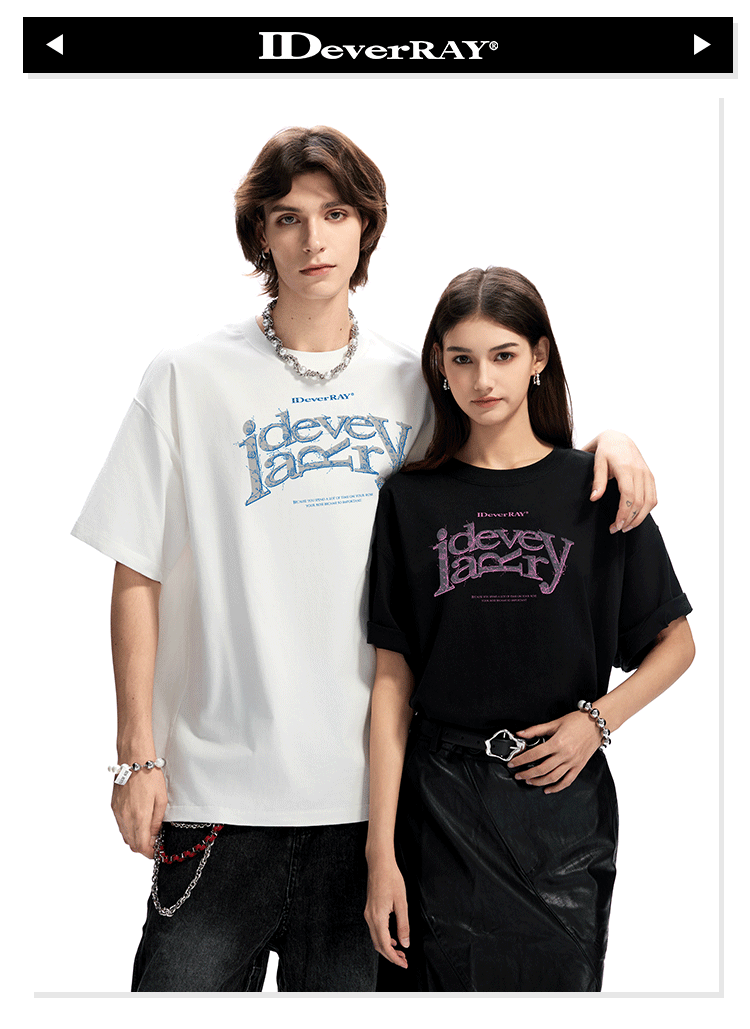 IDEVERRAY夏季2025新款轻奢高级纯棉短袖t恤男女士宽松圆领情侣装上衣21MSL-ID25SSFAT007