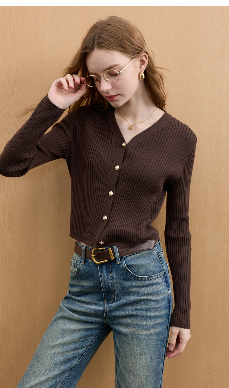 【宋轶同款】[可机洗100绵羊毛]三彩2025冬季新款修身短款针织衫长袖开衫M
