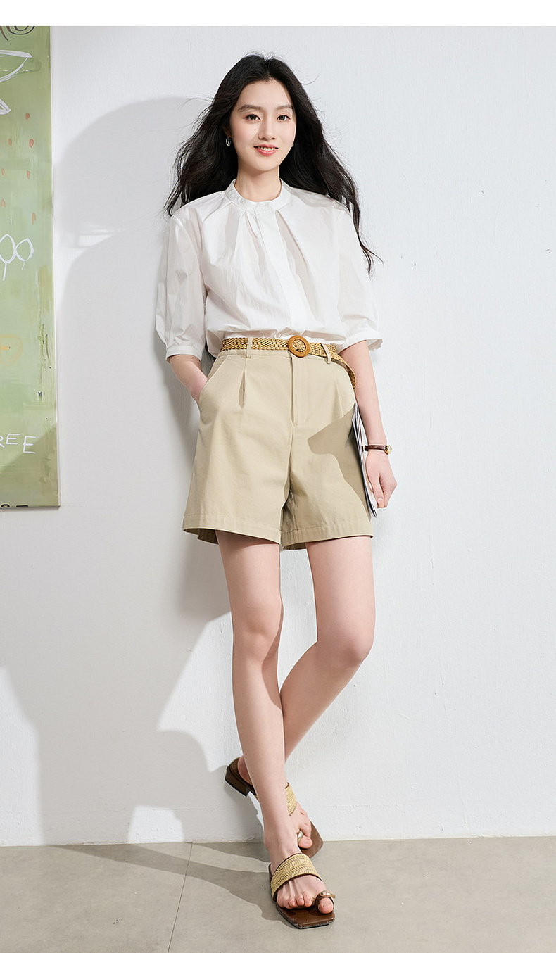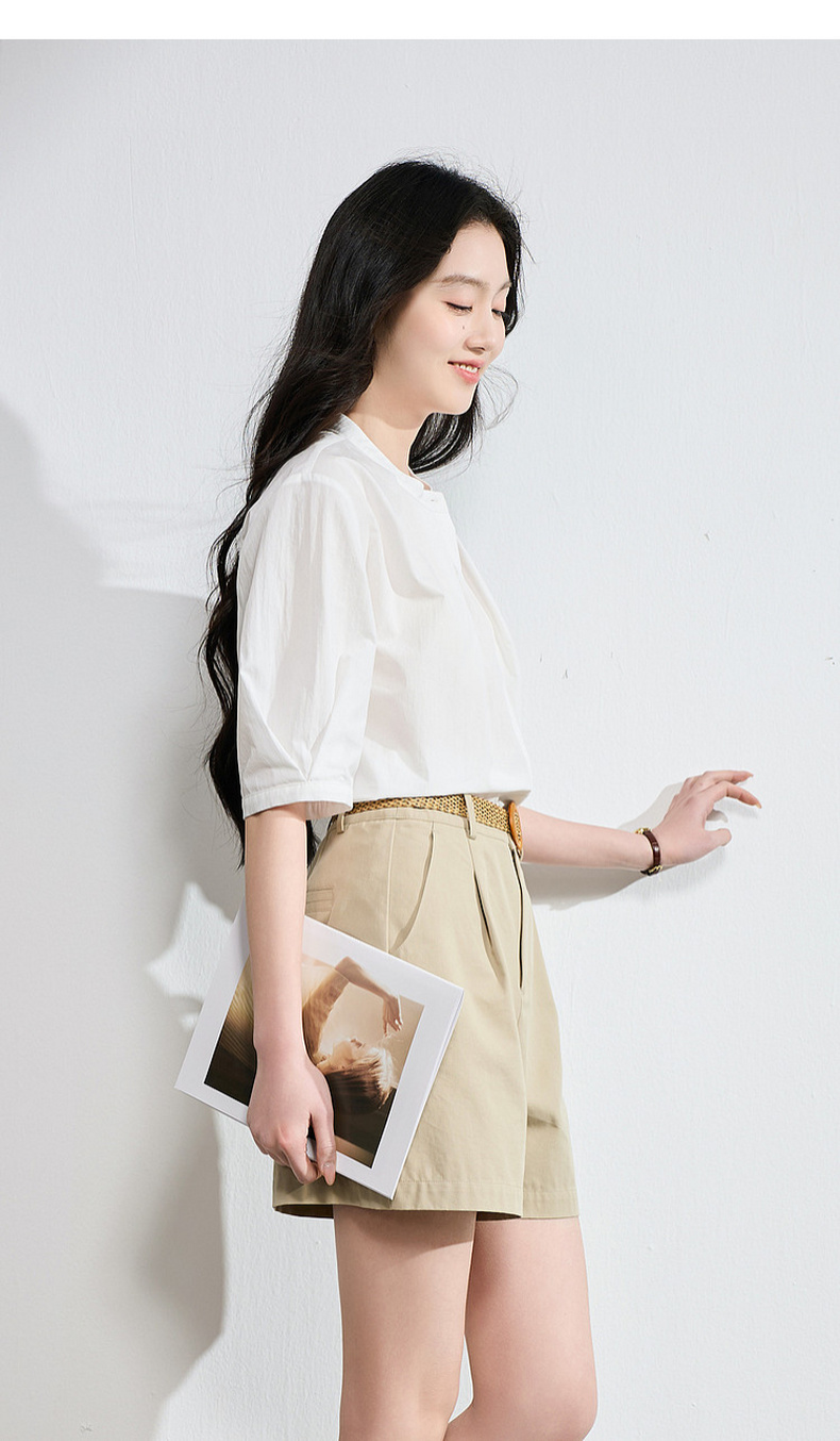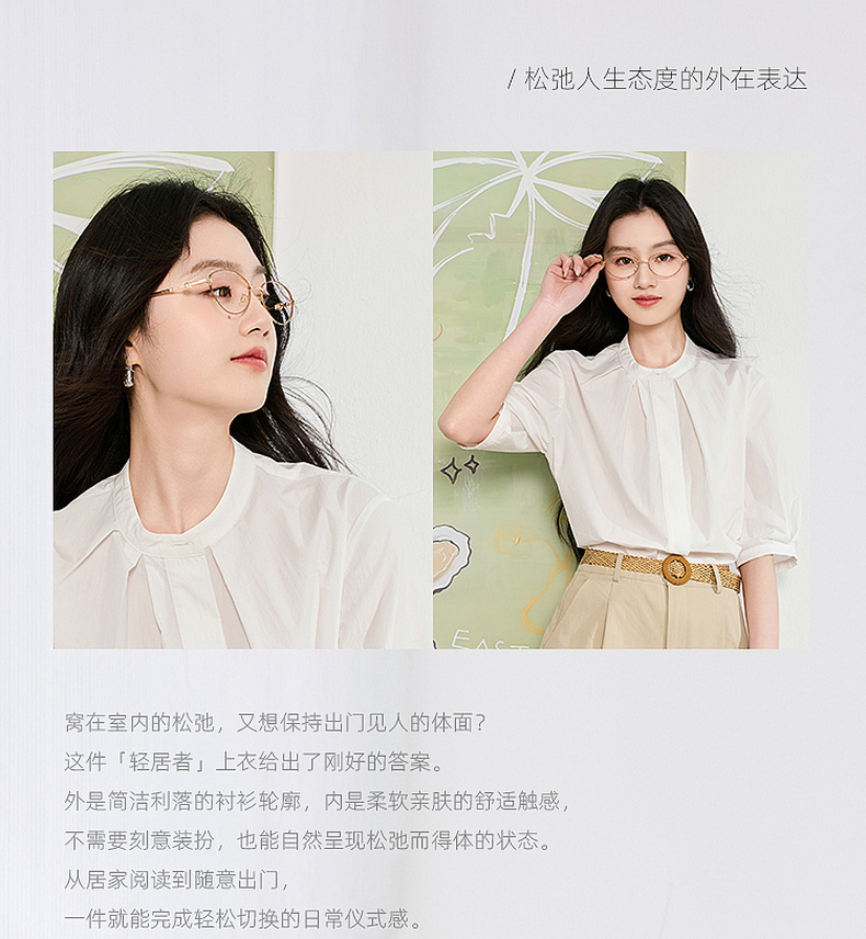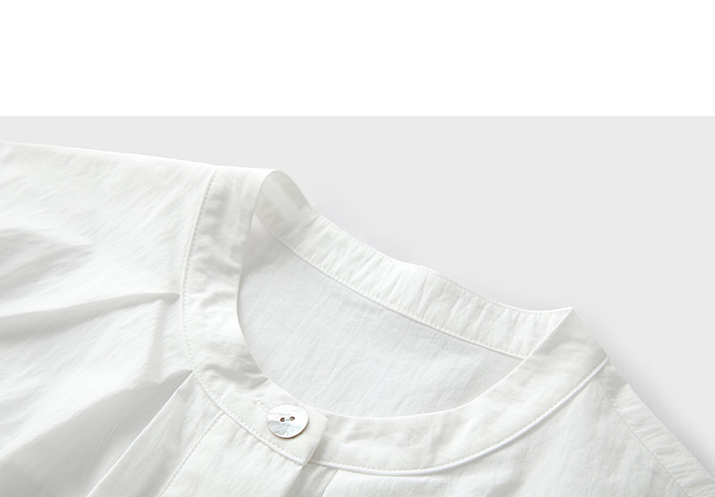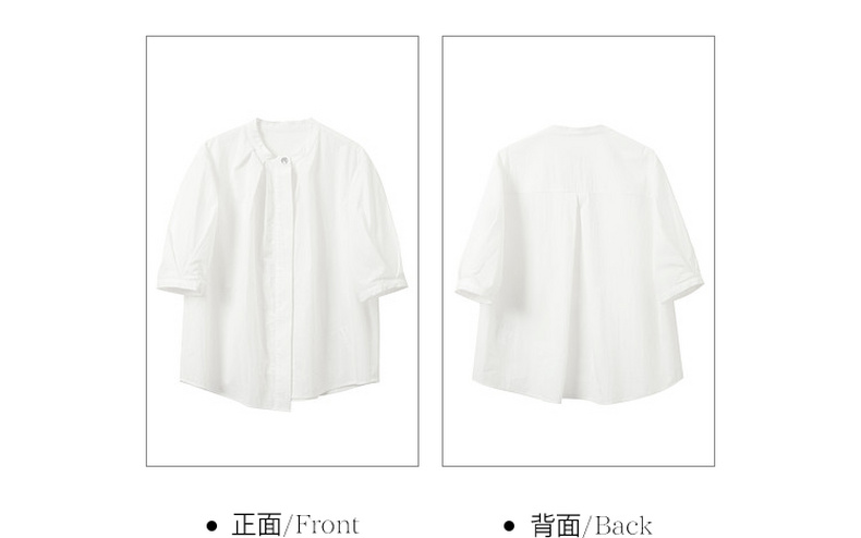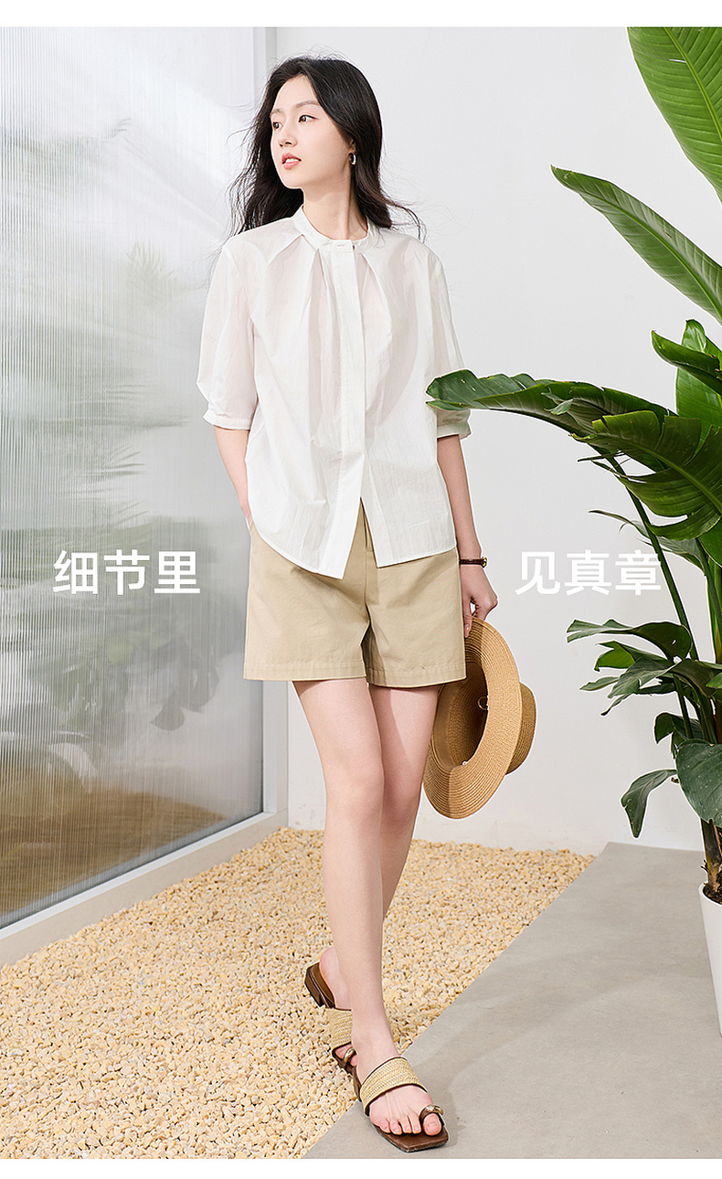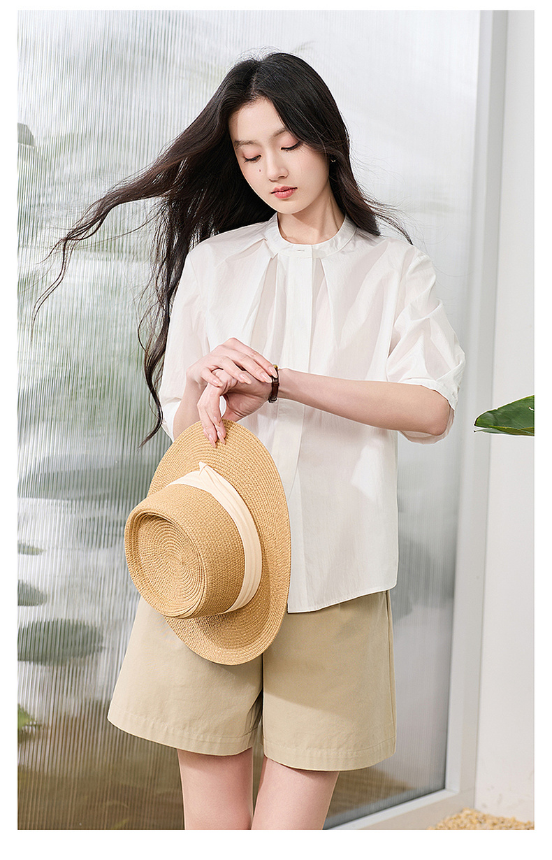 三彩2026夏季新款白衬衫宽松中袖立领衬衣上衣通勤气质简约S