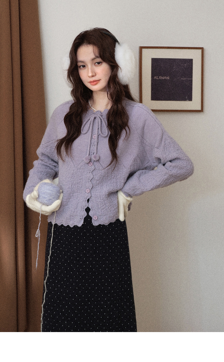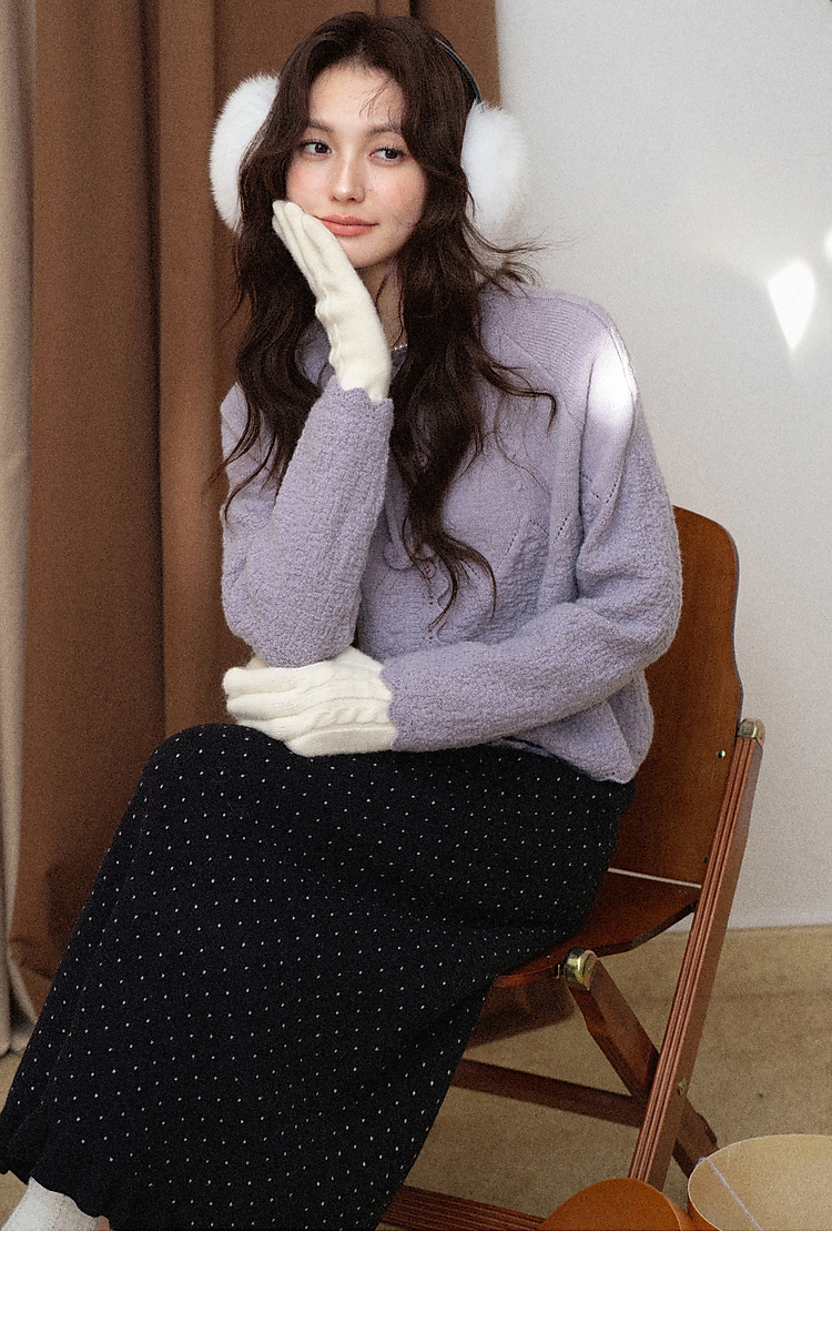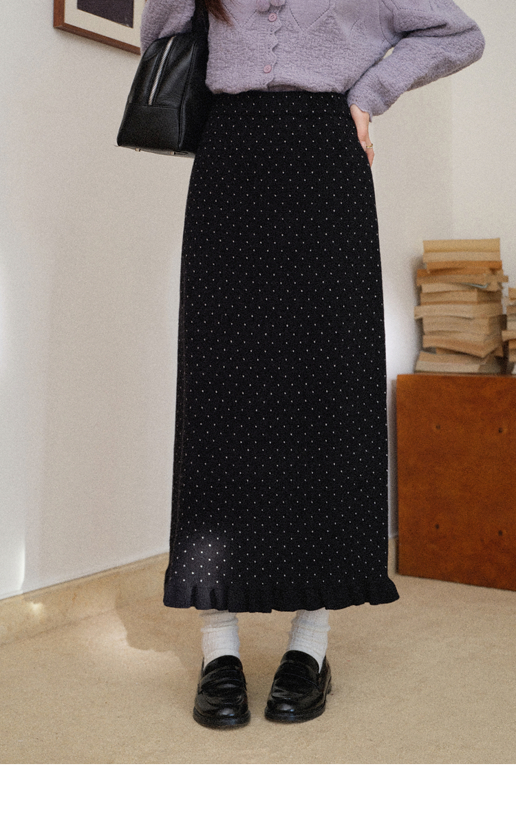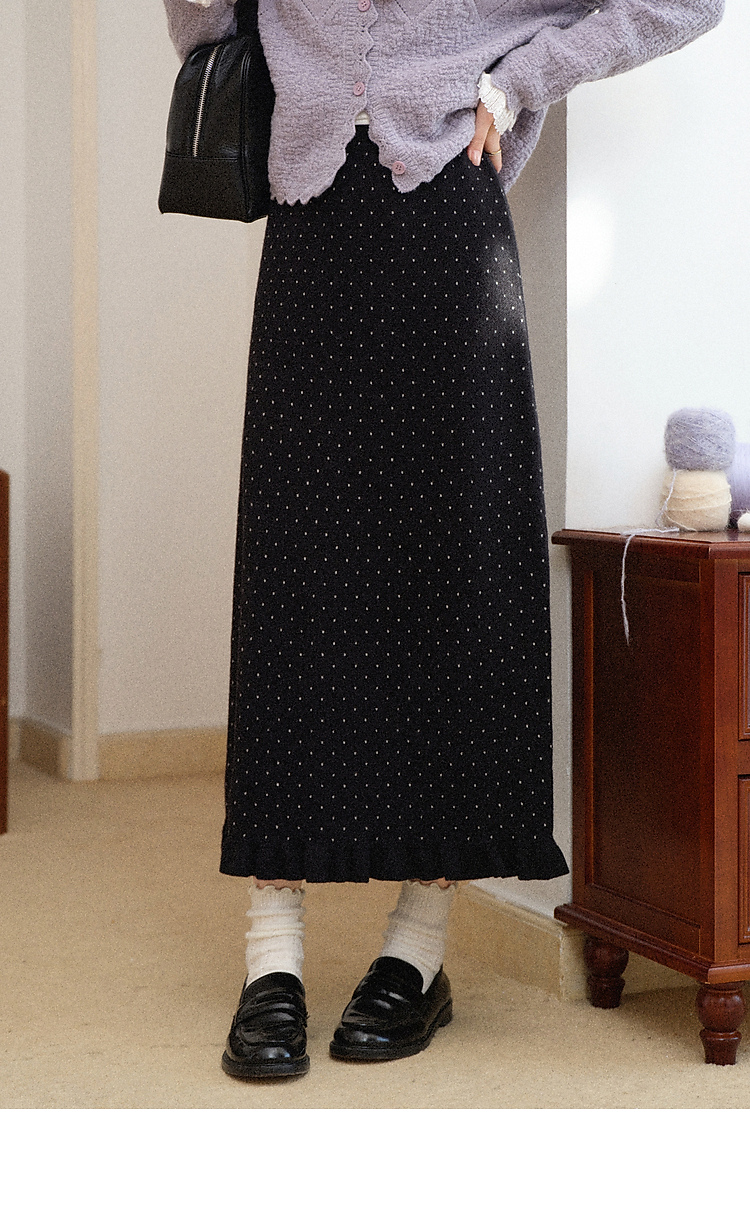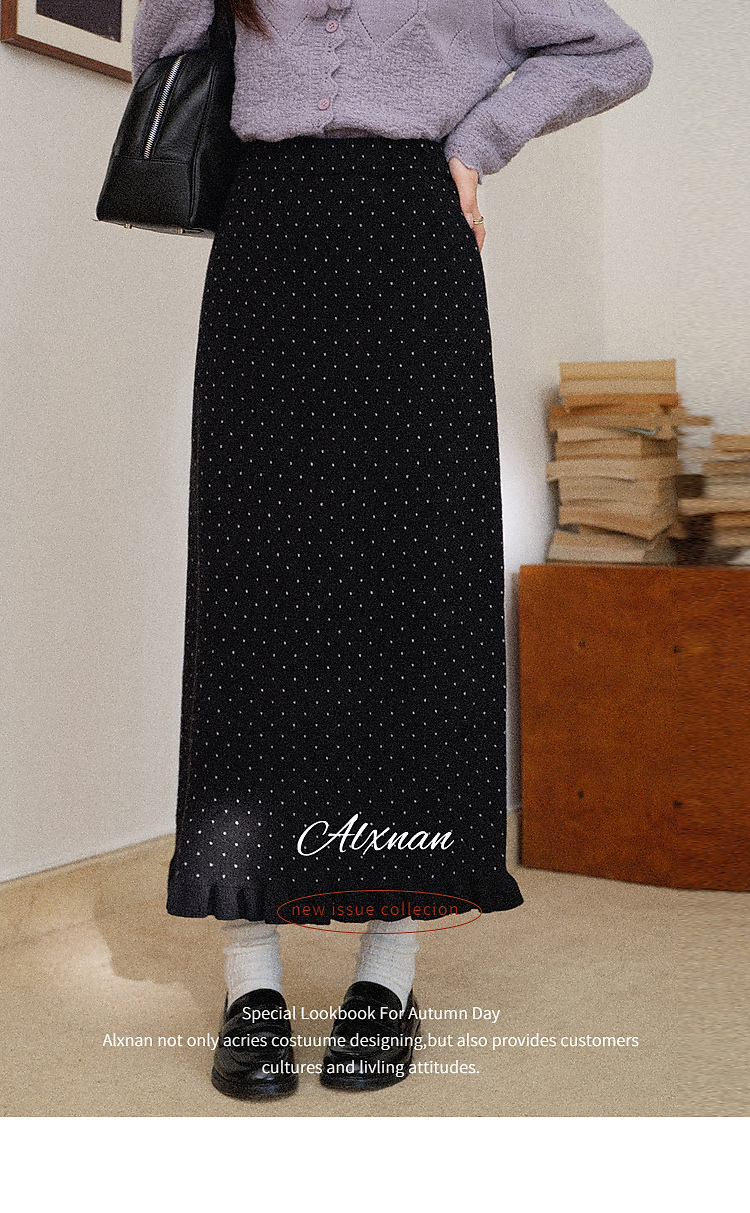 鹿向南「绻心织梦」法式黑色波点针织半身裙女秋冬显瘦A字中长裙