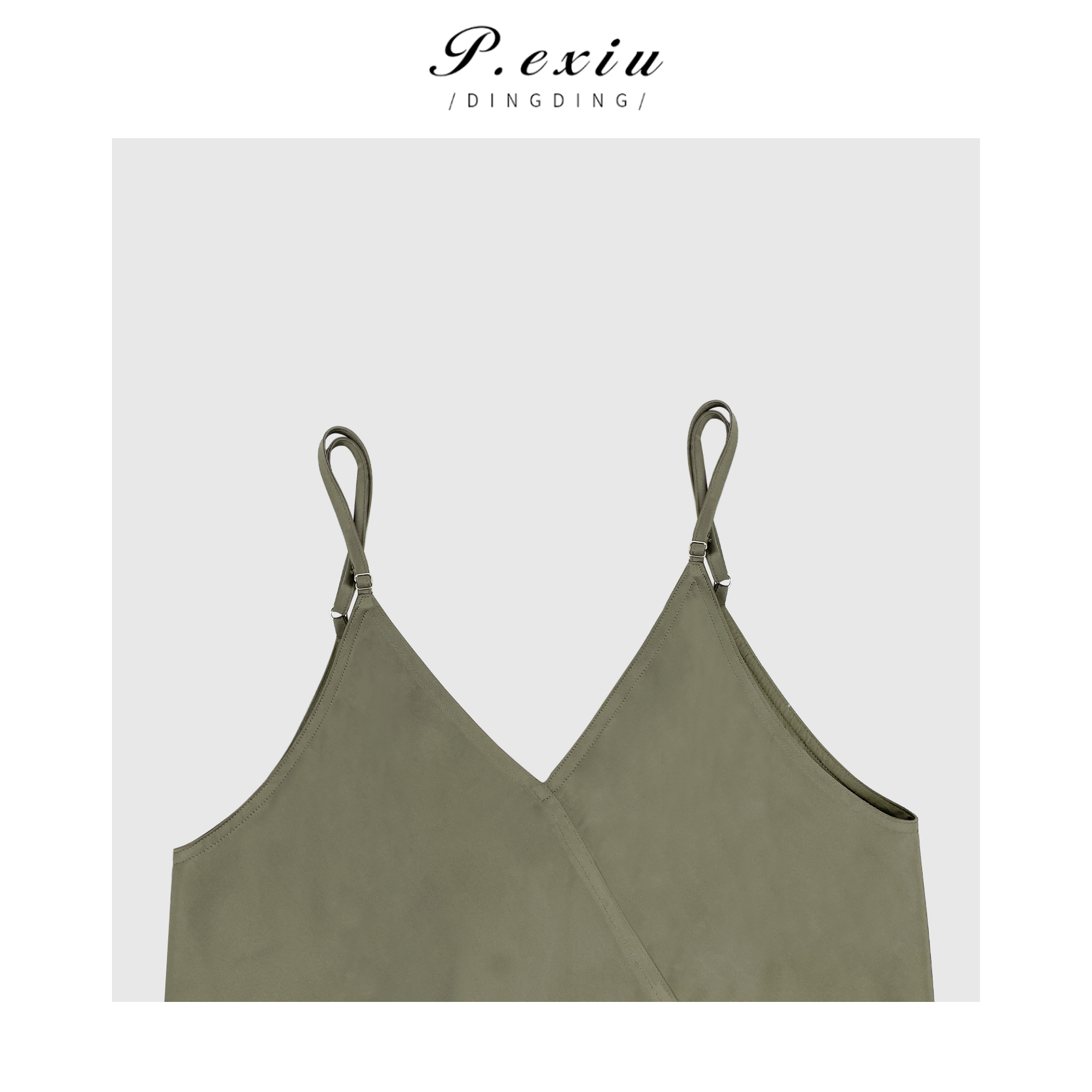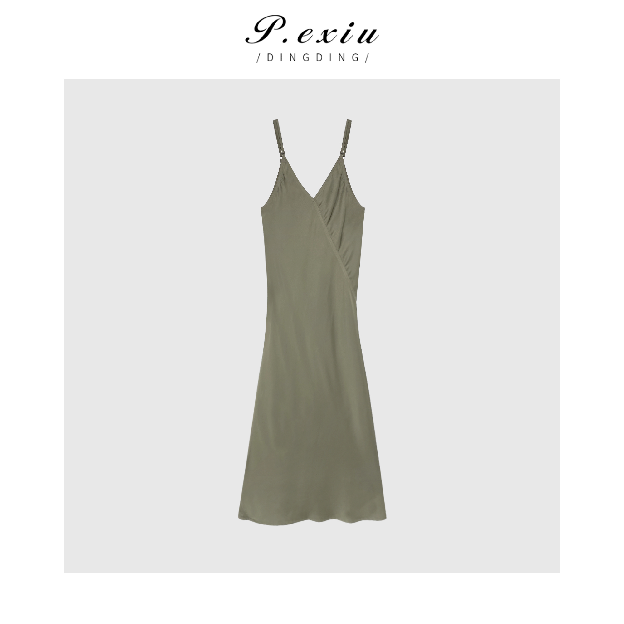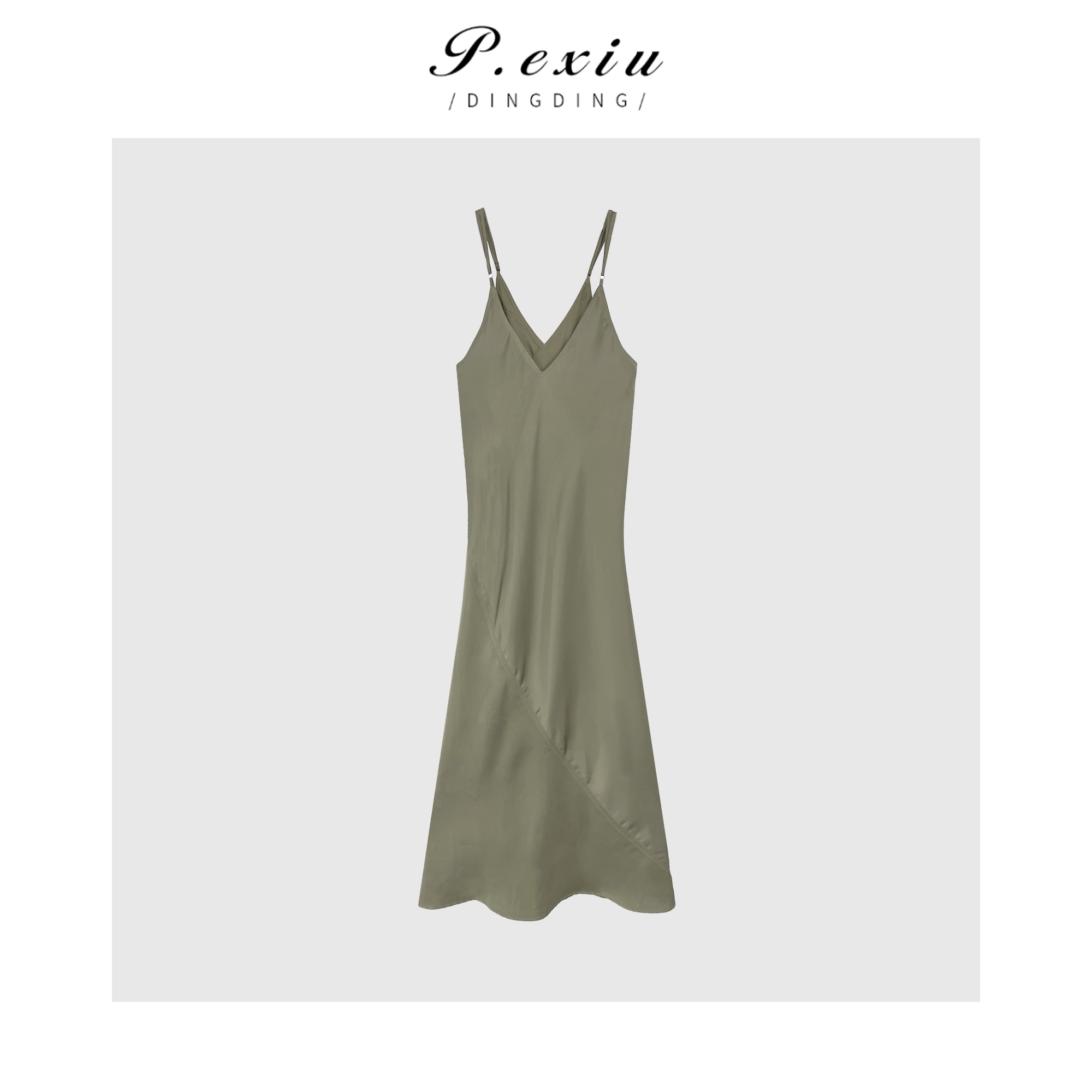 03-4潘依绣丁丁宠粉PanYiXiu/潘依绣【一见倾心】简约V领内搭吊带丝缎质感连衣裙 SH0918