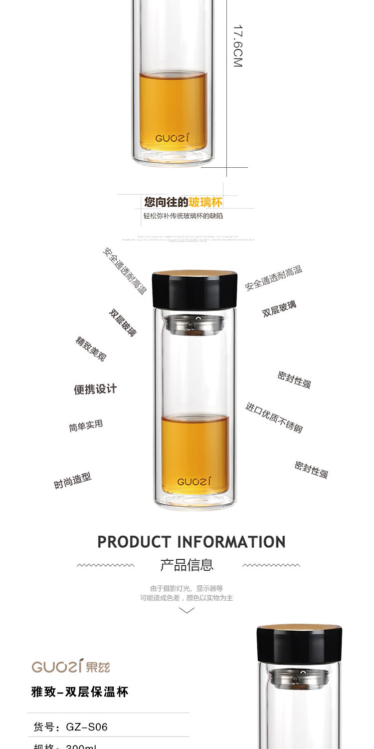 果兹(GUOZI)雅致双层玻璃杯300ml GZ-S06