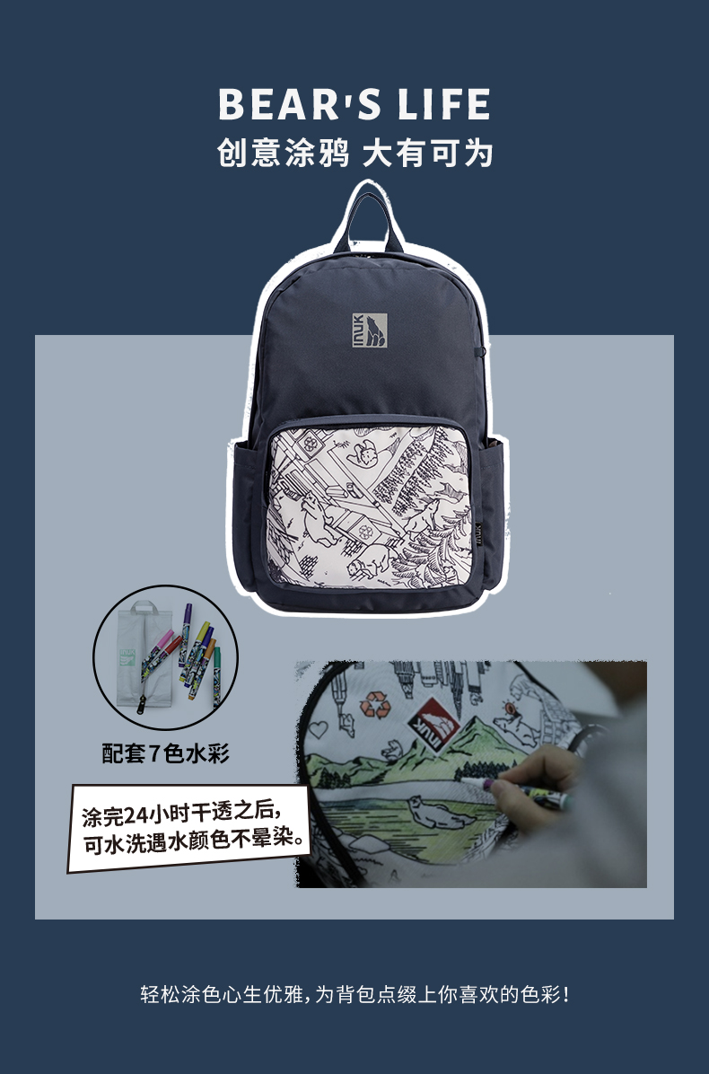 INUK新款百搭时尚潮流学生旅行大容量涂鸦书包双肩包电脑背包