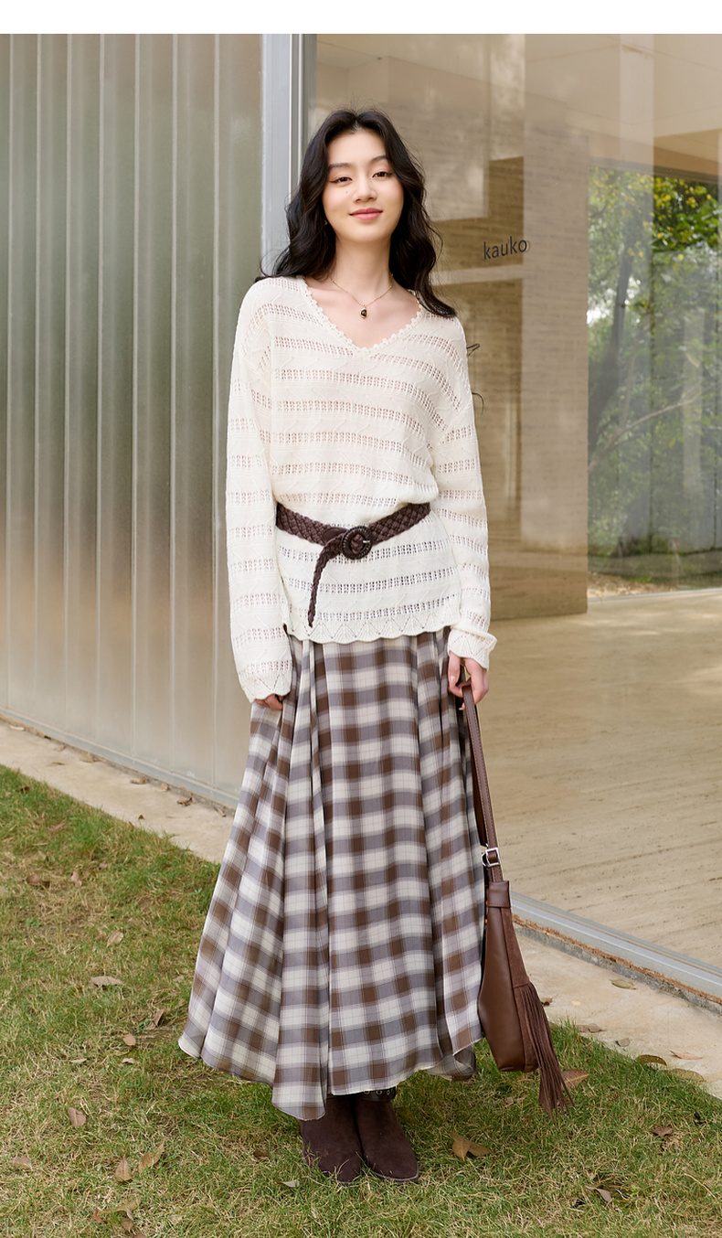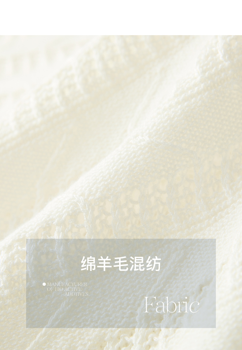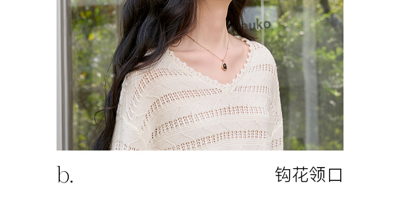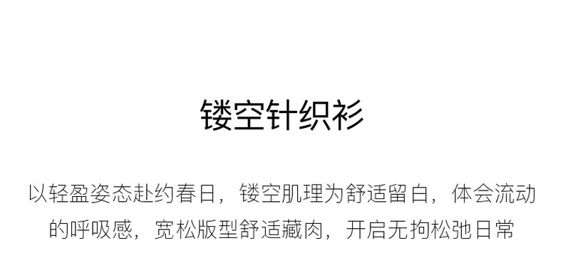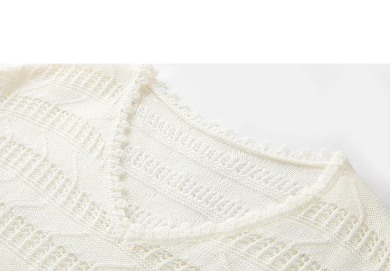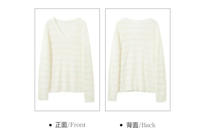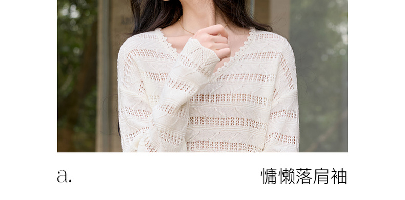 三彩2026春季新款镂空针织衫V领毛衫宽松落肩袖套头罩衫S
