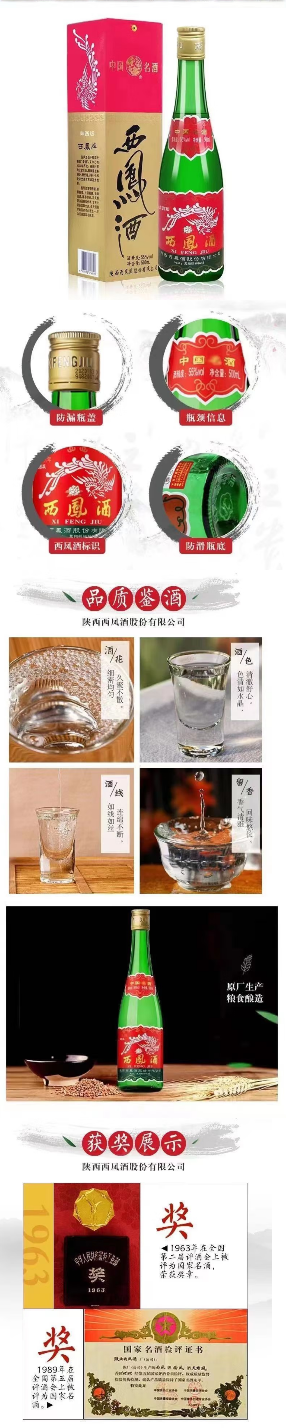 【单瓶52.1】西凤酒 高脖绿瓶陕西版 55度 凤香型 500ml*6 500ml*12整箱