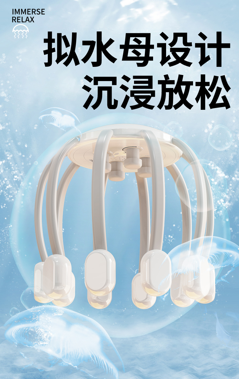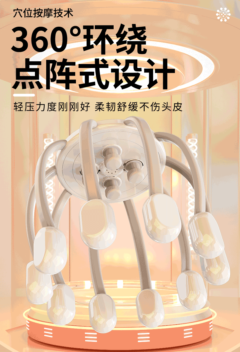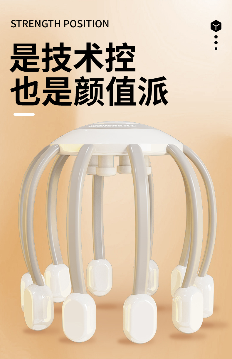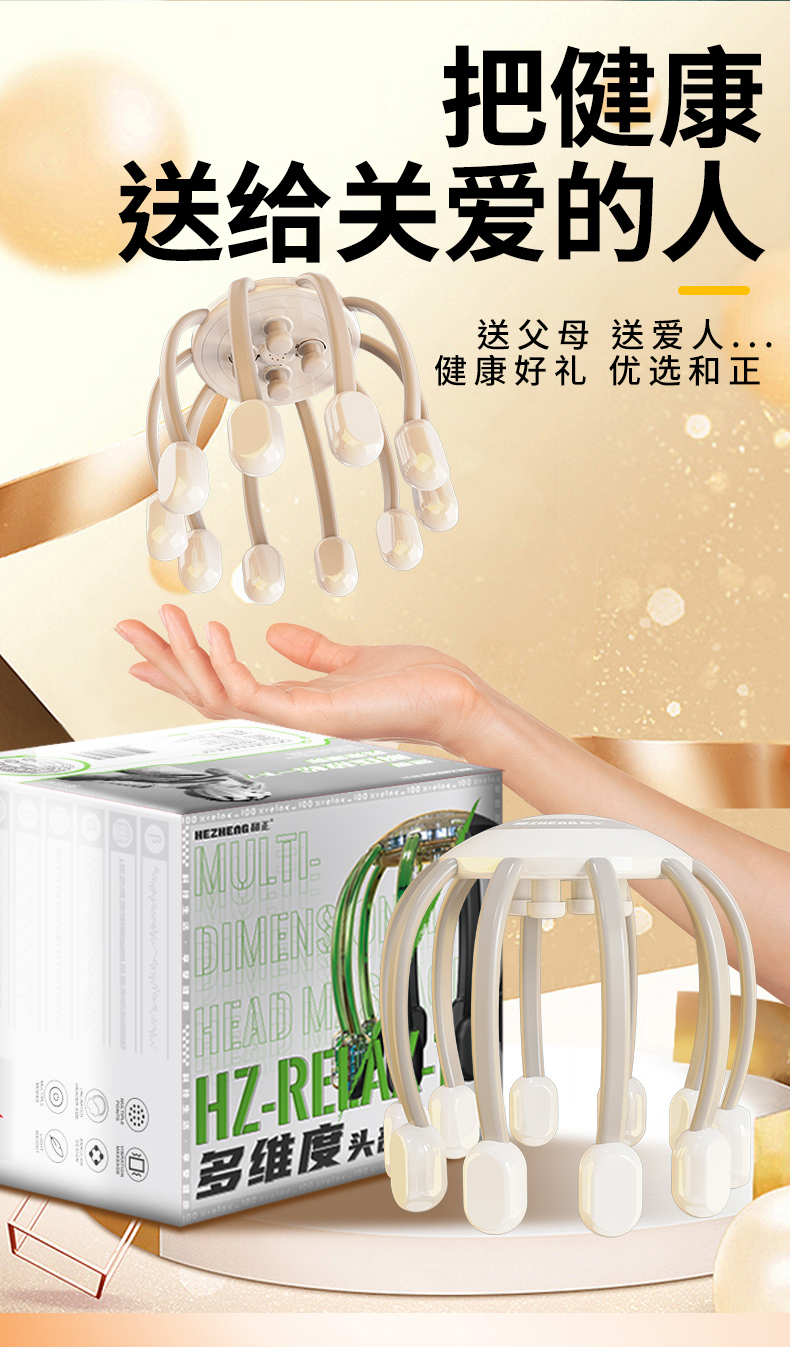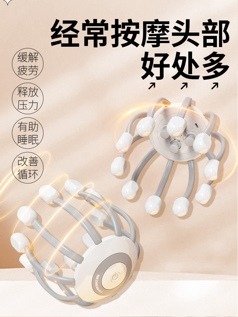 和正·头部按摩器八爪鱼头皮全自动经络疏通头疼电动指压按摩仪 至臻款14颗按摩头+5种模式+蓝牙+10档力度