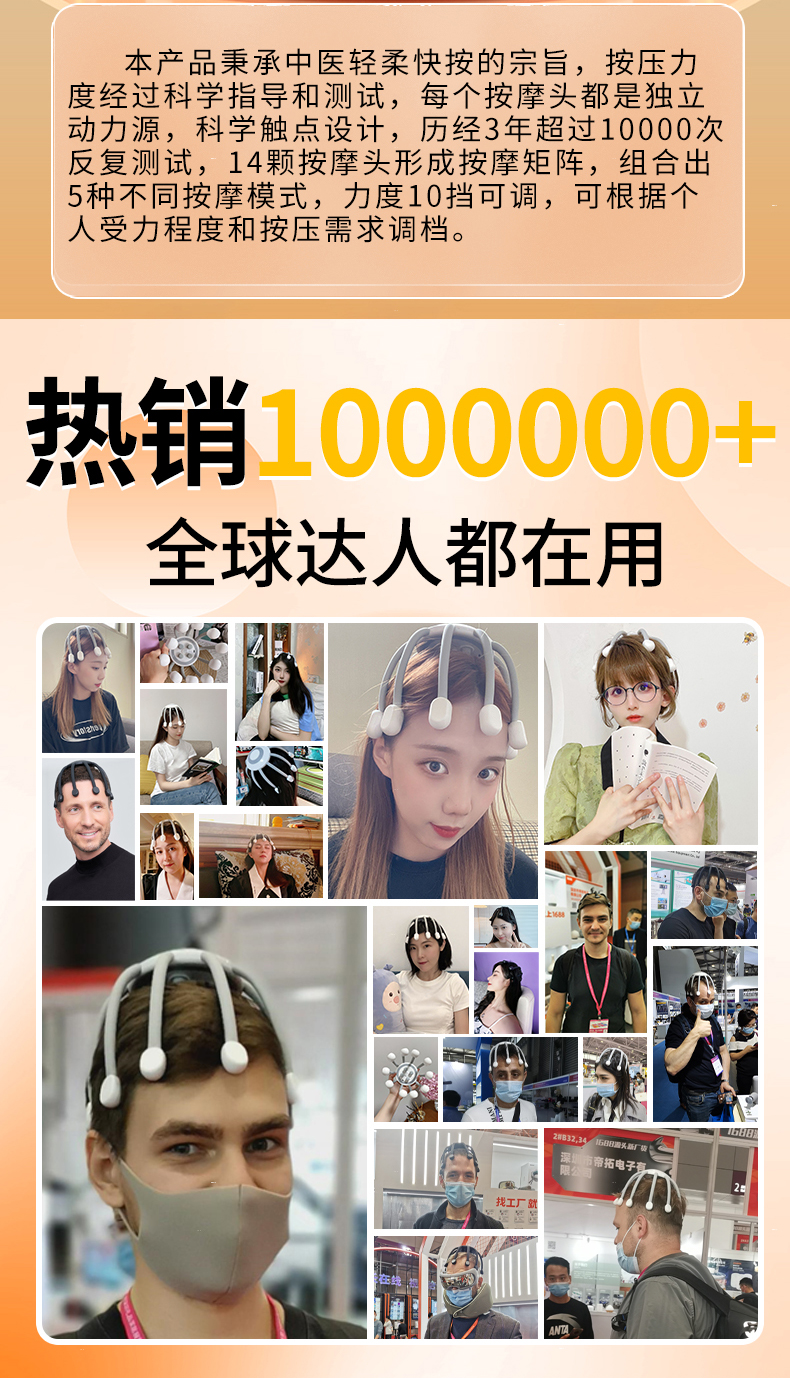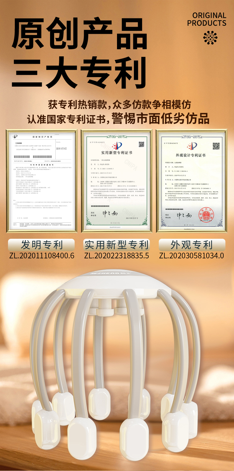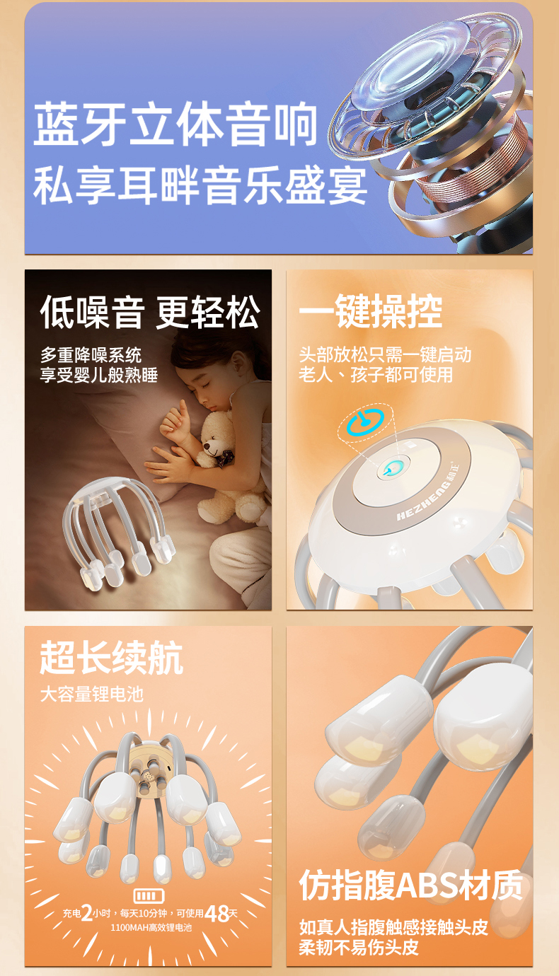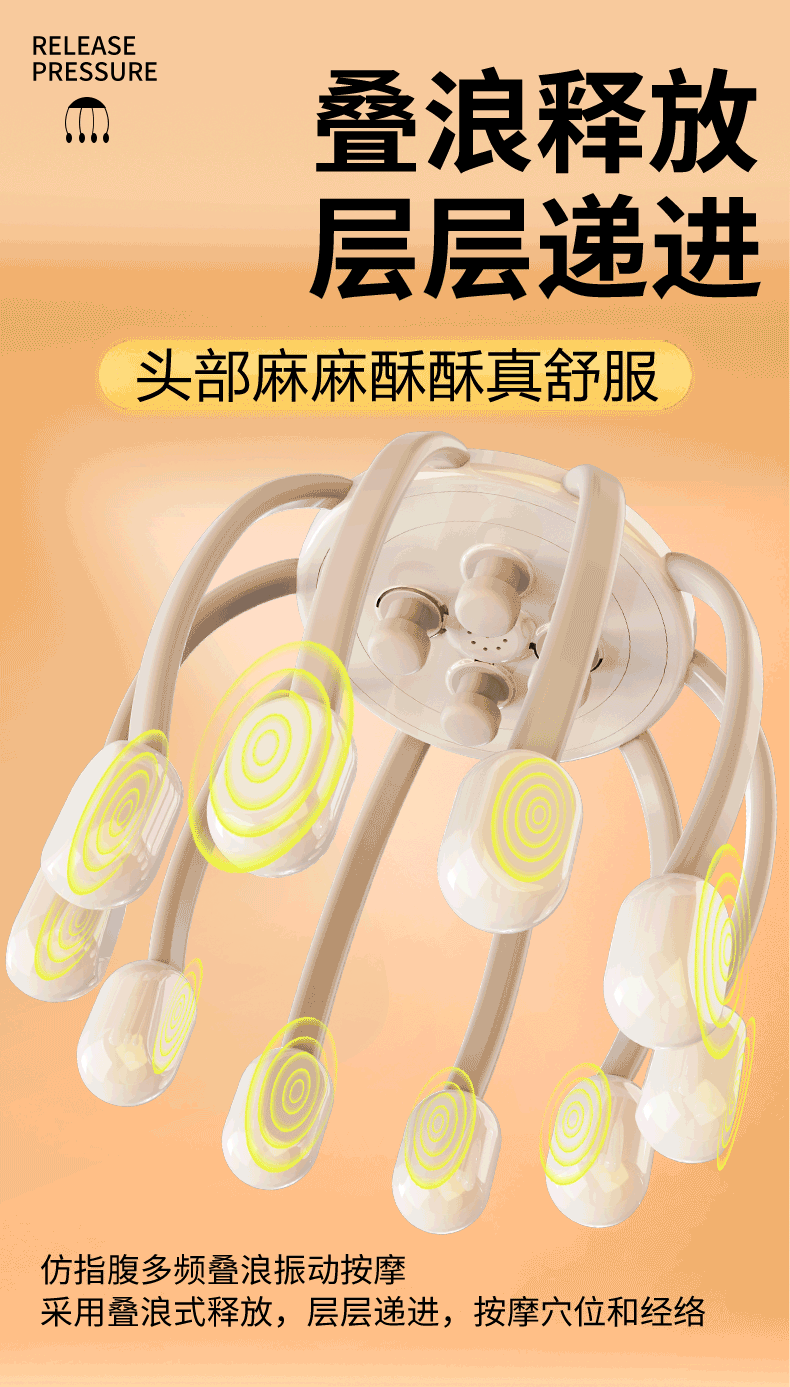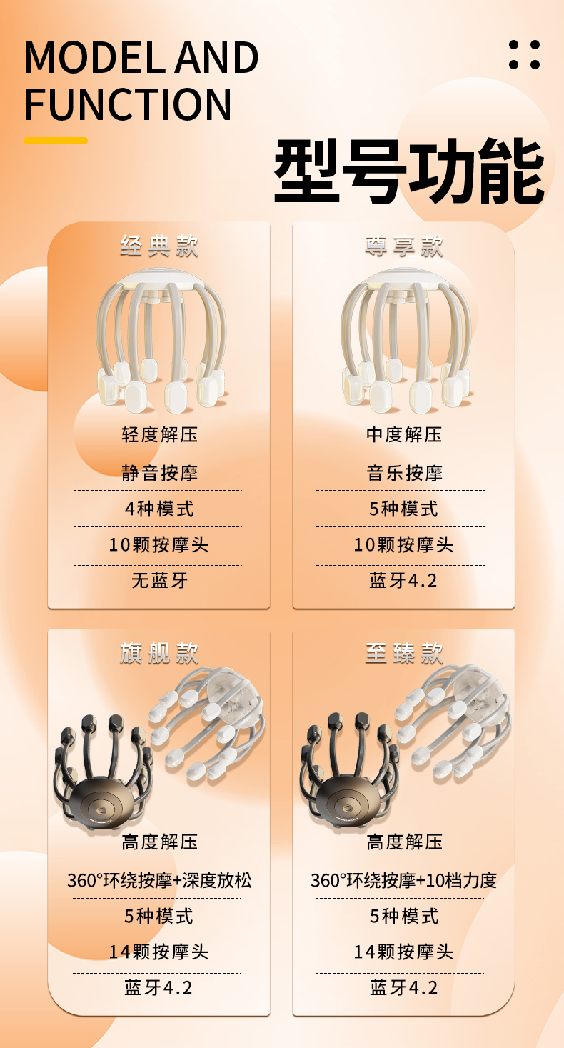 和正·头部按摩器八爪鱼头皮全自动经络疏通头疼电动指压按摩仪 至臻款14颗按摩头+5种模式+蓝牙+10档力度