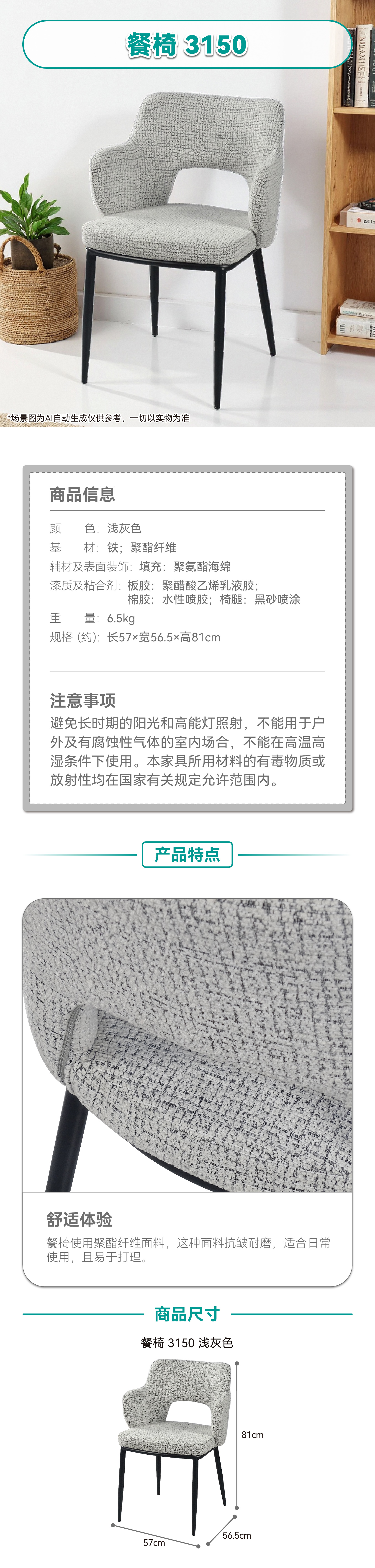 【家具】餐厅简约布艺餐椅休闲椅 3150