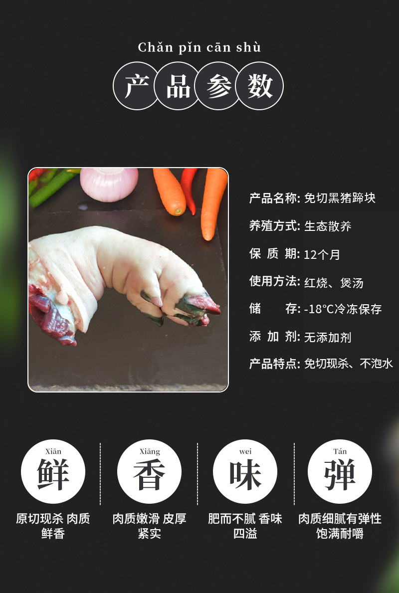 【锅汇食材】黑猪猪蹄块 免切生猪手1kg×2/包 带筋猪爪 农家土猪肉生猪肉猪脚