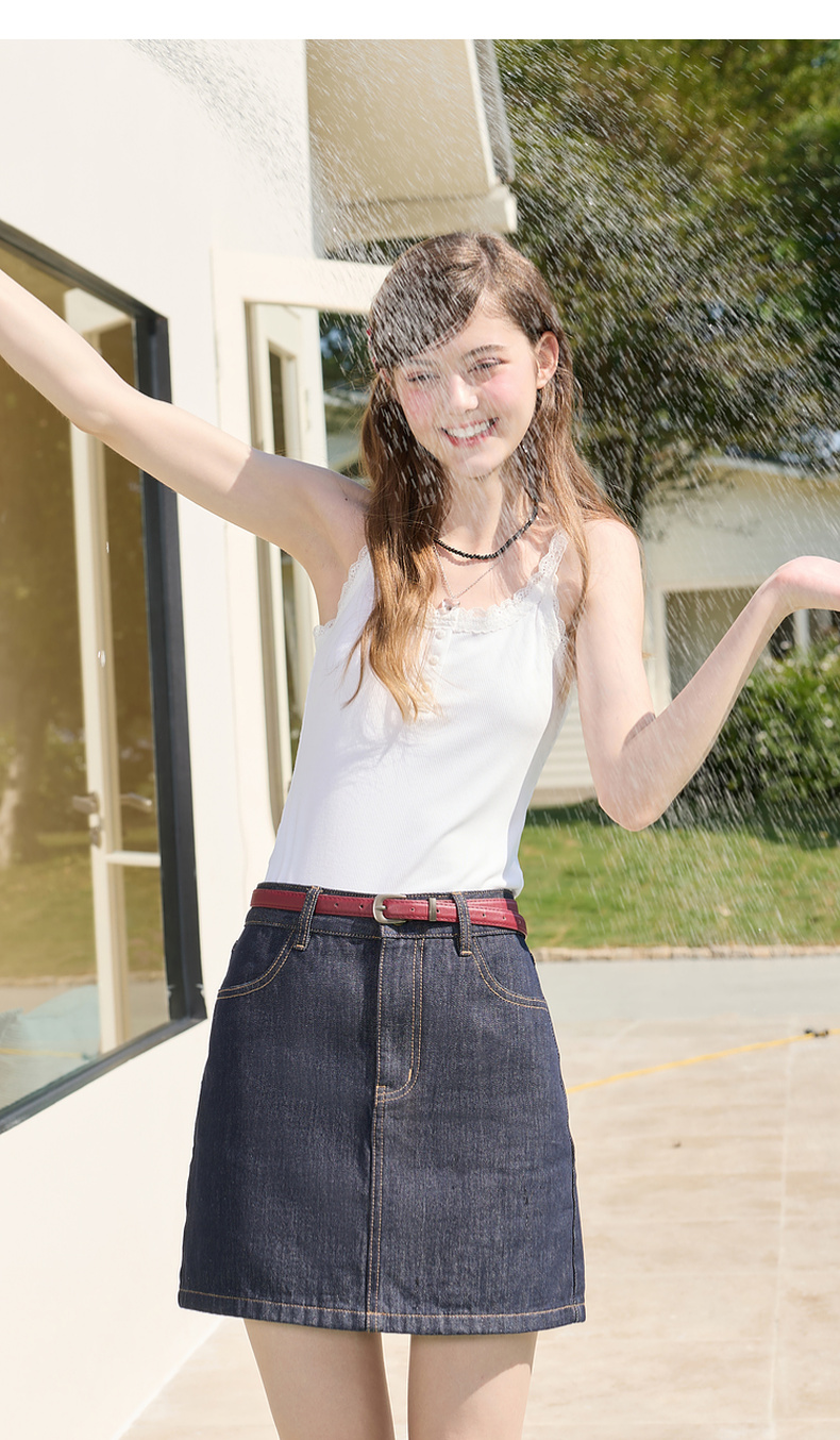 三彩独醒2026春季新款牛仔半身裙高腰A字裙短裙显瘦F