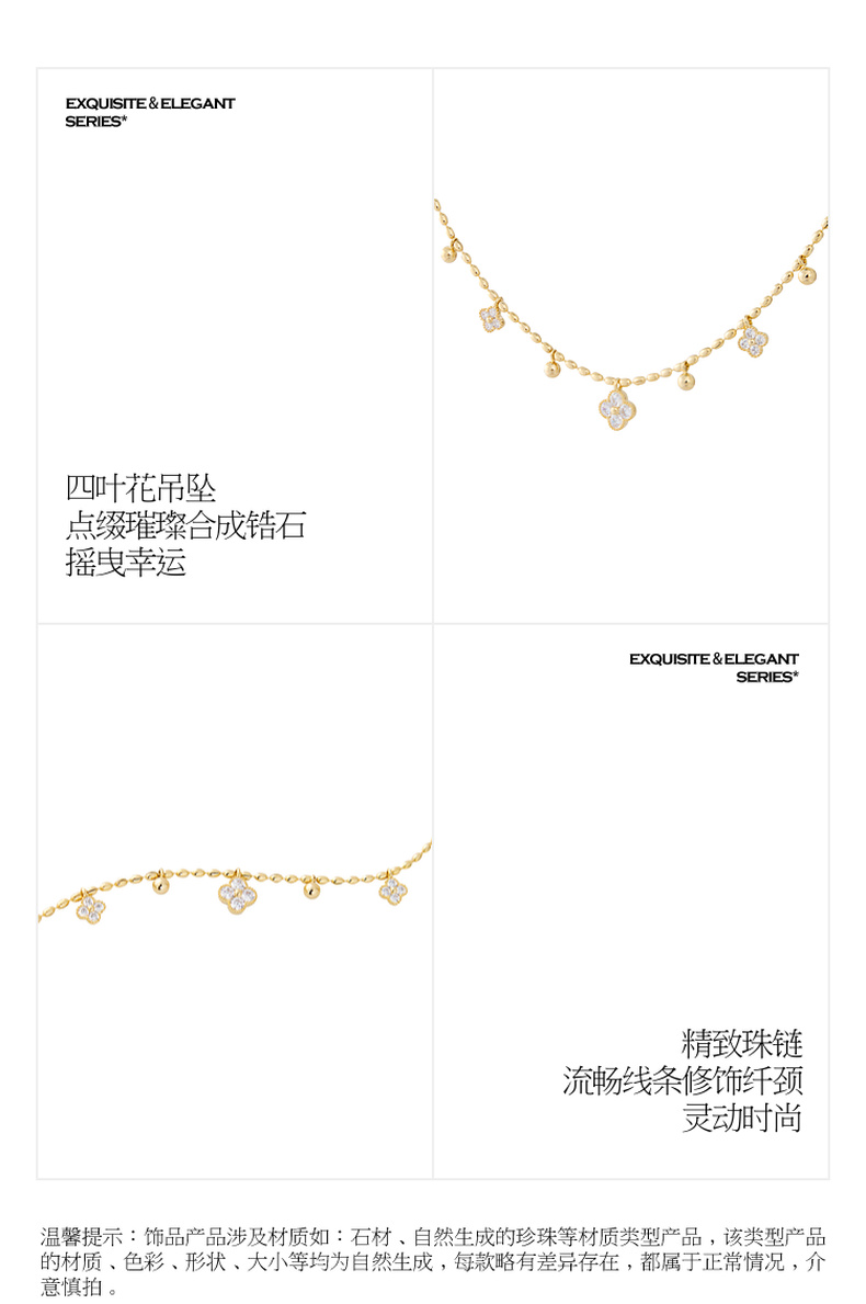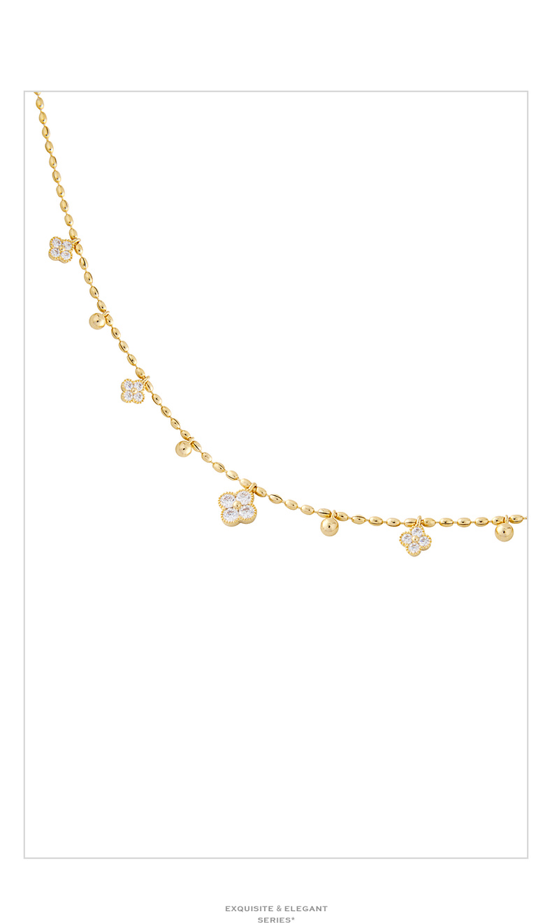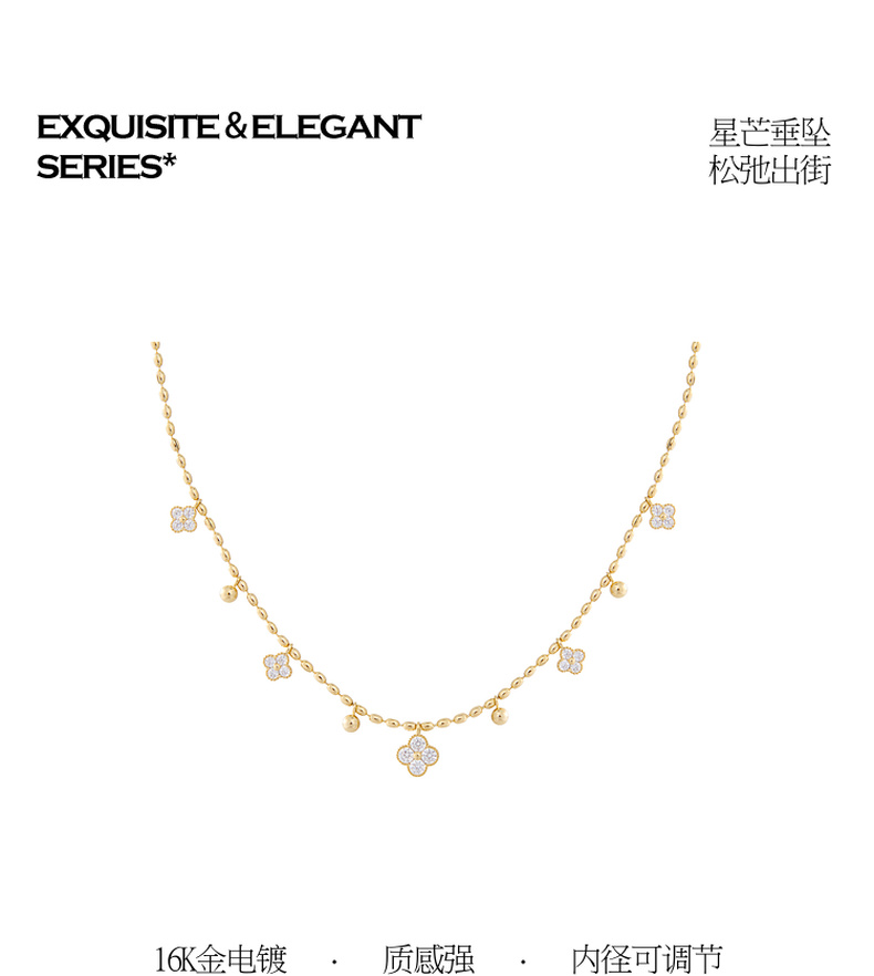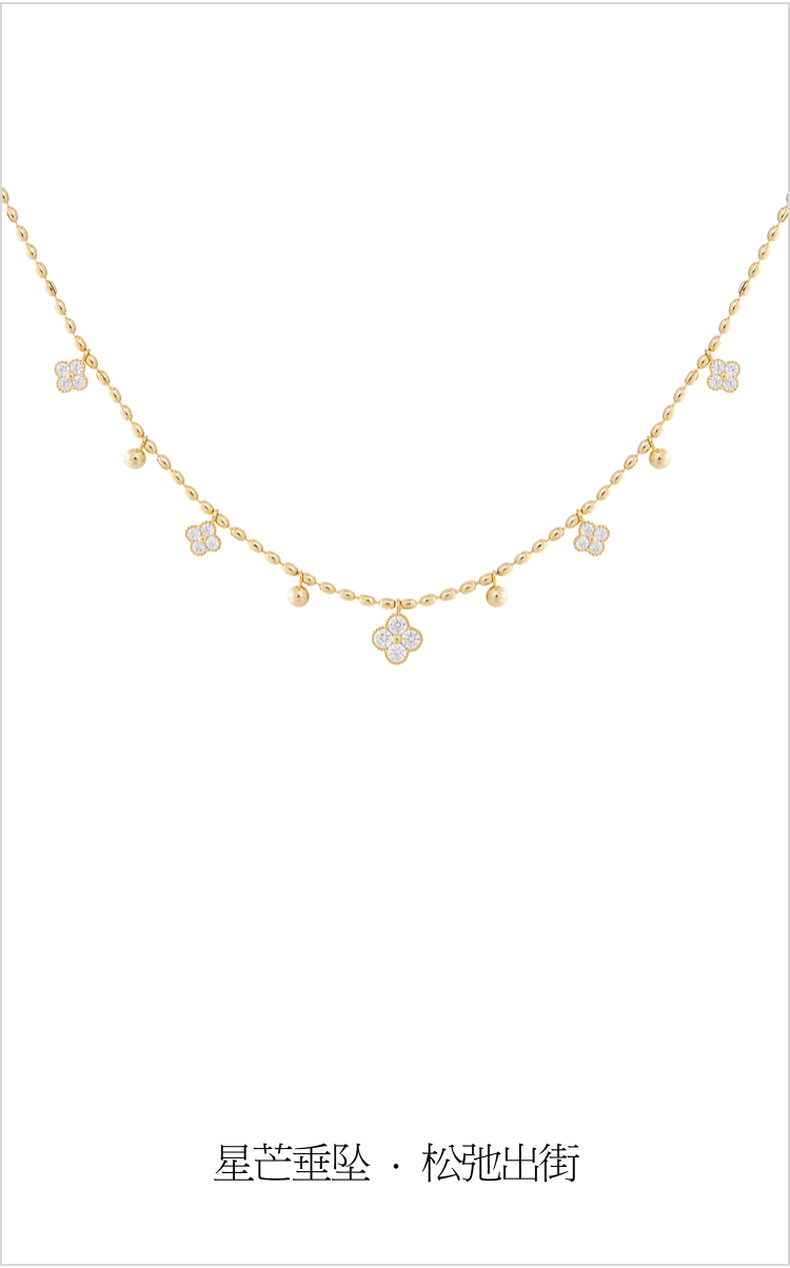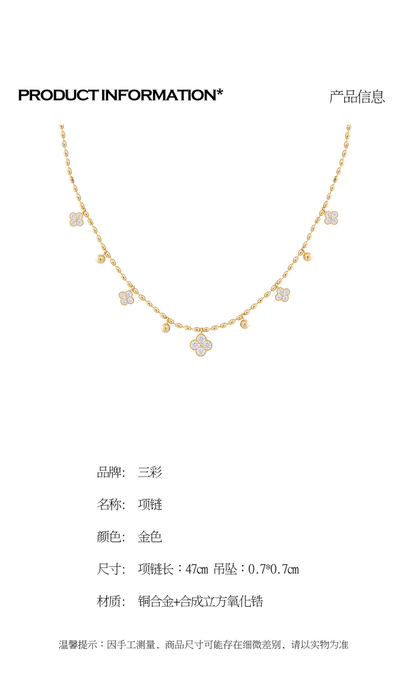 三彩2026新款四叶花吊坠满天星项链轻奢锆石法式复古灵动锁骨链女