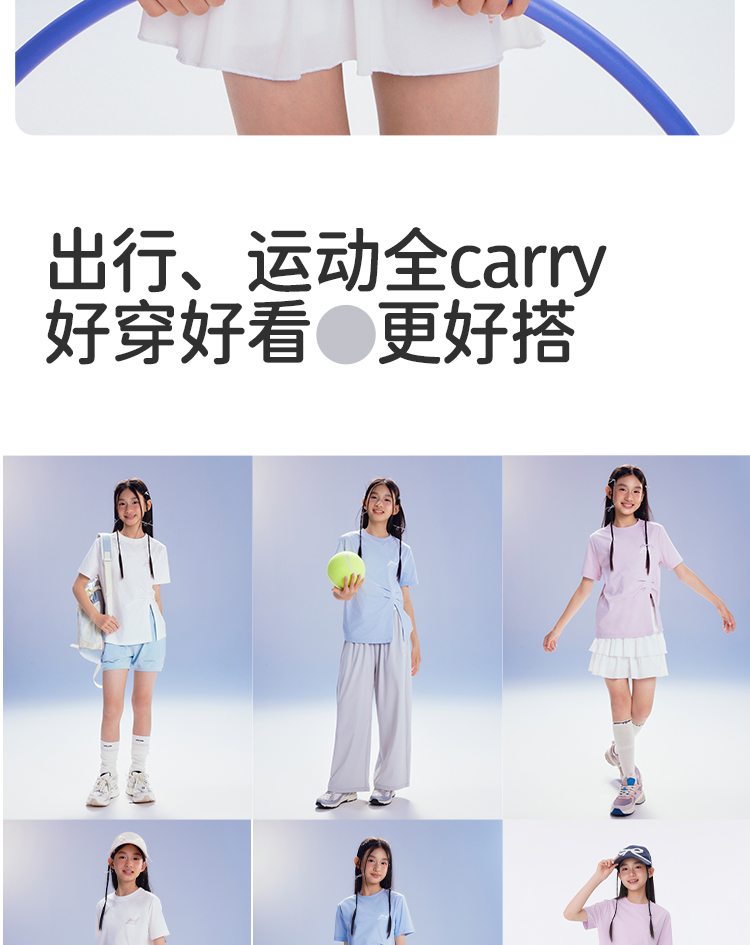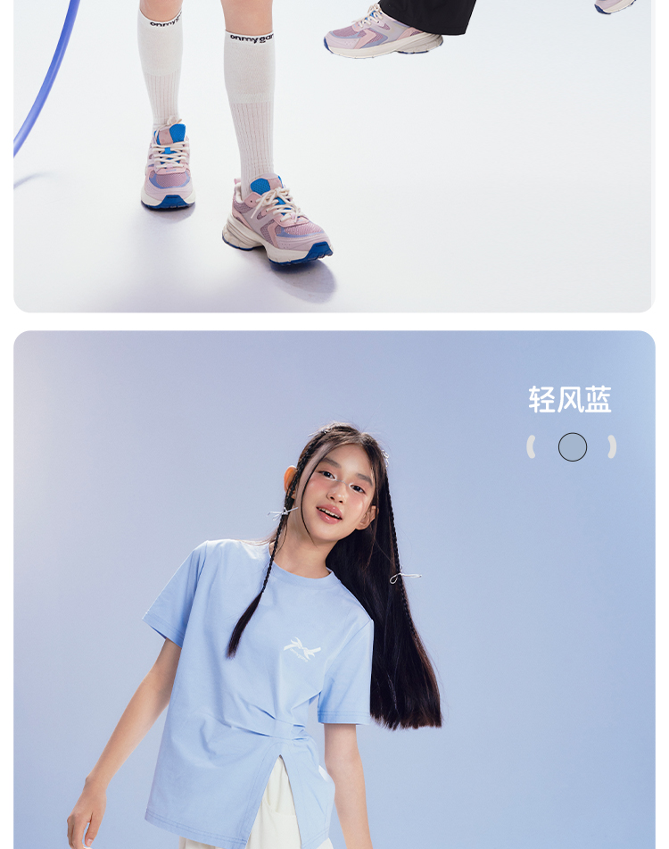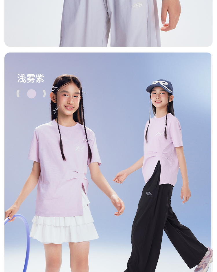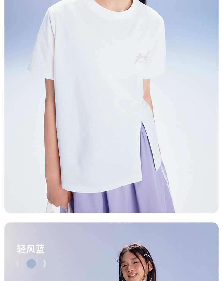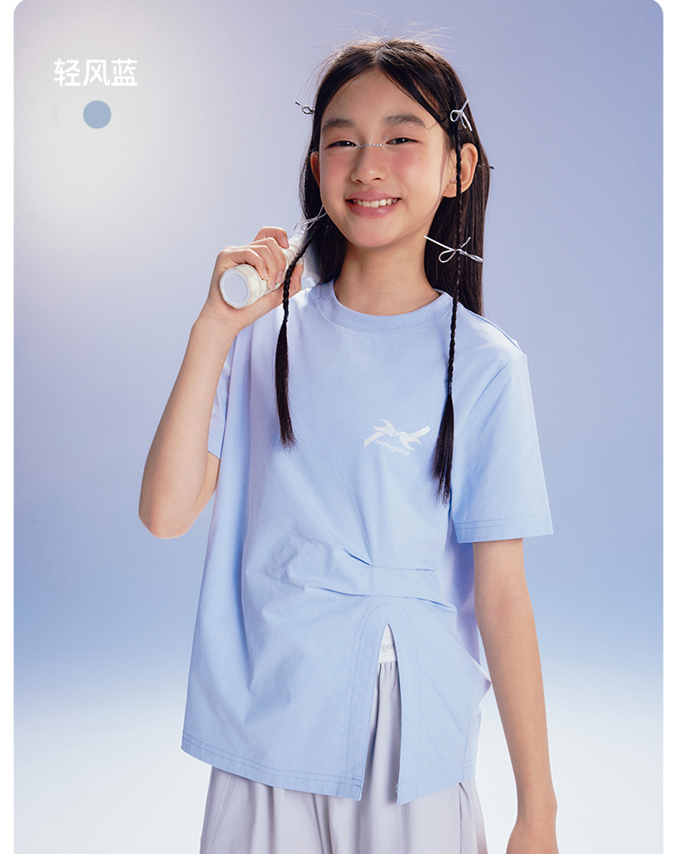 onmygame【轻舞风琴】女童短袖t恤儿童百褶运动上衣夏季2024新款
