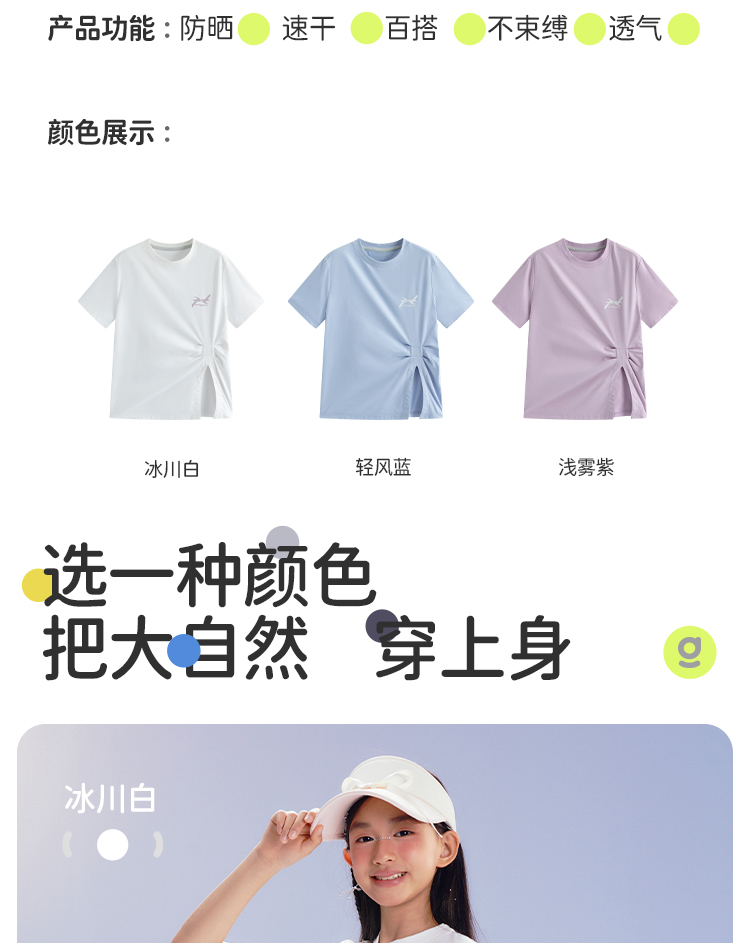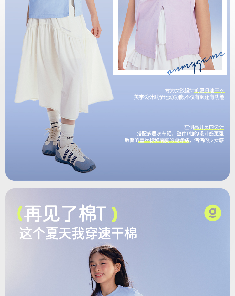 onmygame【夏日风铃】女童防晒凉感T恤儿童速干短袖2025年夏季