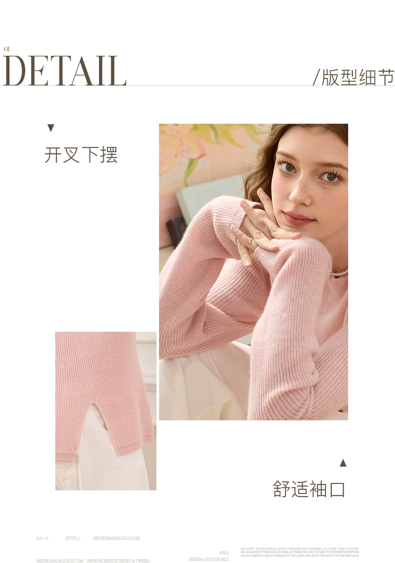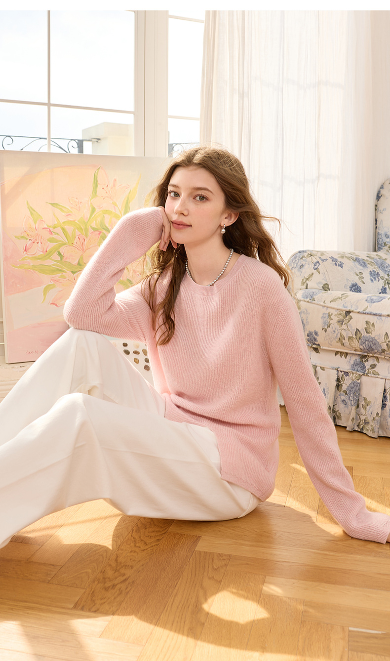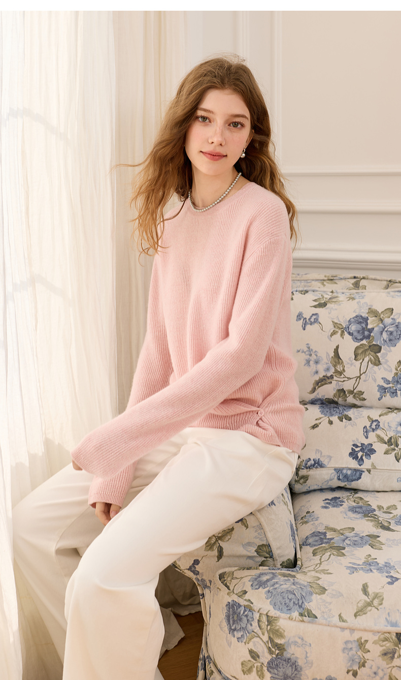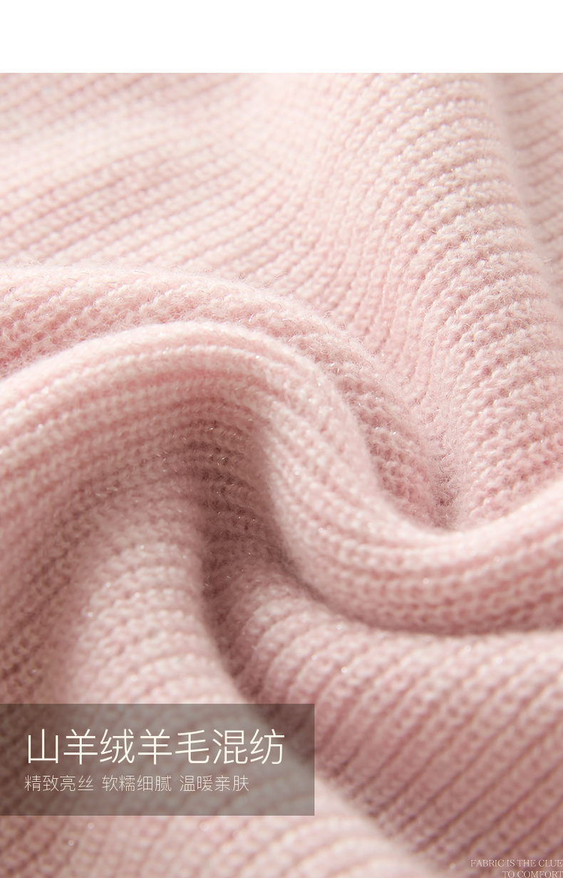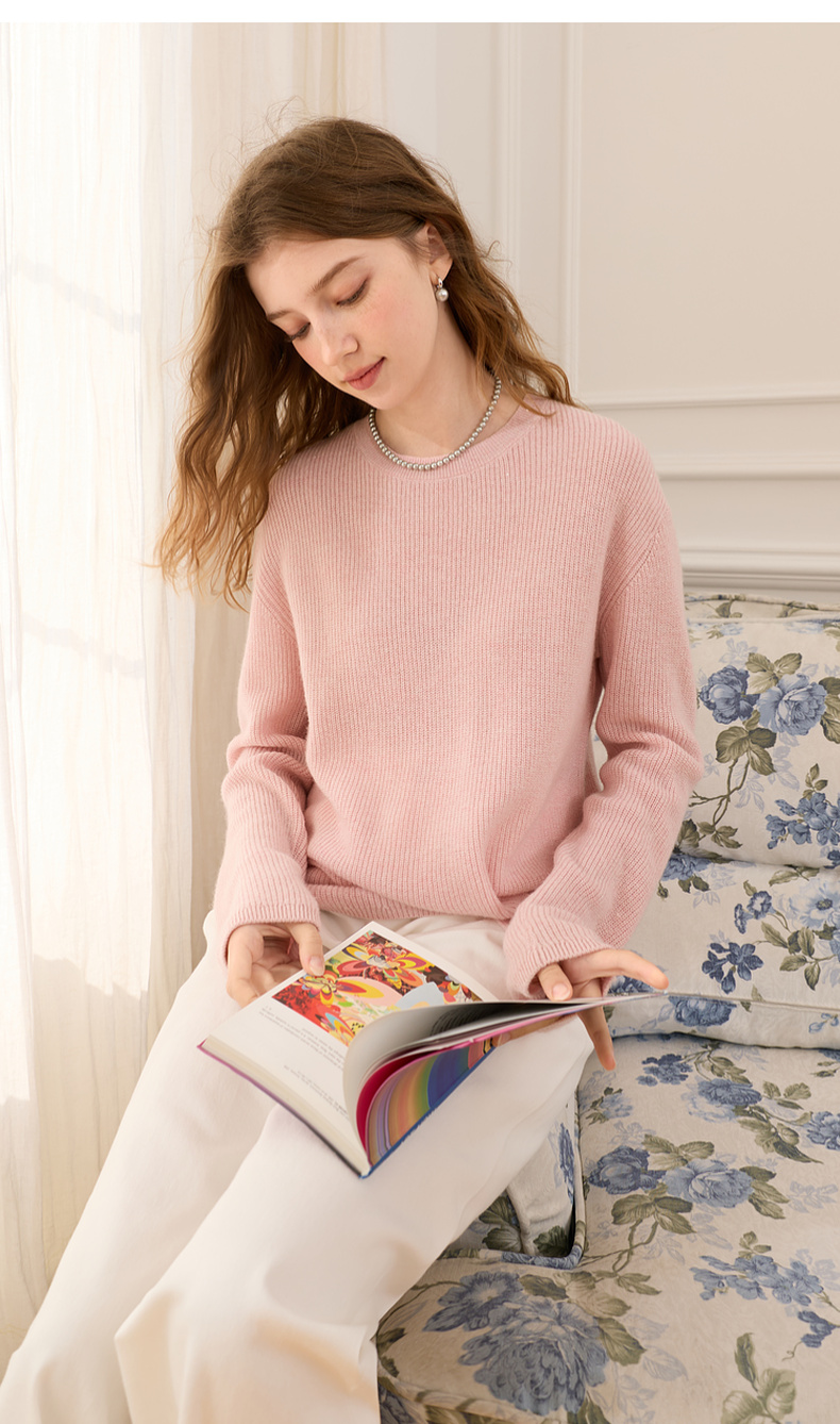 三彩2025冬季新款针织衫绵羊毛圆领落肩袖宽松毛衫套头M