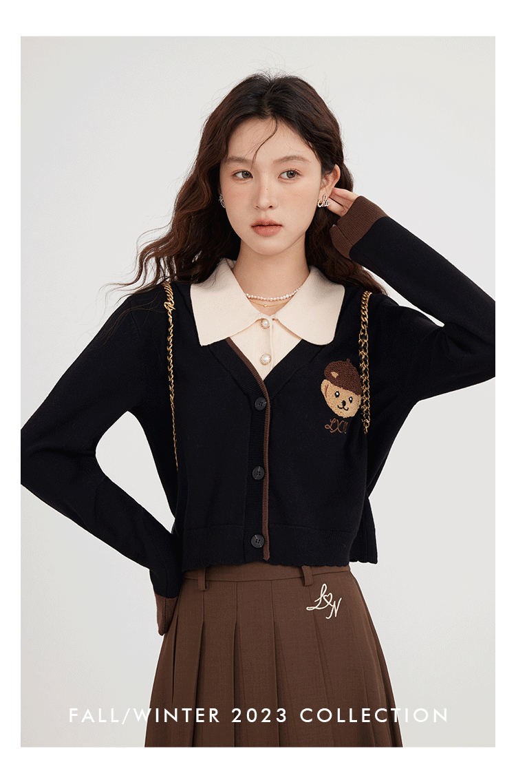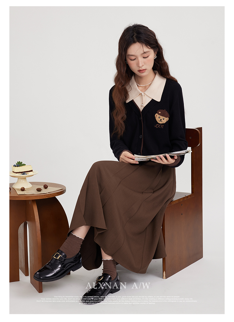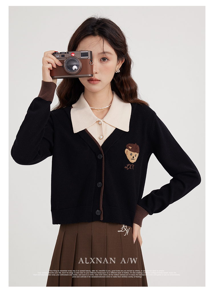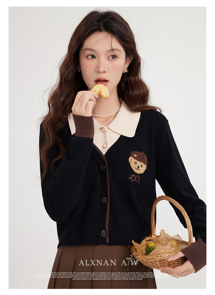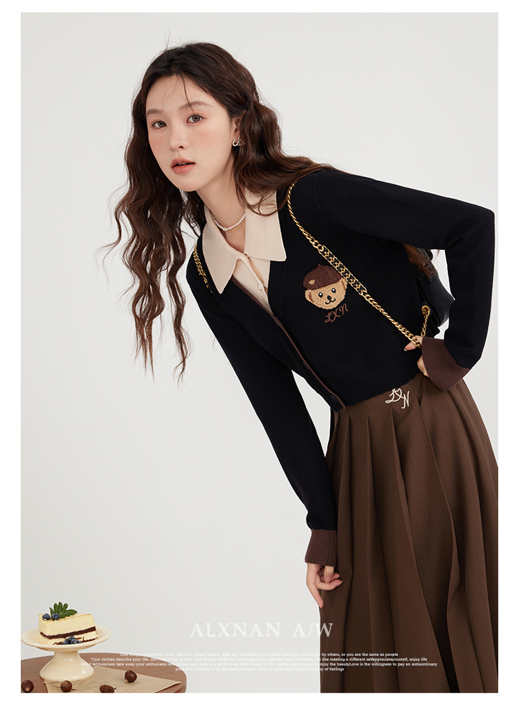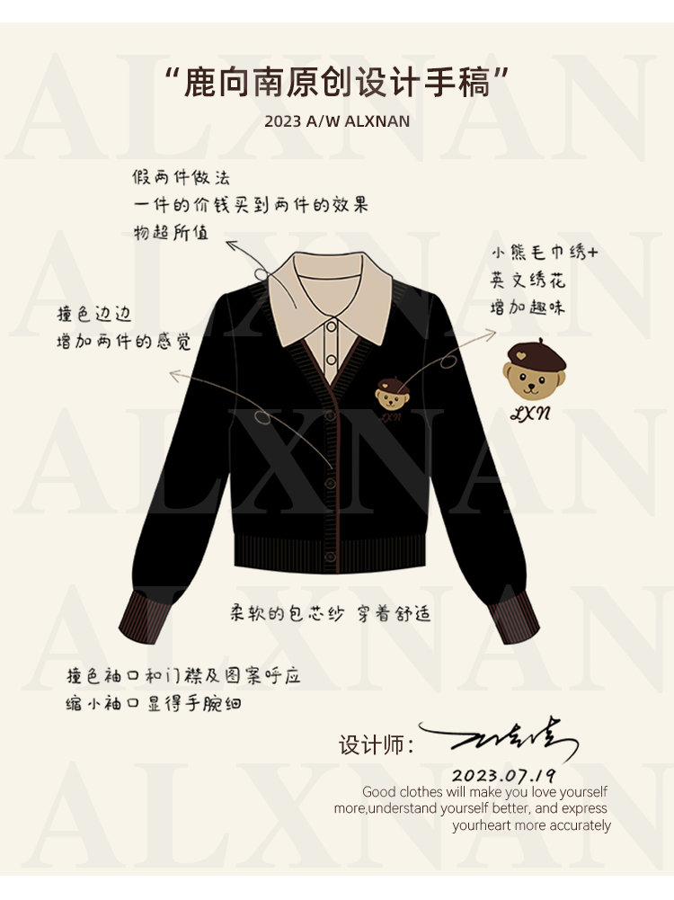 鹿向南「探险日记」假两件翻领毛衣2025新款秋冬季气质时尚女上衣LXN31701