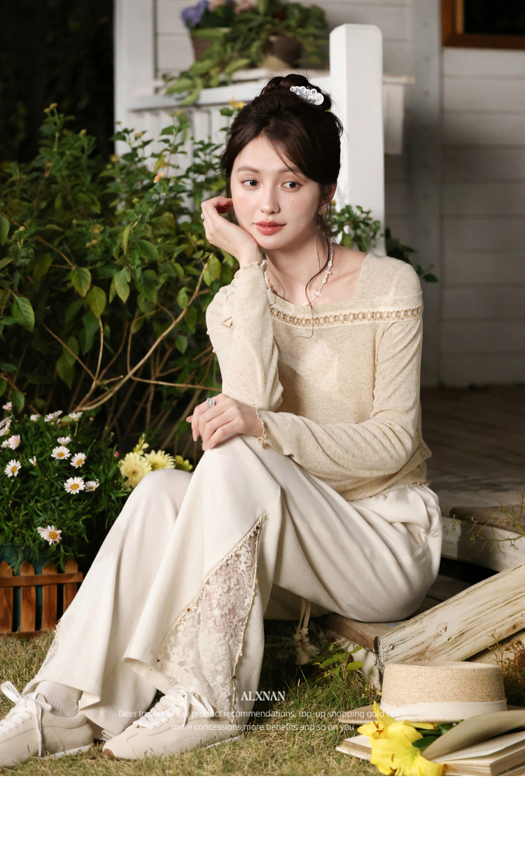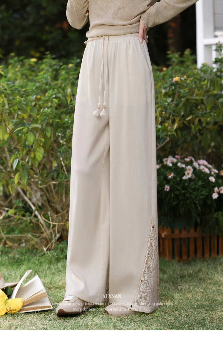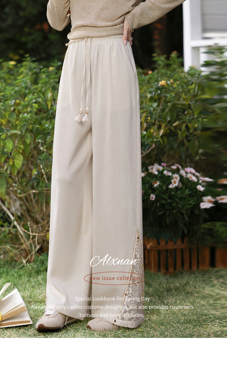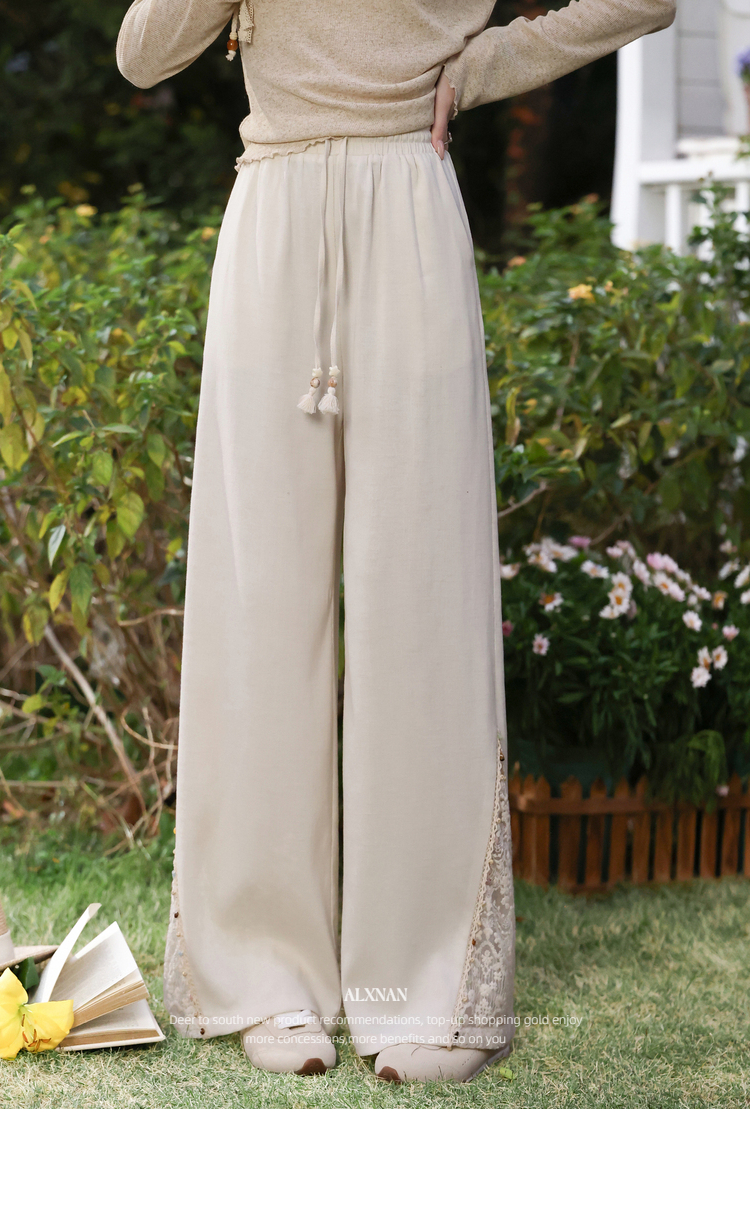 鹿向南「砾沙祝白」杏色宽松阔腿休闲裤女春季高腰设计感长款裤子