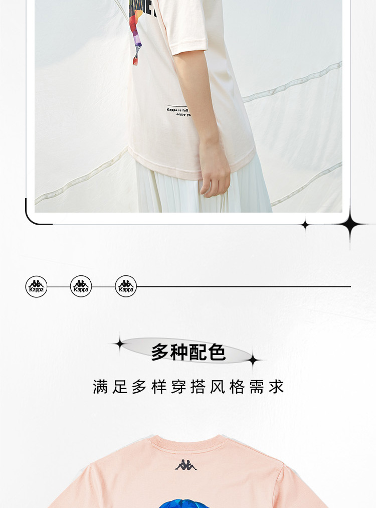 kappa卡帕现实悦镜主题短袖夏男女T恤运动休闲图案衫K0CX2TD26D