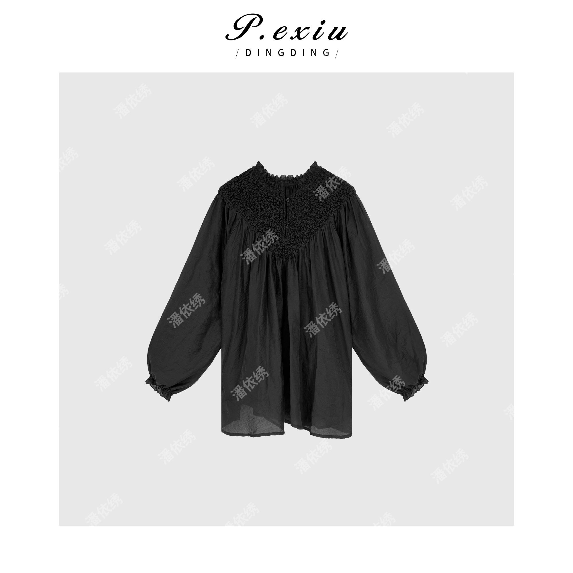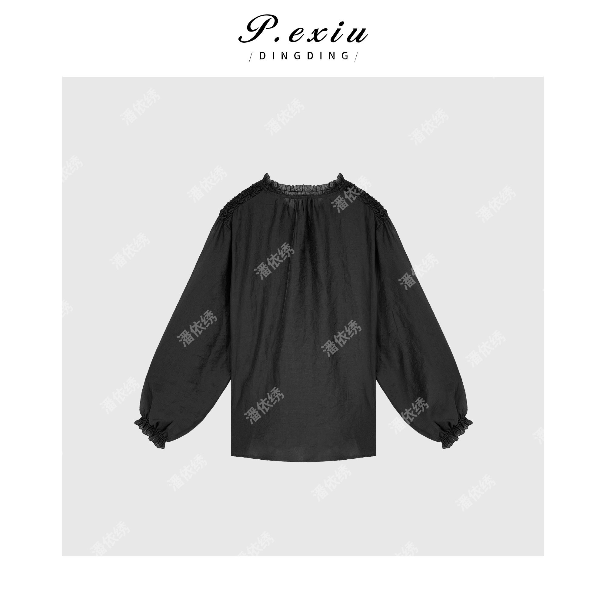 03-5潘依绣丁丁宠粉PanYiXiu/潘依绣天丝法式设计感小众蕾丝拼接长袖衬衫 W-62060