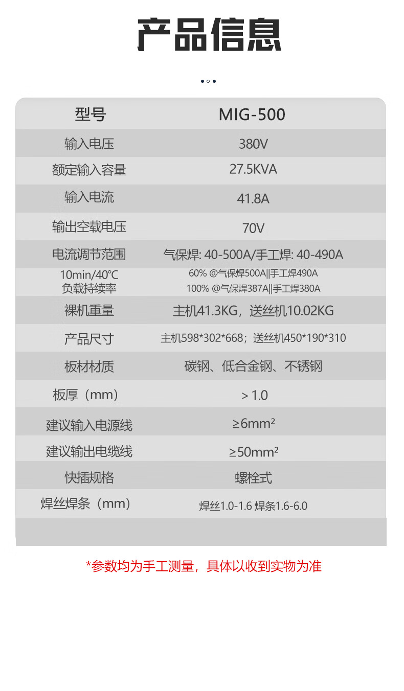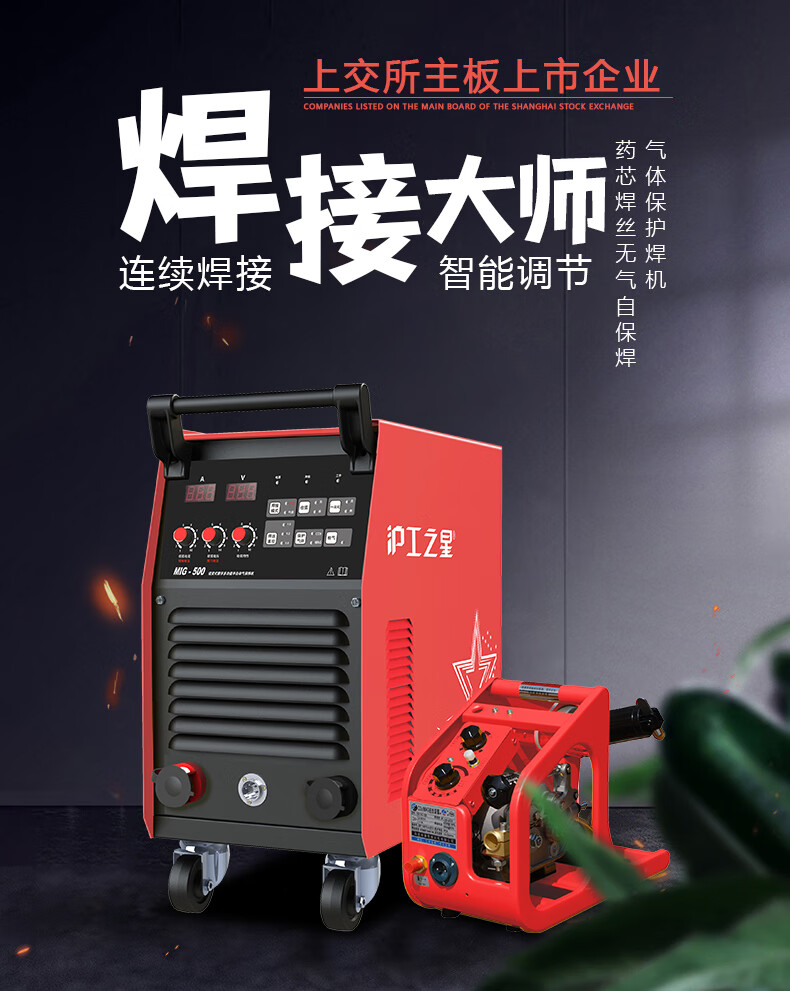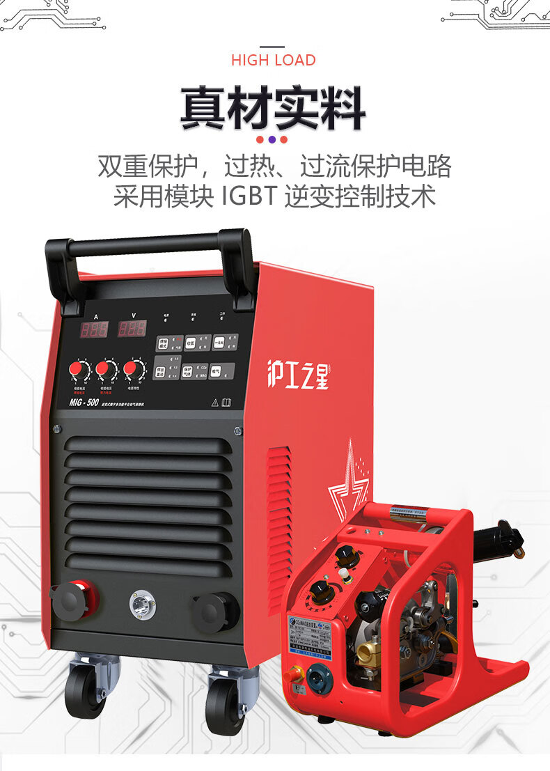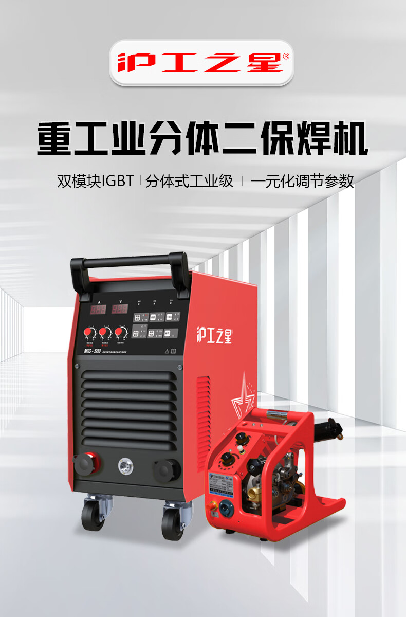 沪工之星 MIG-500 二保焊机380v重工业焊机二氧化碳气体保护焊机分体式气焊手工焊两用电焊机,适配PANA-500B焊枪。
