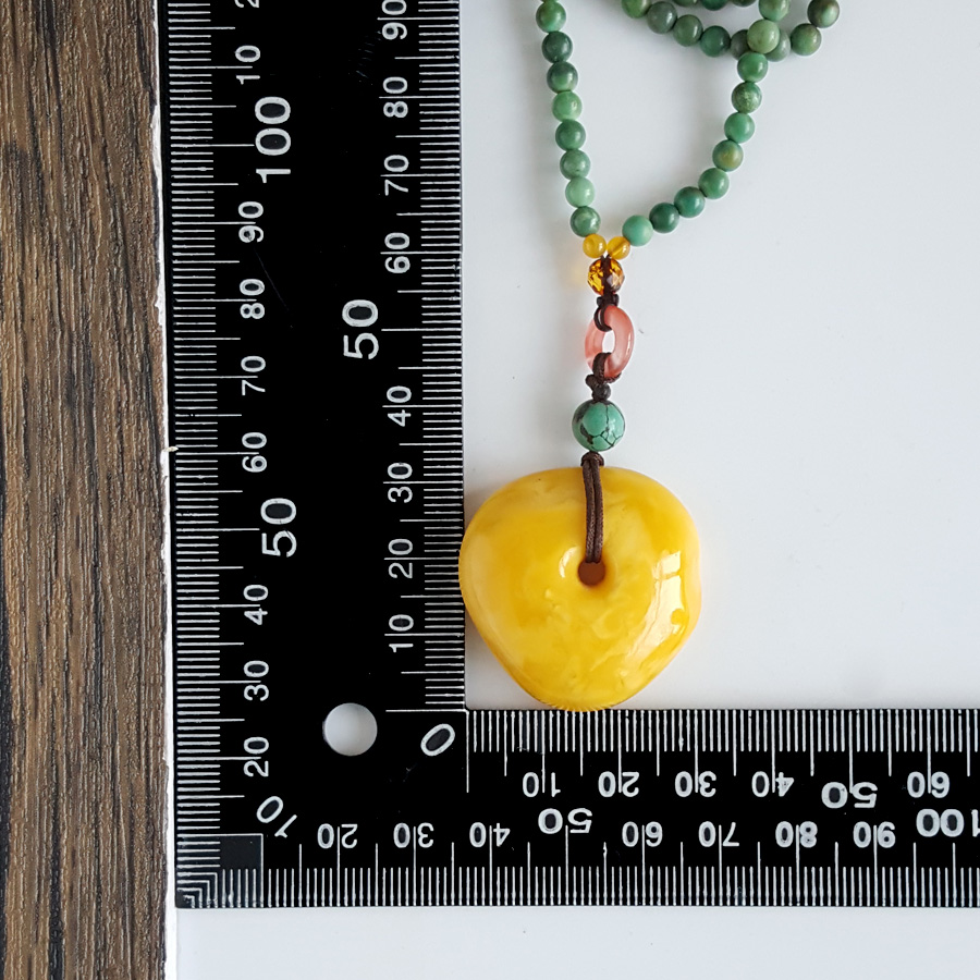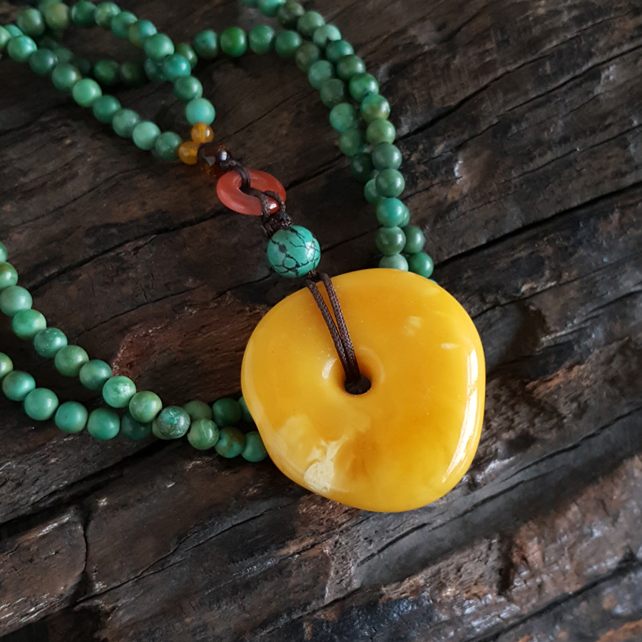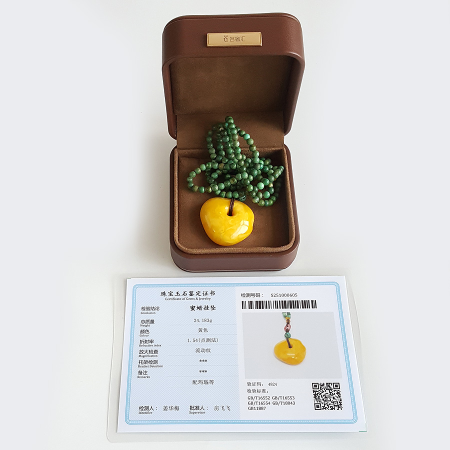【天然正品】天然满蜜鸡油黄无杂裂随形平安扣蜜蜡配玛瑙吊坠项链32.6*32.4*12.2MM(皆取最大值)链长:37CM中性271025NJM07 特价:1380元