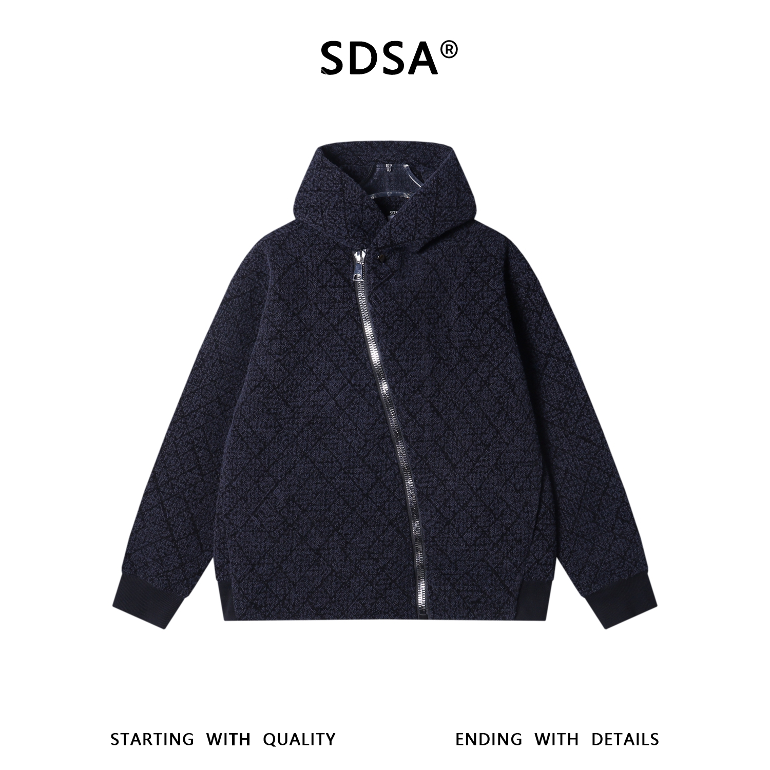 SDSA男士秋冬新款痞帅男装简约时尚格子斜拉链连帽卫衣百搭上衣